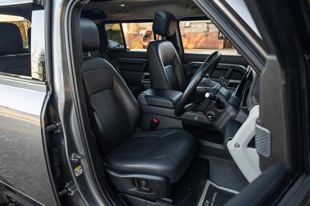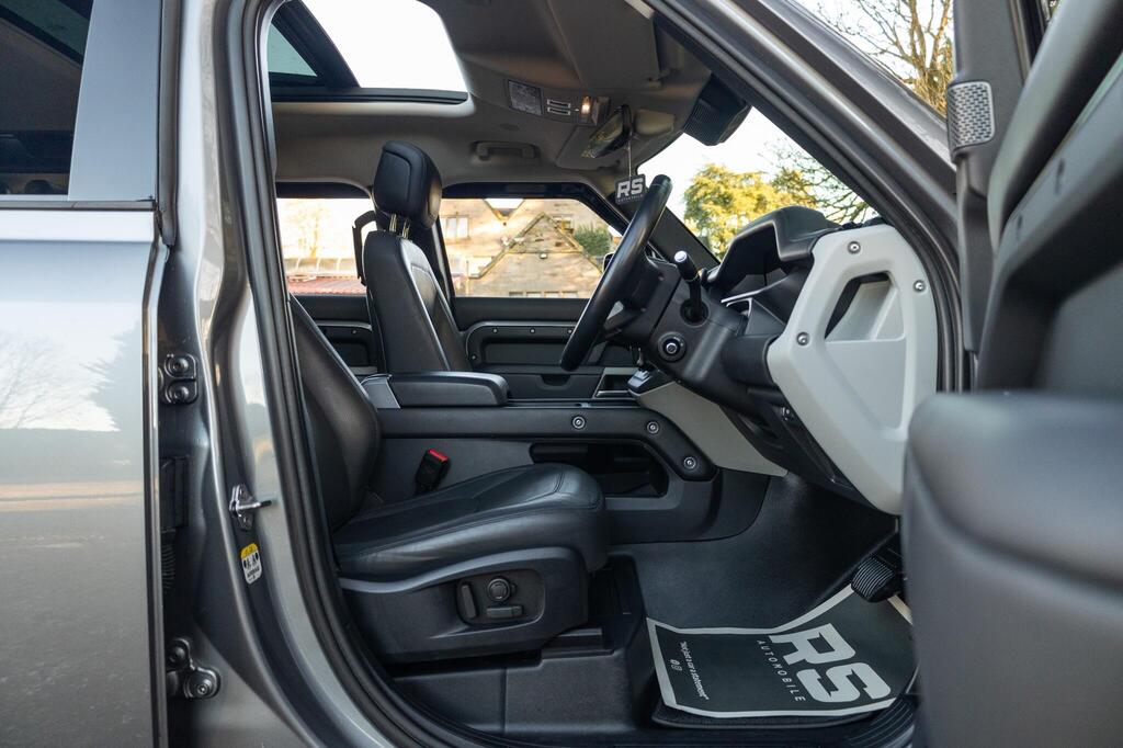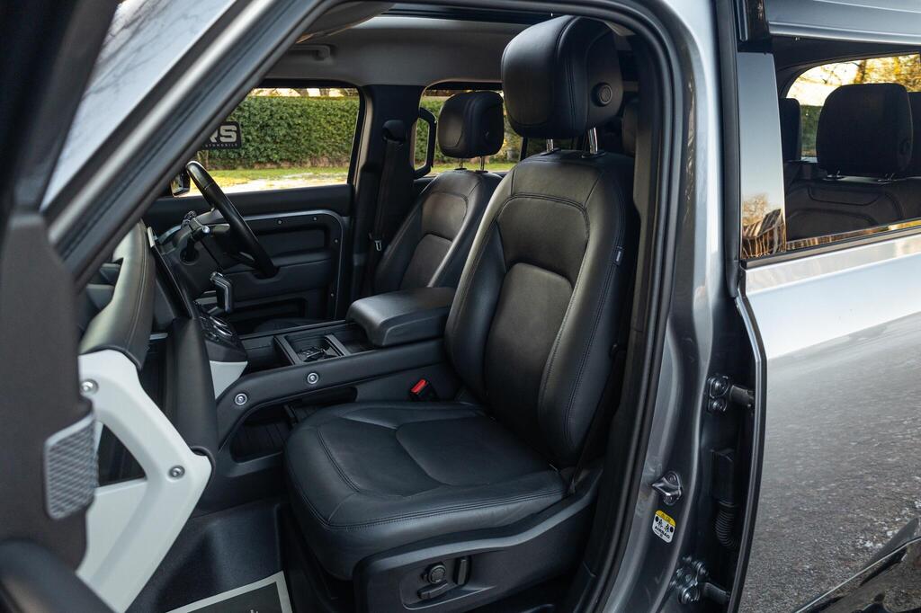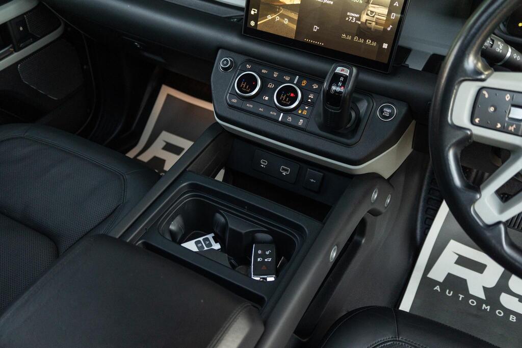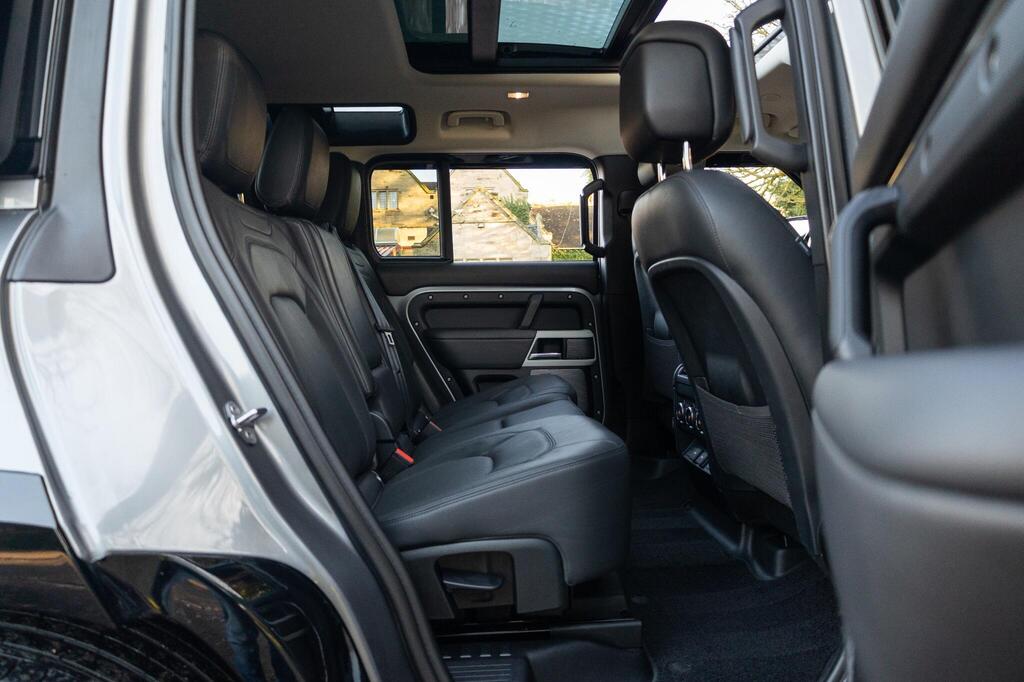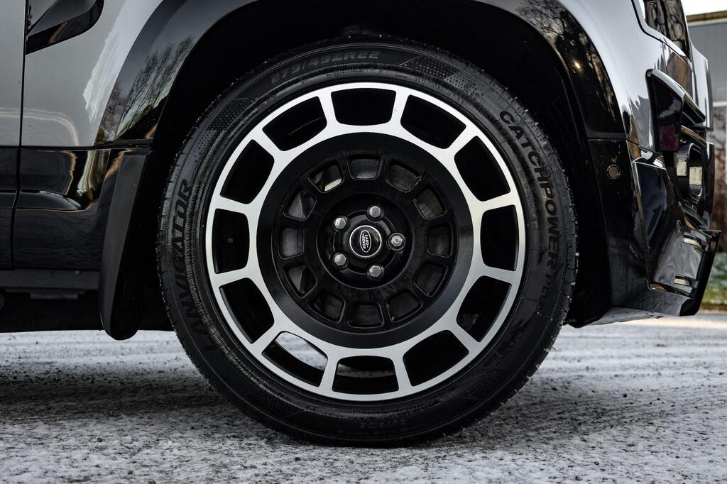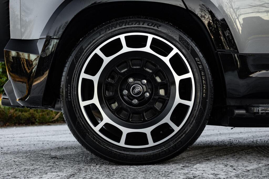 Land Rover Defender 110 3.0 D300 MHEV X-Dynamic HSE Panoramic Sunroof на 22-дюймовых легкосплавных дисках - стиль 5098 - 5 спиц - глянцевый серебристый цвет, черная контрастная крыша, расширенный черный пакет экстерьера, электрически выдвижной фаркоп, внедорожные шины, 14-позиционные передние сиденья с подогревом и вентиляцией, электроприводом и памятью, а также 4-позиционными ручными подголовниками, двухзонный автоматический климат-контроль, датчик качества воздуха, пакет для холодного климата, семейный комфортный пакет, обогрев рулевого колеса, кожаный руль, трехзонный климат-контроль с функцией охлаждения задних пассажиров, система помощи при парковке 360 градусов, 3D-камера кругового обзора, адаптивный круиз-контроль, система контроля слепых зон, распознавание дорожных знаков и адаптивный ограничитель скорости, аудиосистема Meridian, Apple CarPlay.