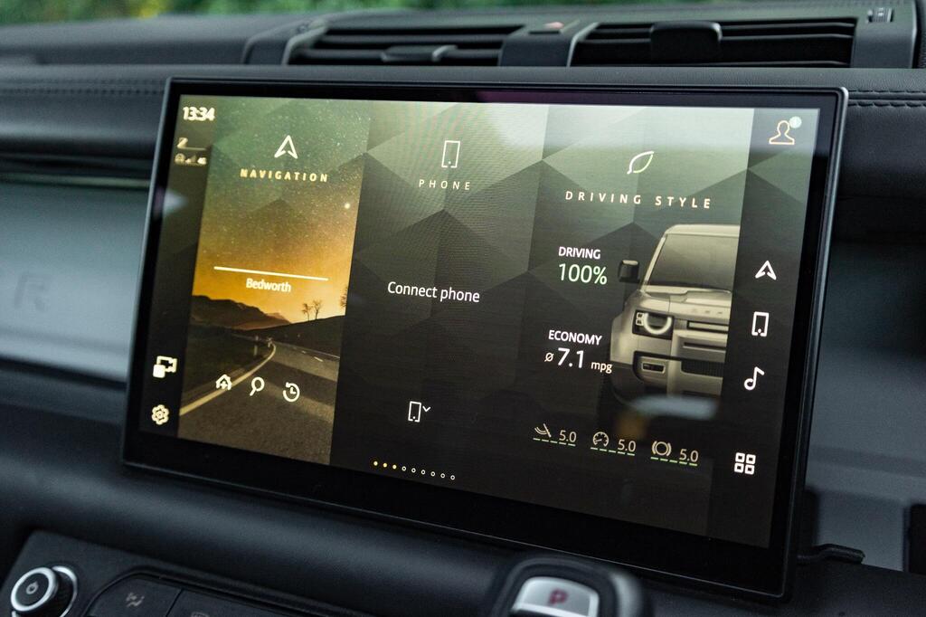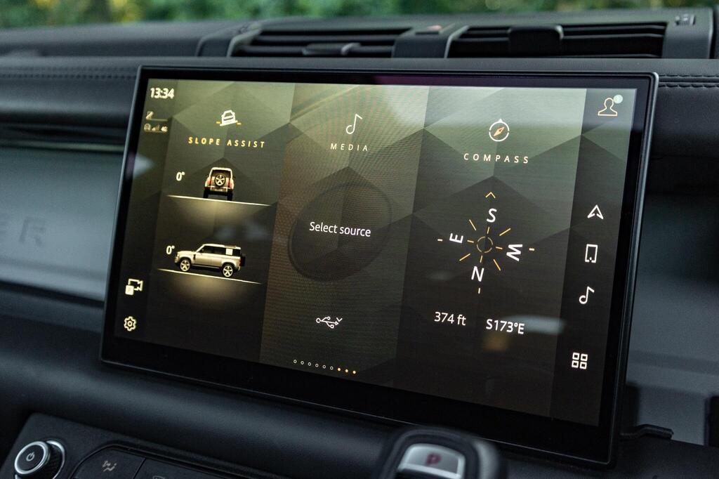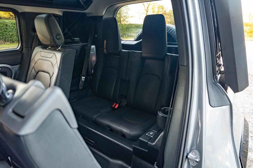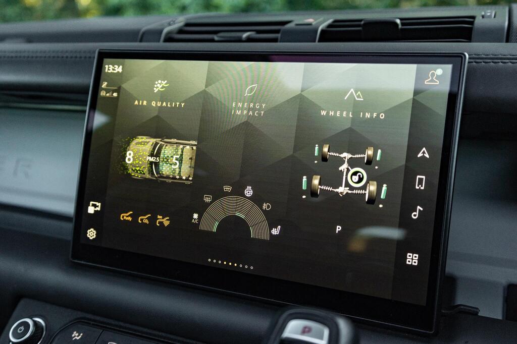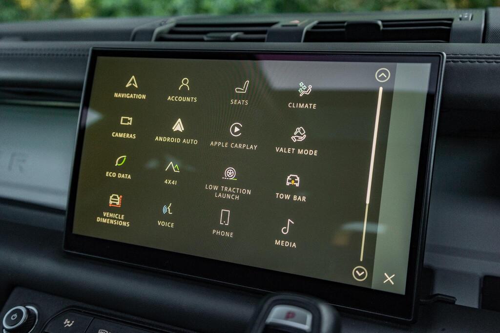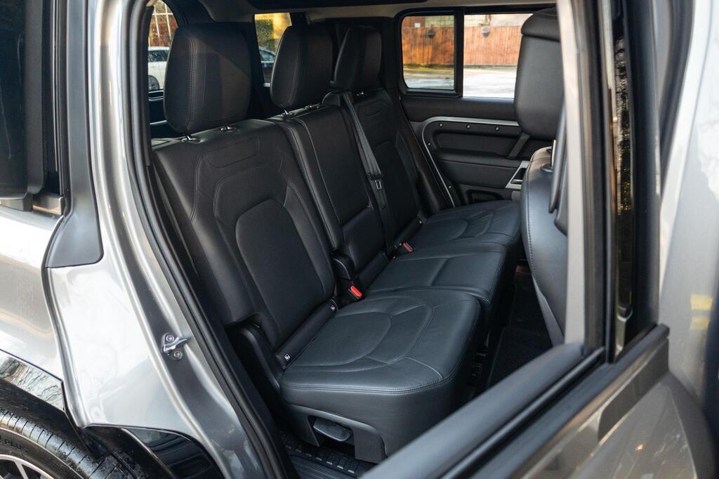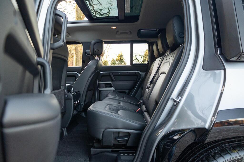 Land Rover Defender 110 3.0 D300 MHEV X-Dynamic HSE Panoramic Sunroof на 22-дюймовых легкосплавных дисках - стиль 5098 - 5 спиц - глянцевый серебристый цвет, черная контрастная крыша, расширенный черный пакет экстерьера, электрически выдвижной фаркоп, внедорожные шины, 14-позиционные передние сиденья с подогревом и вентиляцией, электроприводом и памятью, а также 4-позиционными ручными подголовниками, двухзонный автоматический климат-контроль, датчик качества воздуха, пакет для холодного климата, семейный комфортный пакет, обогрев рулевого колеса, кожаный руль, трехзонный климат-контроль с функцией охлаждения задних пассажиров, система помощи при парковке 360 градусов, 3D-камера кругового обзора, адаптивный круиз-контроль, система контроля слепых зон, распознавание дорожных знаков и адаптивный ограничитель скорости, аудиосистема Meridian, Apple CarPlay.
