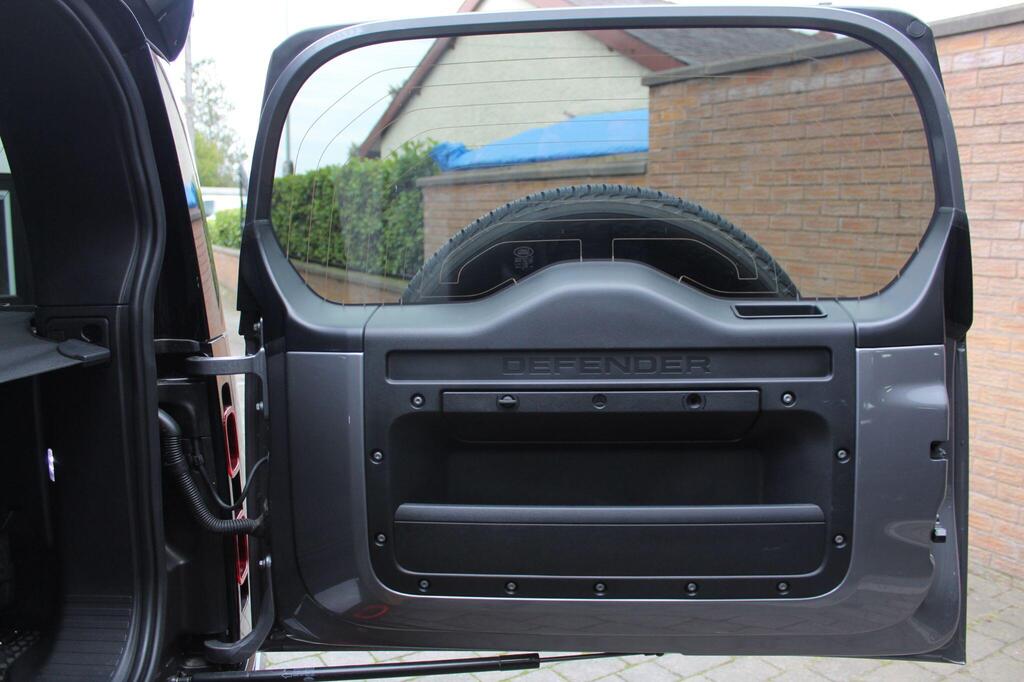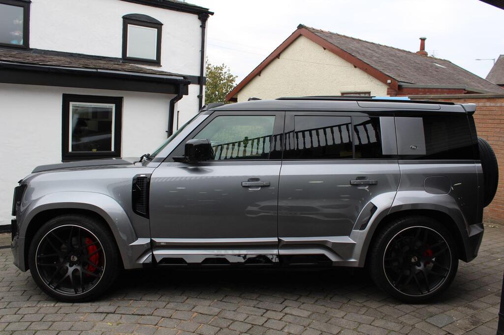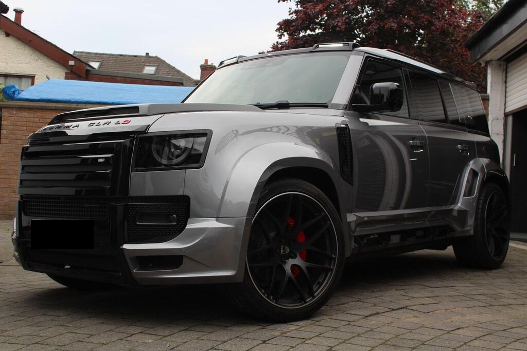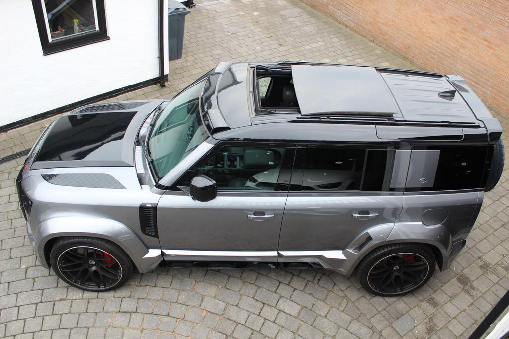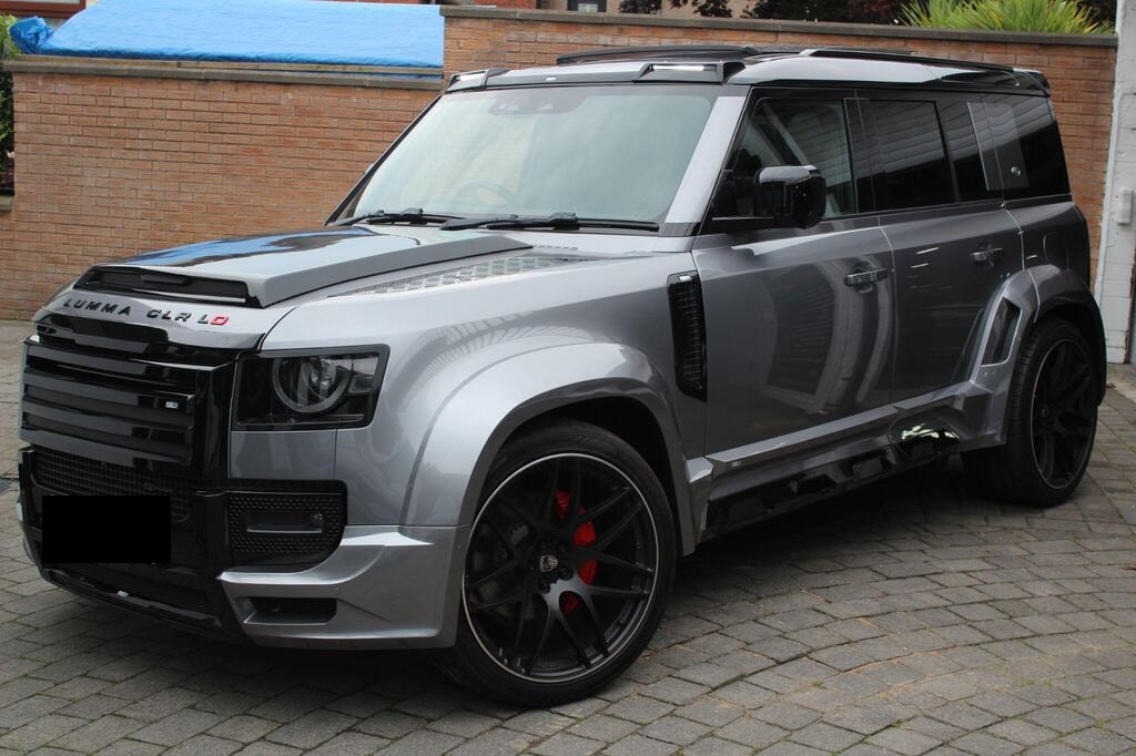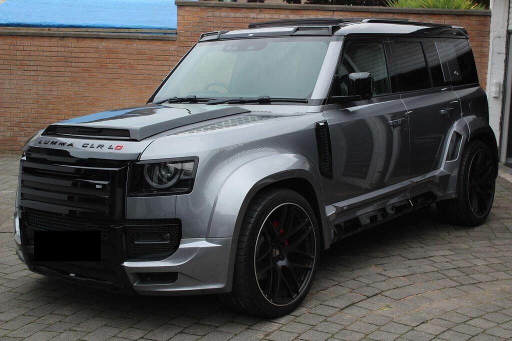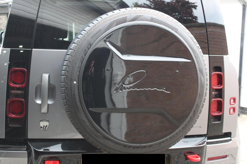 Land Rover Defender 110 2.0 P400e 15.4kWh X-Dynamic SE Panoramic Sunroof на 20-дюймовых легкосплавных дисках - стиль 5094 - 5 спиц - матовый темно-серый, обвес LUMMA CLR, боковые зеркала с подогревом, электроприводом складывания, подсветкой зоны приближения и автоматическим затемнением со стороны водителя, передние сиденья с 12-позиционной регулировкой, подогревом, электроприводом и памятью, а также 2-позиционной ручной регулировкой подголовников, двухзонный автоматический климат-контроль, багажник с доводчиком и функцией плавного закрывания, стандартная коробка передач, система кругового обзора 360 градусов, 3D-камера кругового обзора, система контроля слепых зон, круиз-контроль и ограничитель скорости, система распознавания дорожных знаков и адаптивный ограничитель скорости, Apple CarPlay, аудиосистема Meridian.