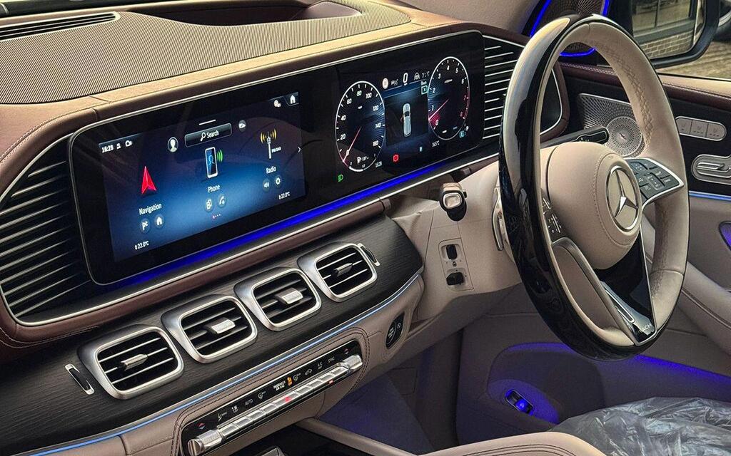 Mercedes-Benz Maybach GLS 4.0 GLS600h V8 MHEV First Class G-Tronic 4MATIC Panoramic Sunroof на 23-дюймовых легкосплавных дисках - Maybach - Многоспицевый дизайн из полированной керамики, эксклюзивная кожа Nappa - двухцветная отделка MANUFAKTUR Mahogany Brown-Macchiato Beige, передние сиденья - с климат-контролем, задние сиденья - с климат-контролем, охлаждаемый салон сзади, сиденья - третий ряд - с электроприводом складывания и складывания и системой EASY-ENTRY, рулевое колесо - с подогревом, рулевое колесо - многофункциональное, отделка деревом и кожей, THERMOTRONIC - Роскошный автоматический климат-контроль - пятизонный, активная система помощи при парковке, включая PARKTRONIC, Dynamic Select с выбором режимов движения - Comfort - ECO - Sport - Individual, пакет парковки с камерой кругового обзора 360 градусов, проекционный дисплей, круиз-контроль SPEEDTRONIC, система индикации сервисного обслуживания.
