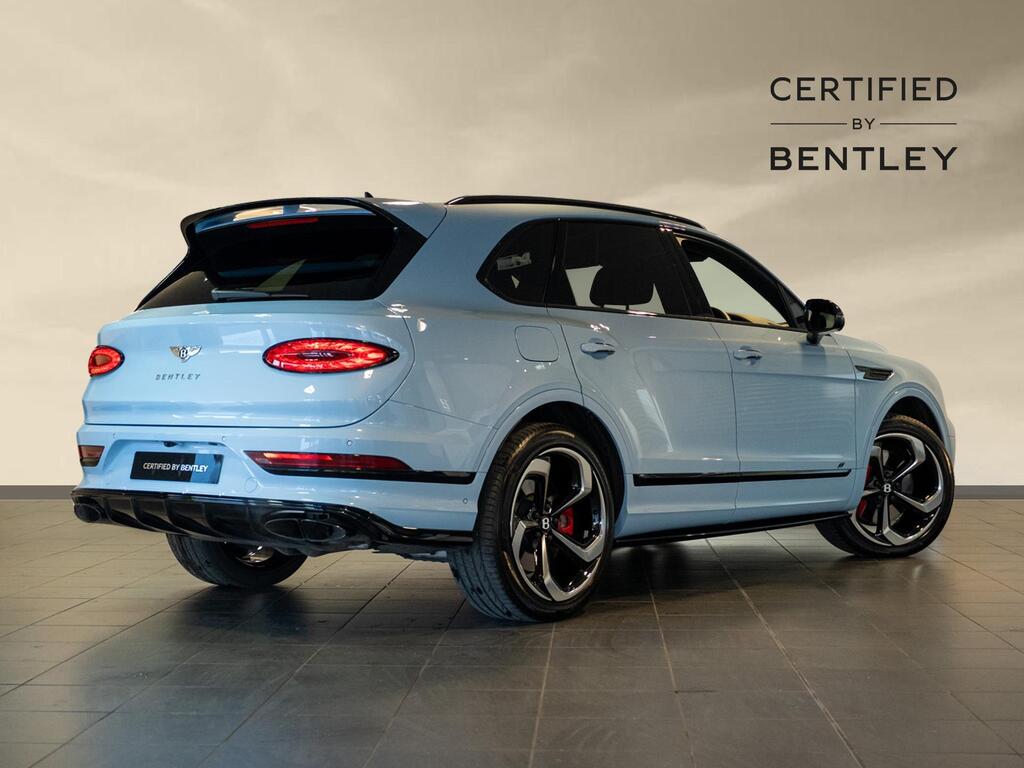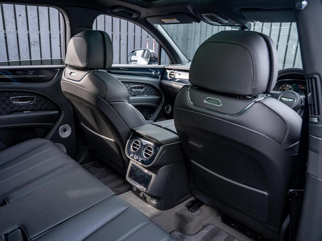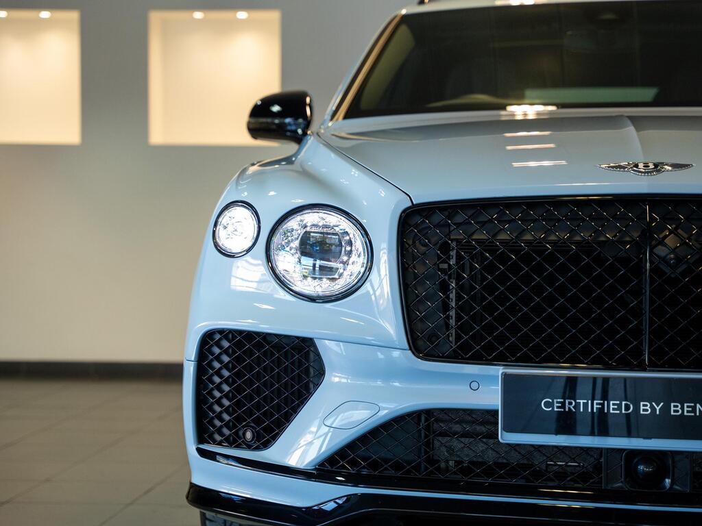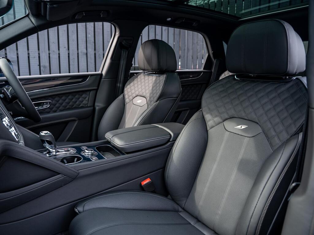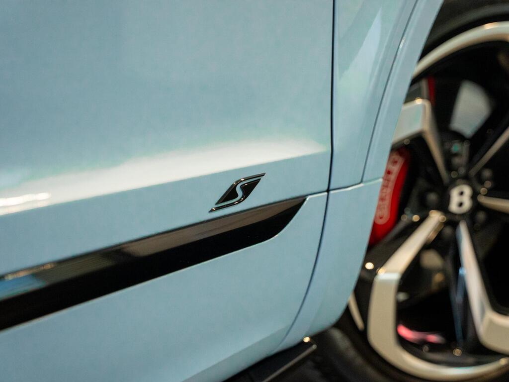 Bentley Bentayga 4.0 V8 S Auto 4WD Panoramic Sunroof на 22-дюймовых легкосплавных дисках - S-образные направляющие - черная окраска и полировка, самовыравнивающаяся эмблема - Mulliner, пятиместная комфортная комплектация, комплектация Touring, Bang and Olufsen для Bentley, центральная панель с отделкой шпоном/карбоном, сиденья с подогревом и вентиляцией, круиз-контроль, система удержания линии.