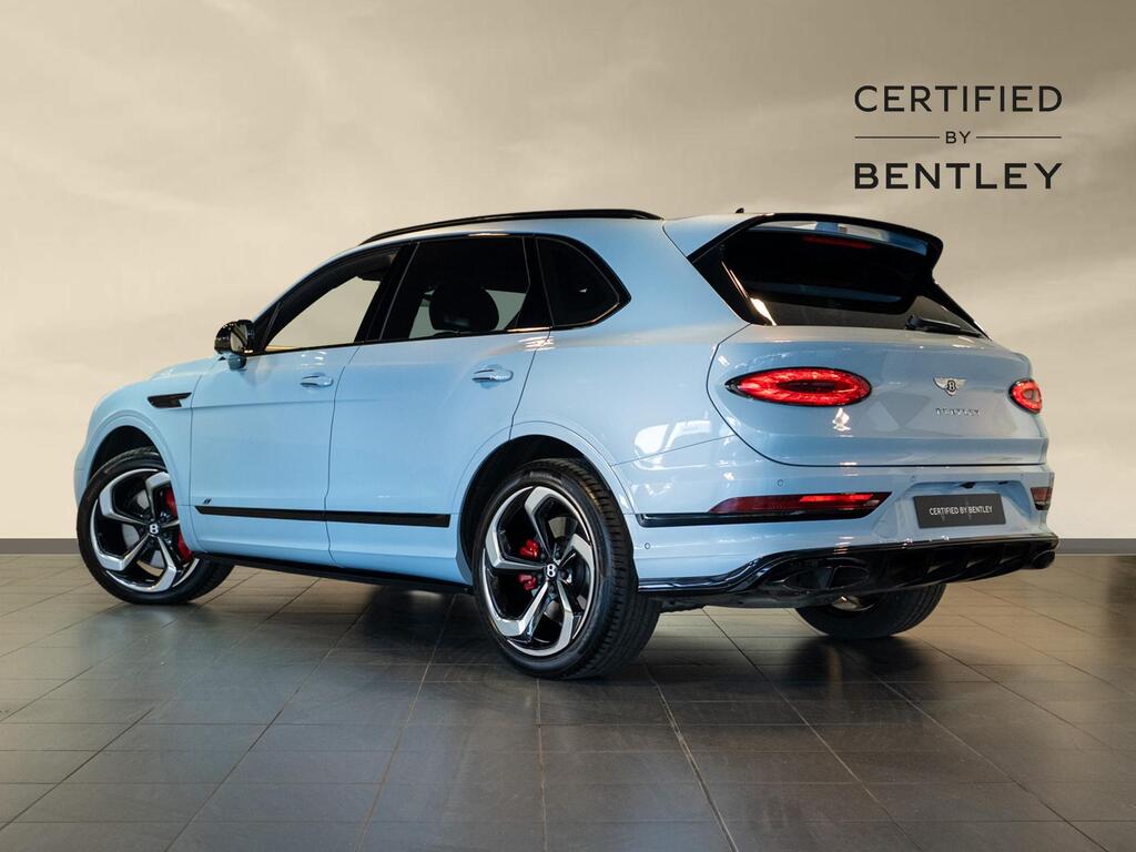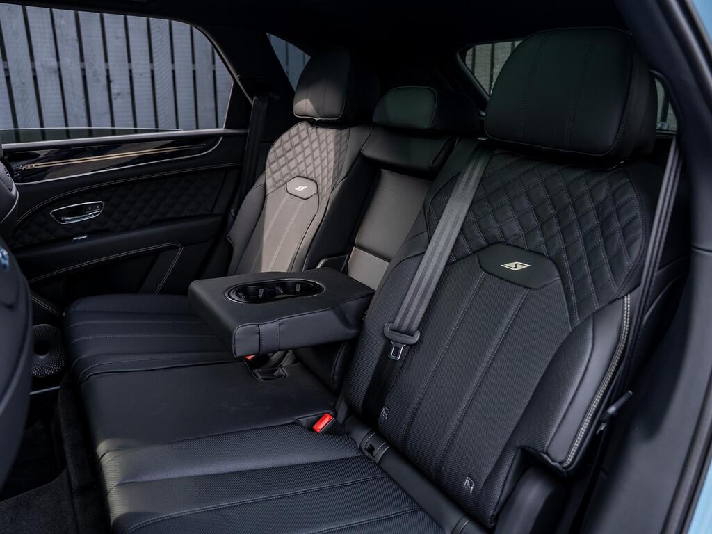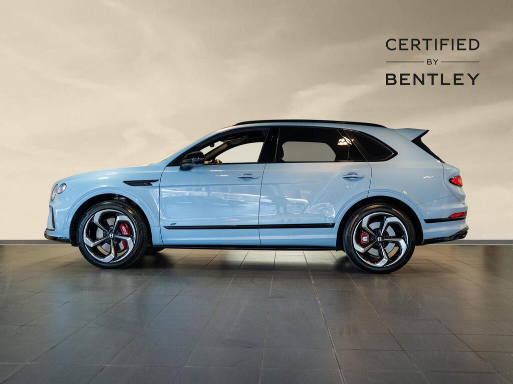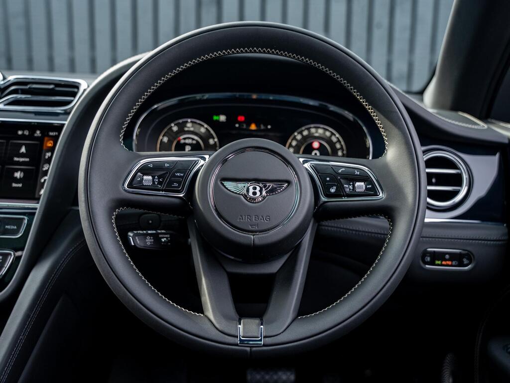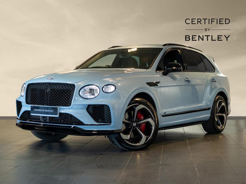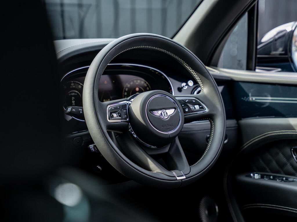 Bentley Bentayga 4.0 V8 S Auto 4WD Panoramic Sunroof на 22-дюймовых легкосплавных дисках - S-образные направляющие - черная окраска и полировка, самовыравнивающаяся эмблема - Mulliner, пятиместная комфортная комплектация, комплектация Touring, Bang and Olufsen для Bentley, центральная панель с отделкой шпоном/карбоном, сиденья с подогревом и вентиляцией, круиз-контроль, система удержания линии.