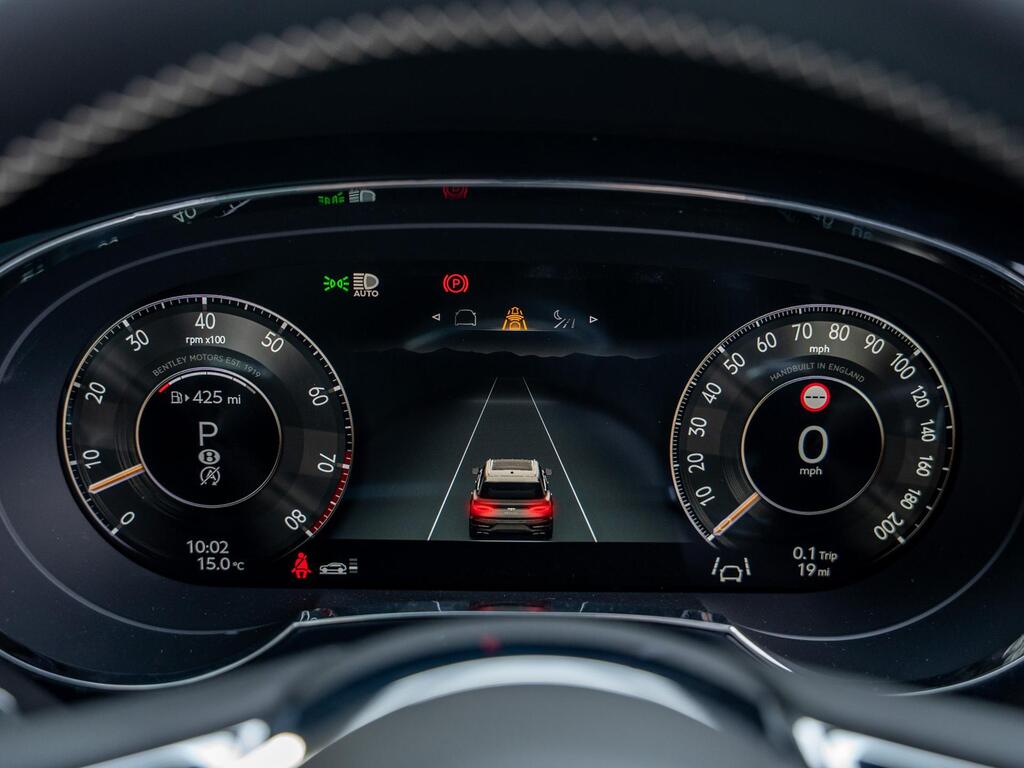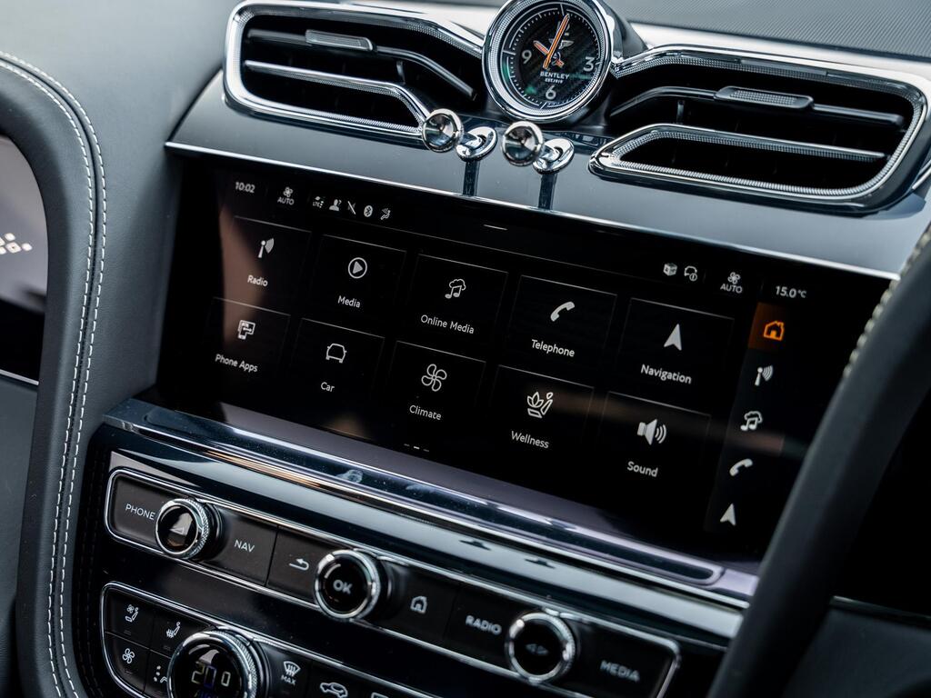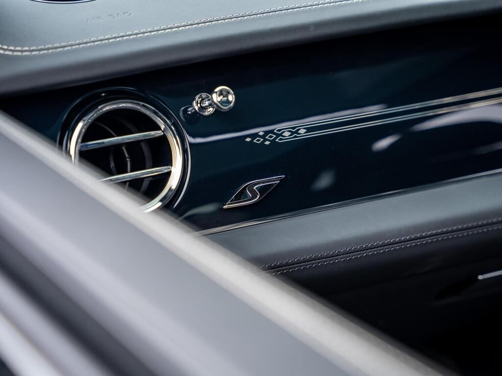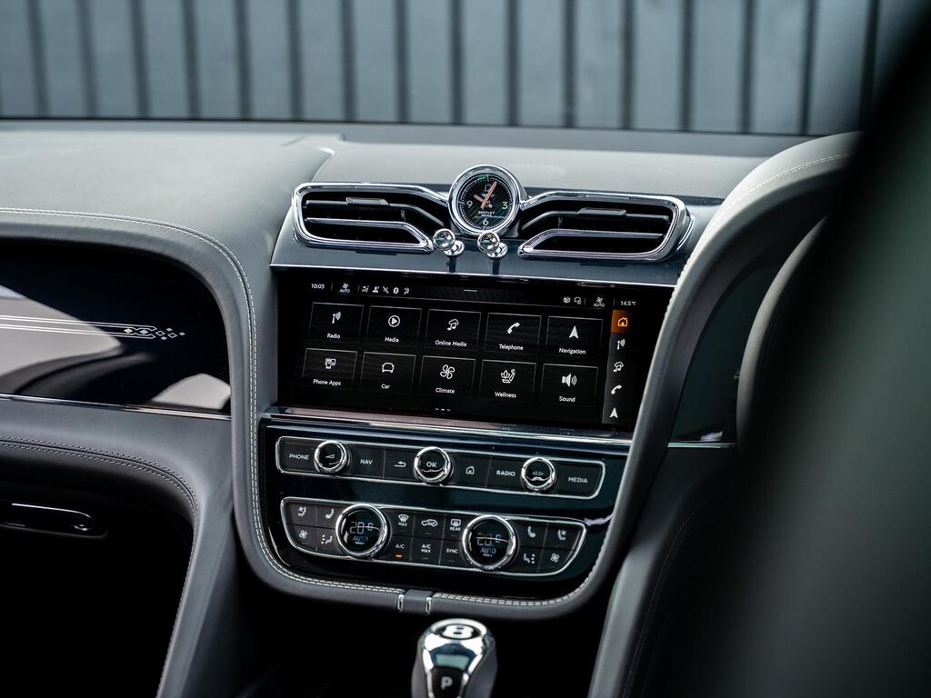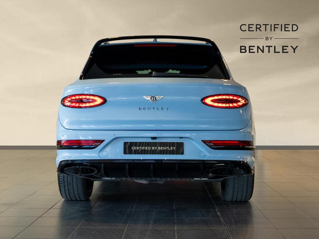 Bentley Bentayga 4.0 V8 S Auto 4WD Panoramic Sunroof на 22-дюймовых легкосплавных дисках - S-образные направляющие - черная окраска и полировка, самовыравнивающаяся эмблема - Mulliner, пятиместная комфортная комплектация, комплектация Touring, Bang and Olufsen для Bentley, центральная панель с отделкой шпоном/карбоном, сиденья с подогревом и вентиляцией, круиз-контроль, система удержания линии.