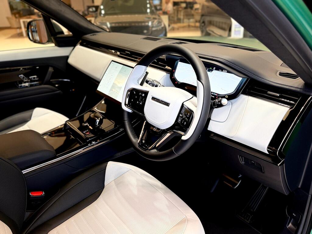 Land Rover Range Rover Sport 4.4P V8 MHEV SV Auto 4WD Panoramic Sunroof на 23-дюймовых легкосплавных дисках - модель 1084 - кованые двухцветные матово-глянцевые черные, красные тормозные суппорты SV, спинка сиденья SV KVADRAT, кожаный руль Performance, холодильное отделение в передней центральной консоли, цифровой дисплей SVO, камеры кругового обзора 360°, динамическая пневматическая подвеска, сиденья Body and Soul с аудиосистемой Meridian.