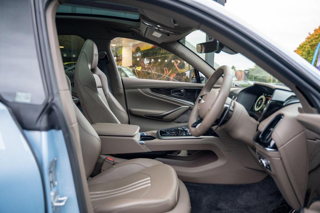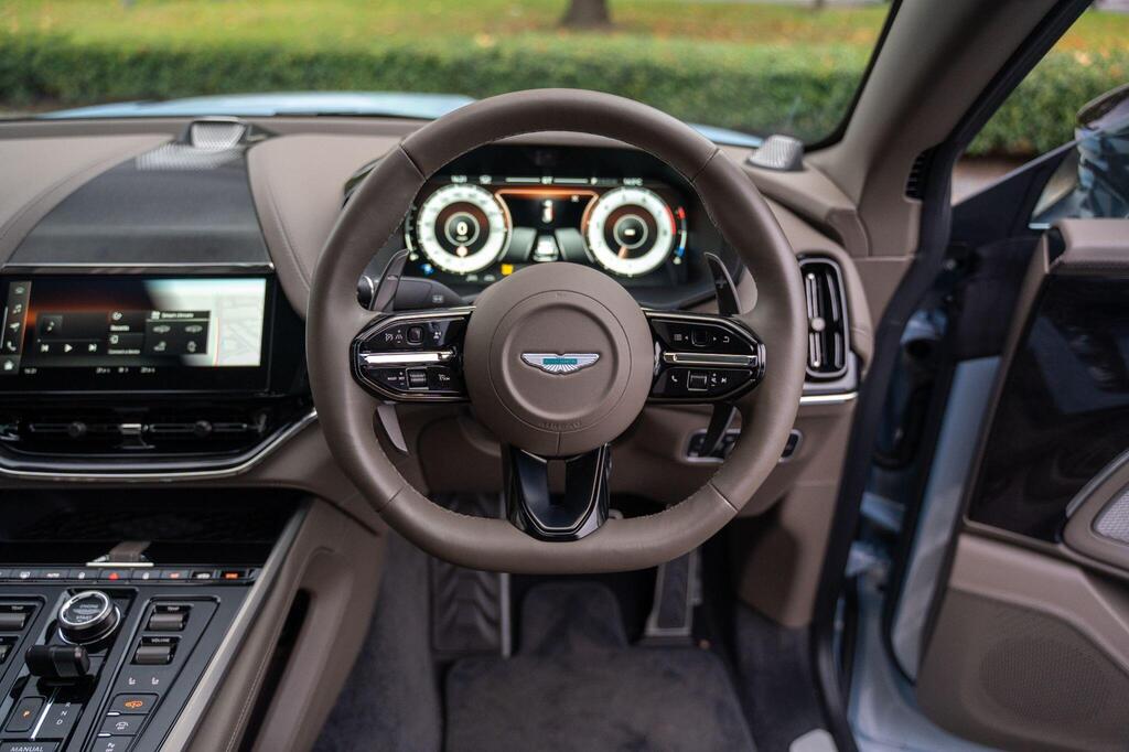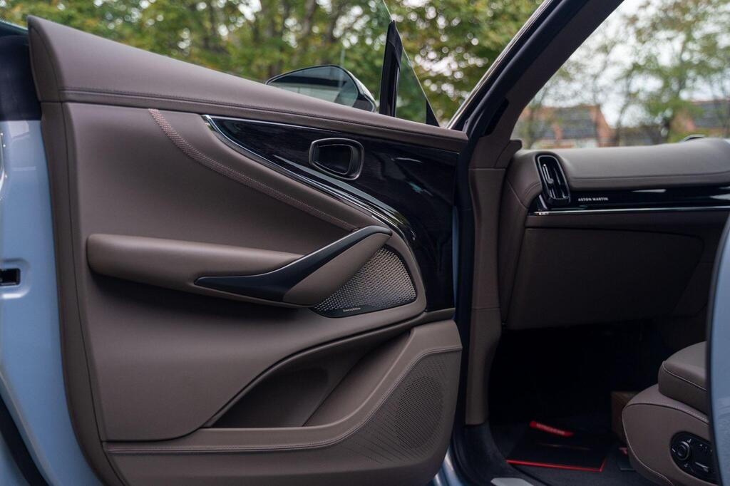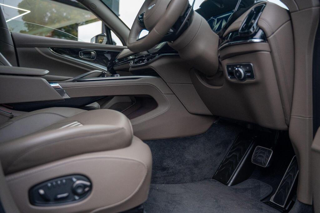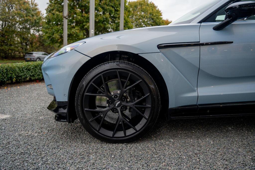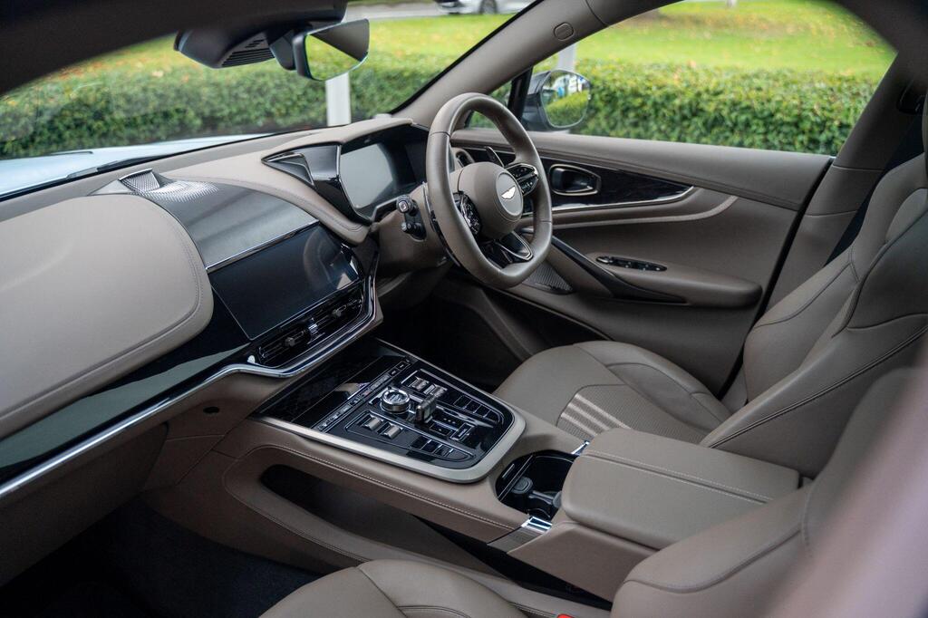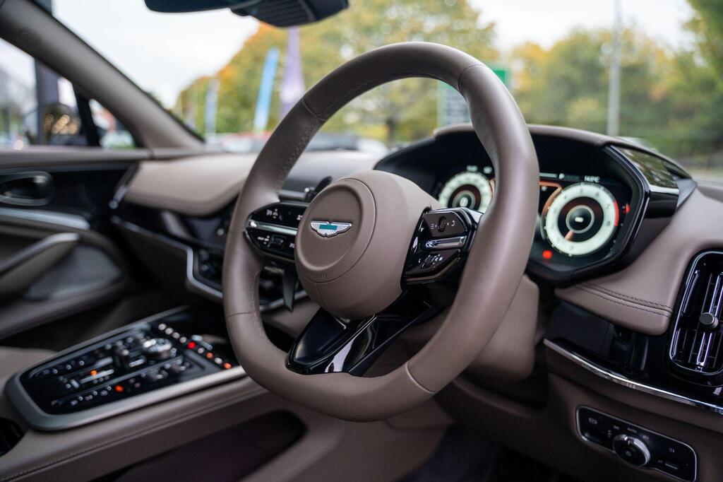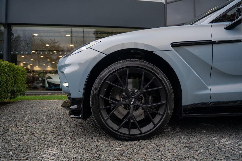 Aston Martin DBX 4.0 V8 707 Panoramic Sunroof на 23-дюймовых легкосплавных дисках Fortis — матово-черный, аудиосистема Bowers and Wilkins, Apple CarPlay Ultra, вентилируемые передние и задние сиденья, глянцево-черная передняя решетка, спортивный руль с подогревом, тонированные задние фонари, система слежения за угнанными автомобилями, электрически выдвижной фаркоп, система автоматической парковки, система контроля слепых зон, пять адаптивных режимов движения — 4 для дорог общего пользования и 1 для бездорожья, передние и задние парковочные датчики, система предупреждения о выезде из полосы движения, система помощи при парковке с камерой кругового обзора 360 градусов, система распознавания дорожных знаков.