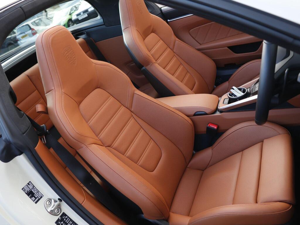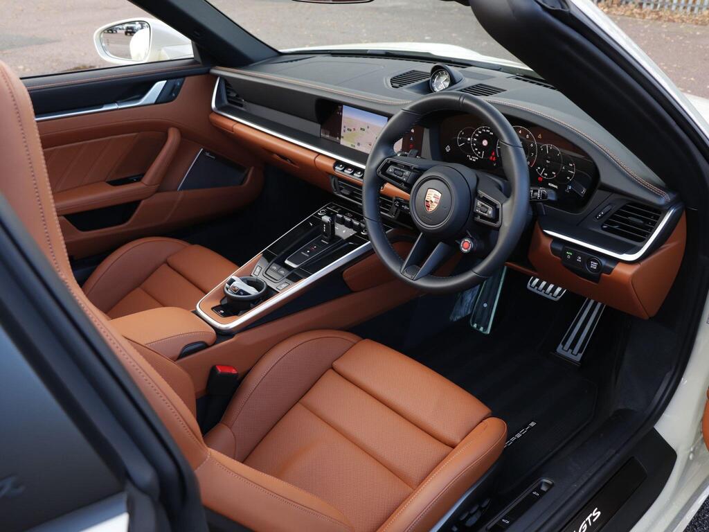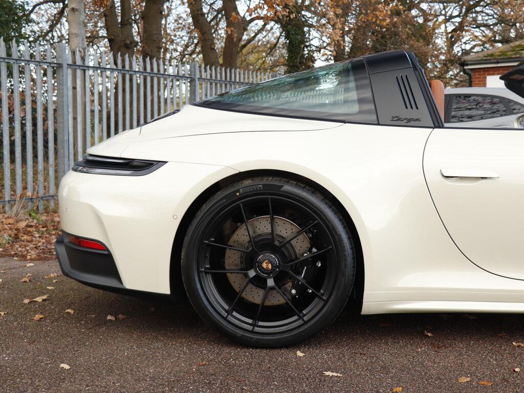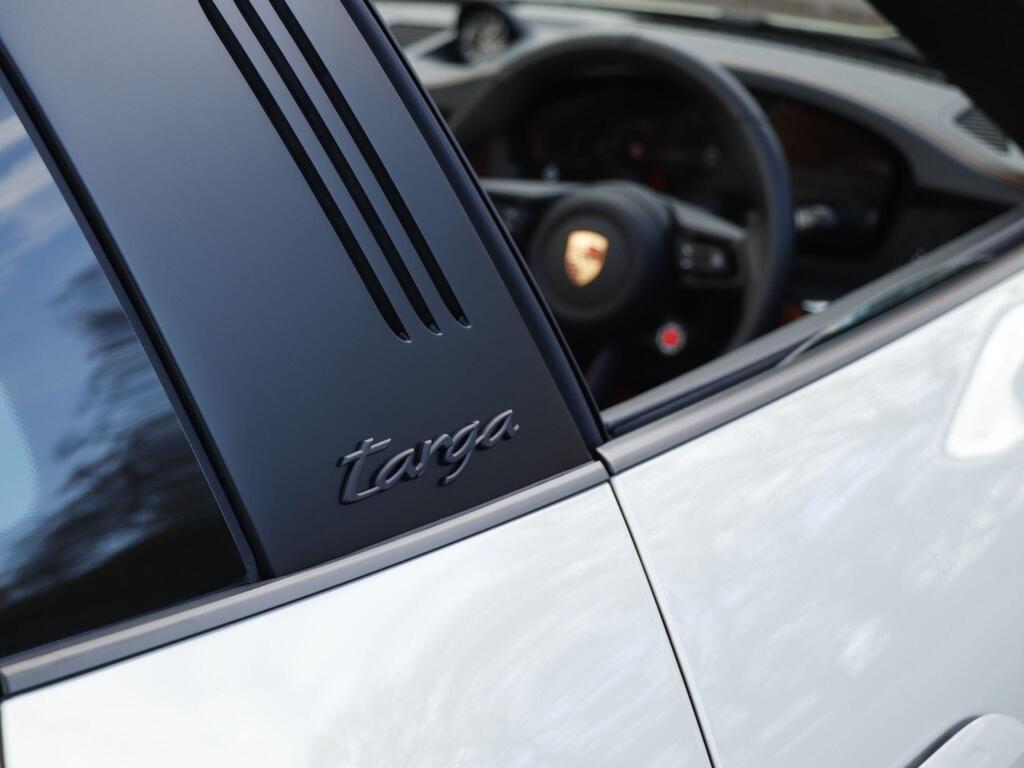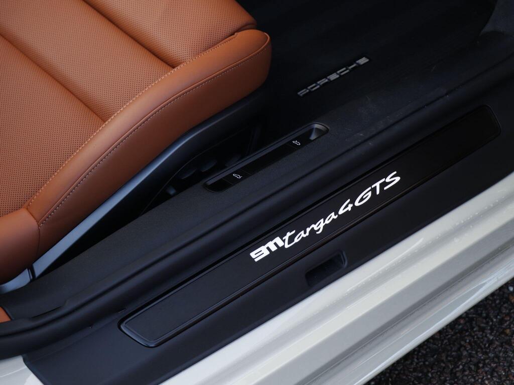 Porsche 911 3.6 T-Hybrid 992 4 GTS Targa PDK на 20-дюймовых передних и 21-дюймовых задних легкосплавных дисках - Carrera GTS, логотип 911, окрашенный в цвет кузова, тормозные суппорты - черные глянцевые, светодиодная подсветка дверей с логотипом Porsche, кожаный пакет 930, пакет акцентов черного цвета, адаптивные спортивные сиденья Plus - 18-позиционная электрическая регулировка с функцией памяти, подогрев передних сидений, ручная регулировка рулевого колеса по высоте и вперед-назад, двухзонный автоматический климат-контроль, круиз-контроль, система помощи при смене полосы движения, система помощи при парковке (передняя и задняя) с визуальным и звуковым предупреждением, камера заднего вида, система контроля давления в шинах (TPM), высококачественная аудиосистема Burmester Surround Sound.