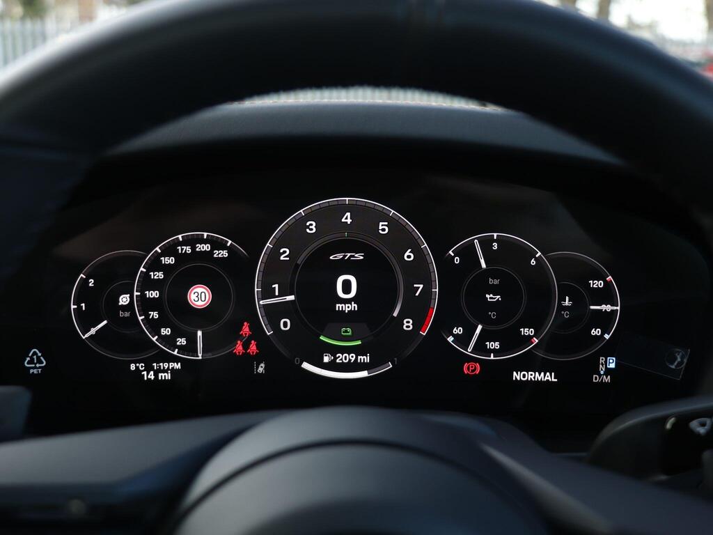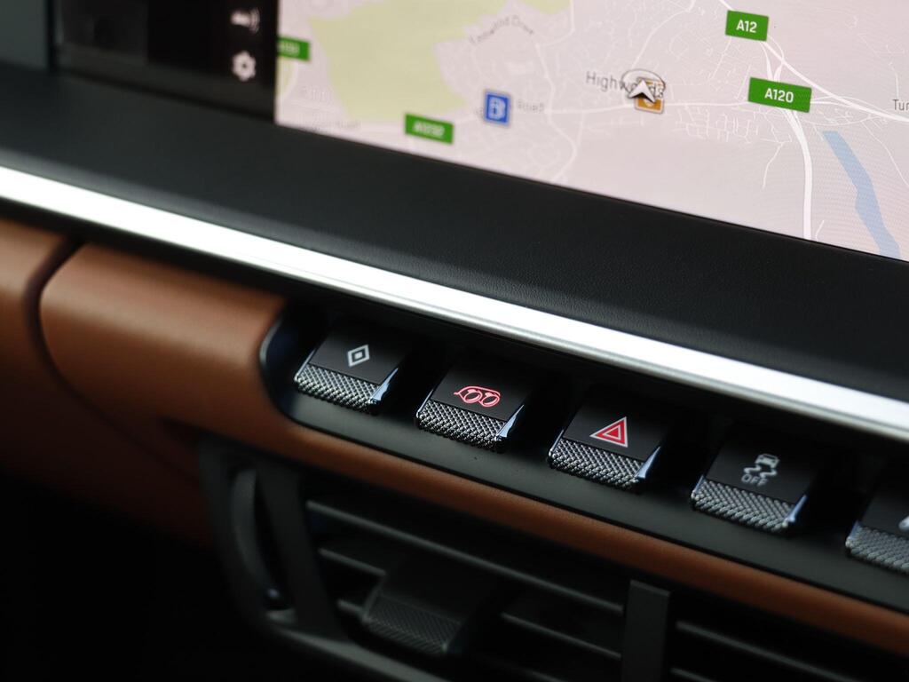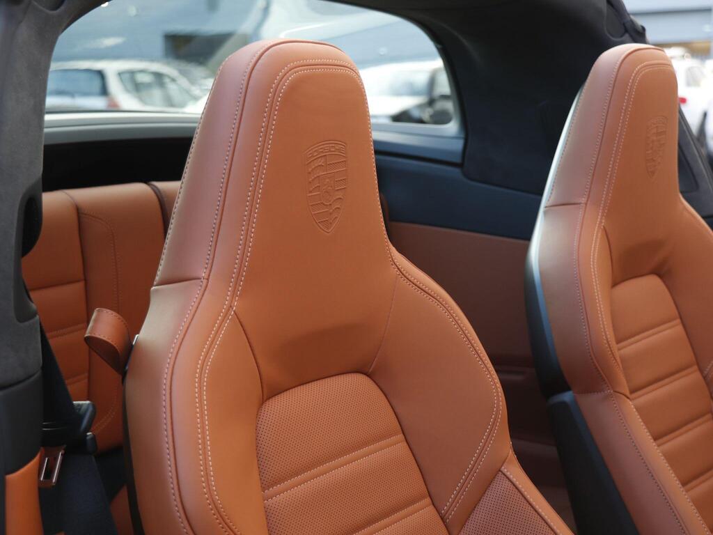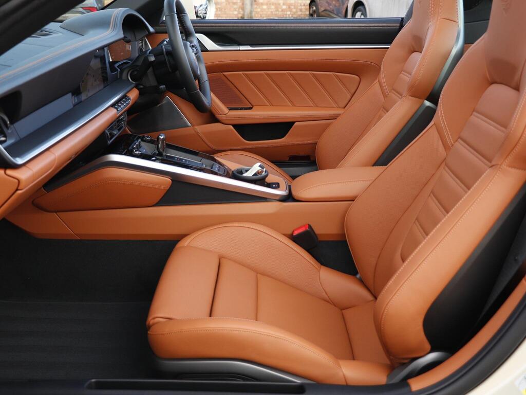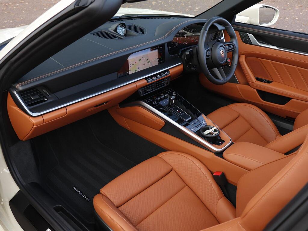Porsche 911 3.6 T-Hybrid 992 4 GTS Targa PDK на 20-дюймовых передних и 21-дюймовых задних легкосплавных дисках - Carrera GTS, логотип 911, окрашенный в цвет кузова, тормозные суппорты - черные глянцевые, светодиодная подсветка дверей с логотипом Porsche, кожаный пакет 930, пакет акцентов черного цвета, адаптивные спортивные сиденья Plus - 18-позиционная электрическая регулировка с функцией памяти, подогрев передних сидений, ручная регулировка рулевого колеса по высоте и вперед-назад, двухзонный автоматический климат-контроль, круиз-контроль, система помощи при смене полосы движения, система помощи при парковке (передняя и задняя) с визуальным и звуковым предупреждением, камера заднего вида, система контроля давления в шинах (TPM), высококачественная аудиосистема Burmester Surround Sound.
