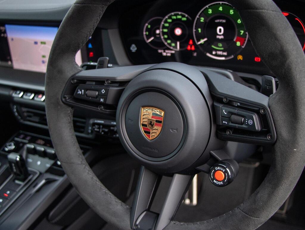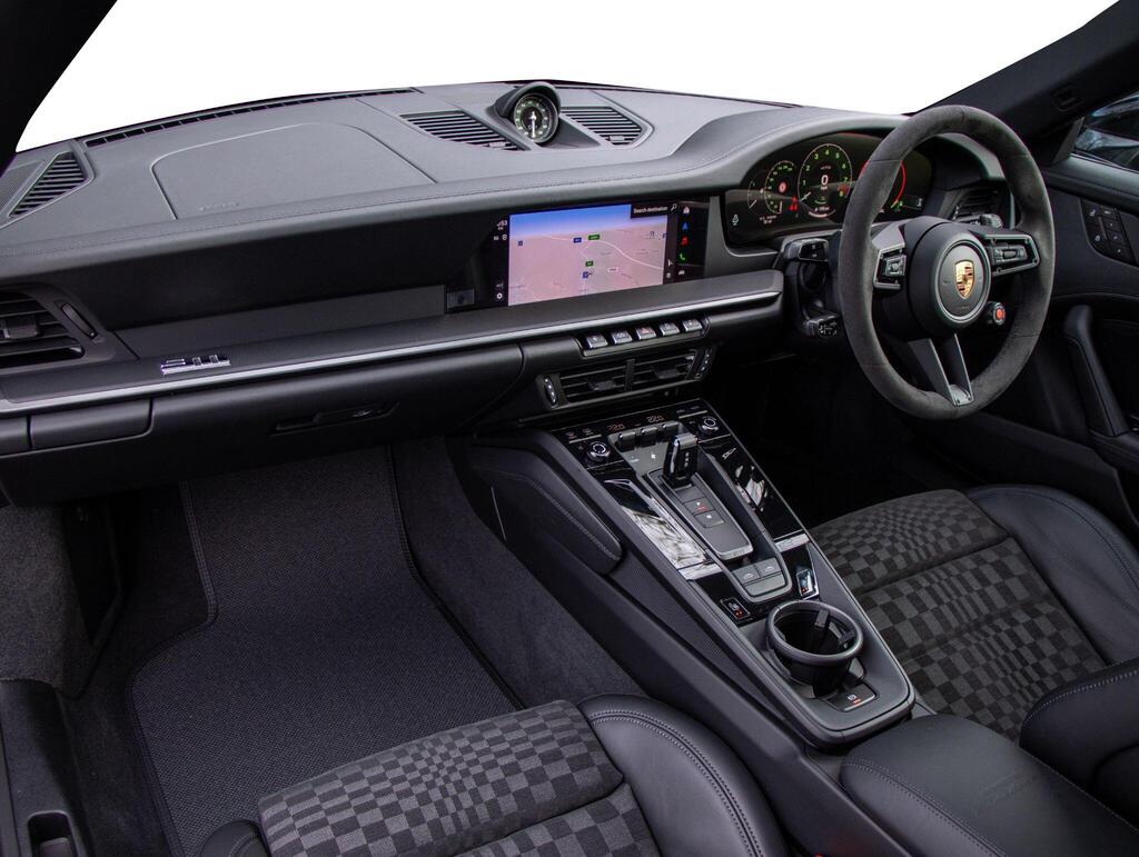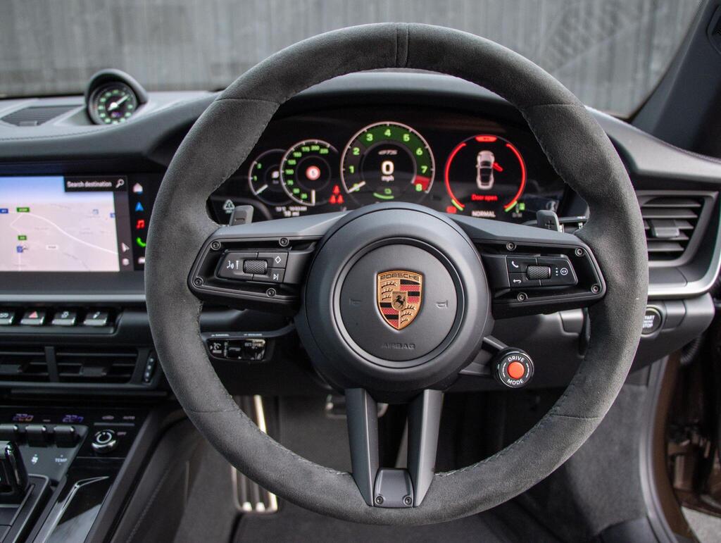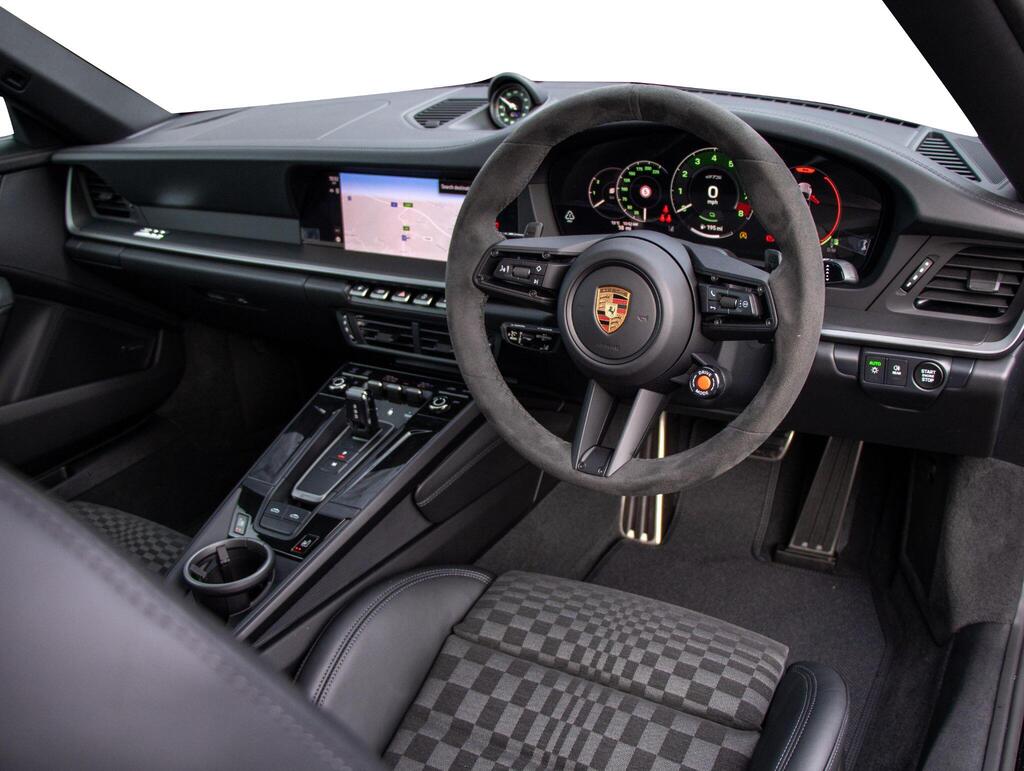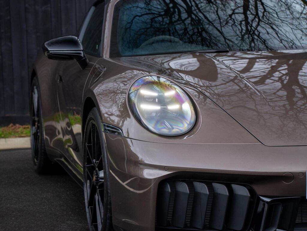 Porsche 911 3.6 T-Hybrid 992 4 GTS Targa PDK на 20-дюймовых передних и 21-дюймовых задних легкосплавных дисках - Carrera GTS, адаптивные спортивные сиденья Plus с 18-позиционной регулировкой и функцией памяти, адаптивный круиз-контроль, тормозные суппорты - черный глянцевый, пакет дизайна Heritage Design Package Pasha, система помощи при смене полосы движения, система кругового обзора с активной поддержкой парковки, аудиосистема Plus, система помощи при парковке ParkAssist - передняя и задняя с визуальным и звуковым предупреждением, камера заднего вида, подогрев спортивного рулевого колеса GT с отделкой Race-Tex и переключателем режимов, ручная регулировка рулевого колеса по высоте и продольным направлениям, подогрев передних сидений.
