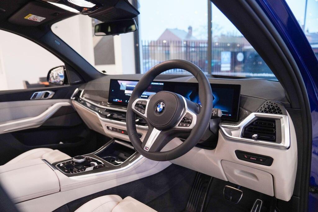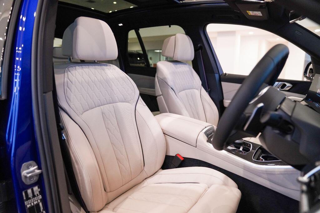 BMW X5 3.0 40d MHT M Sport Steptronic xDrive Panoramic Sunroof на 22-дюймовых легкосплавных дисках M Double-Spoke Bicolour Style 742, пакет M Sport Pro, автоматический кондиционер с 2,5-зонным управлением, пакет Comfort Plus, кожаный руль M, подогрев передних сидений, спортивные передние сиденья, пакет Technology, система помощи водителю Attentiveness Assistant. Круиз-контроль, переключатель режимов движения, встроенное руководство пользователя, парковочный ассистент, передняя и задняя пневматическая подвеска, система Driving Assistant Professional.