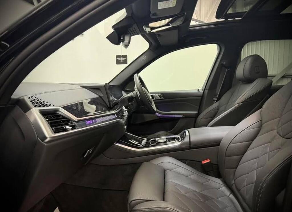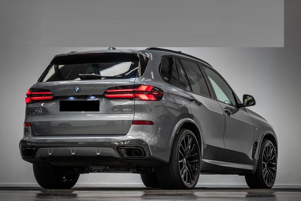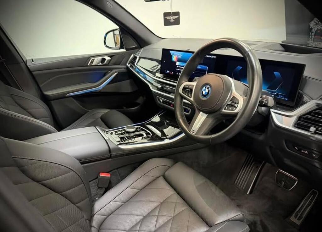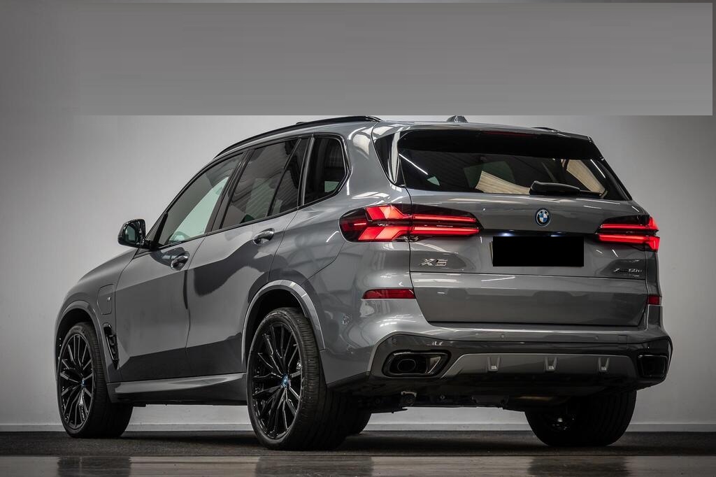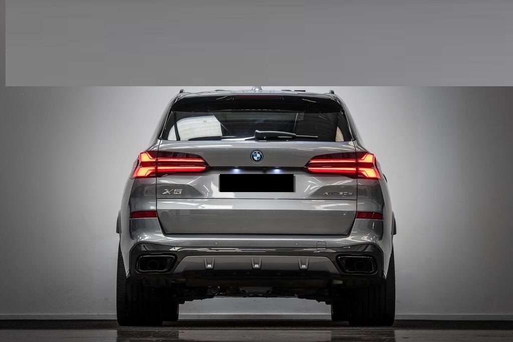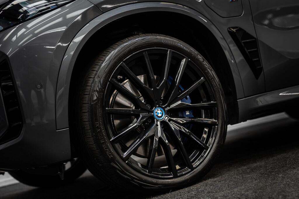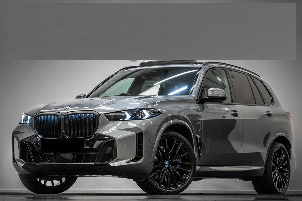 BMW X5 3.0 50e 25.7kWh M Sport Steptronic xDrive Panoramic Sunroof на 22-дюймовых легкосплавных дисках M Double-Spoke Jet Black Style 742, пакет M Sport Pro, автоматический кондиционер с 2,5-зонным управлением, сиденья с электроприводом и памятью, подогрев передних сидений, кожаный руль M, спортивные передние сиденья, подрулевые лепестки, технологический пакет, система помощи водителю, круиз-контроль, переключатель режимов движения. Встроенное руководство пользователя, парковочный ассистент, аудиосистема Harman Kardon Surround.