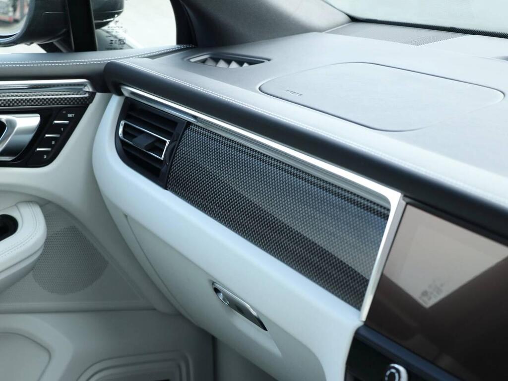 Porsche Macan 2.9T V6 S PDK Panoramic Sunroof на 21-дюймовых дисках RS Spyder Design, адаптивная пневматическая подвеска с системой выравнивания и регулировкой высоты, включая систему активного управления подвеской Porsche (PASM), адаптивные спортивные сиденья спереди (18-позиционная регулировка), аудиосистема BOSE® Surround Sound, карбоновый пакет отделки салона, система помощи при смене полосы движения (мониторинг слепых зон), пакет Sport Chrono, включая переключатель режимов, спортивная выхлопная система с черными патрубками, система кругового обзора, многофункциональный спортивный руль GT с подогревом.