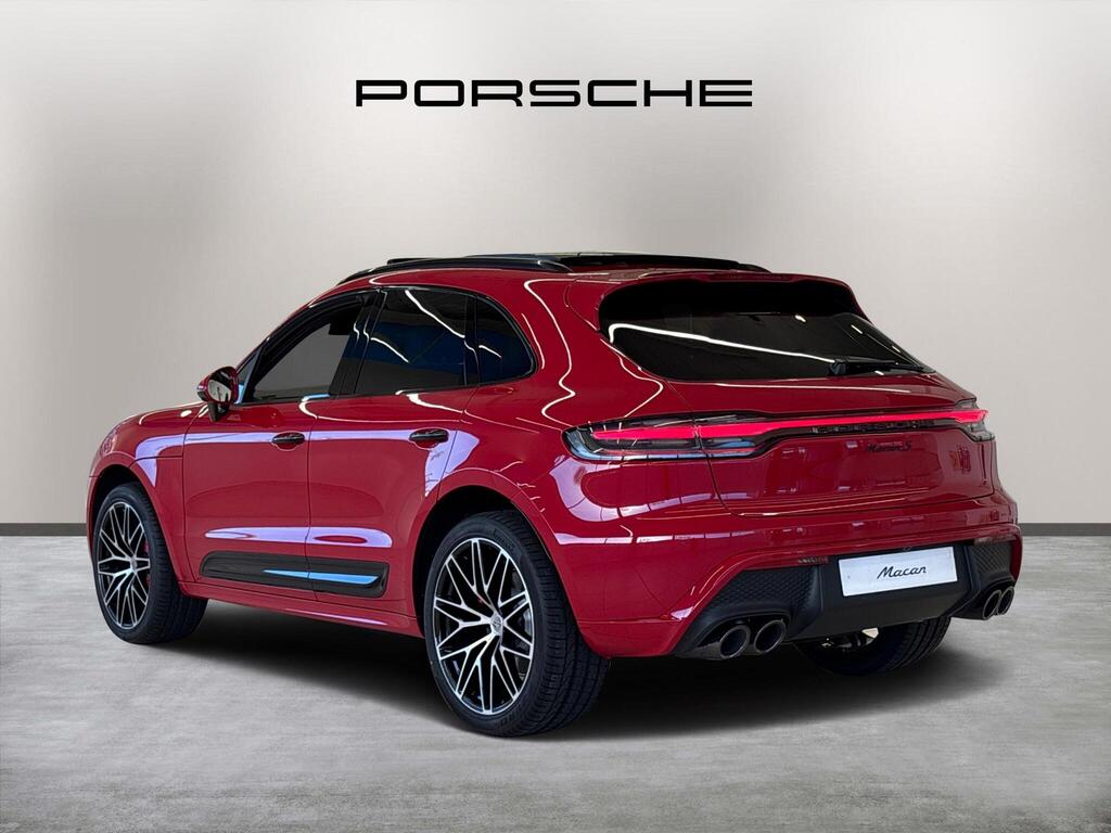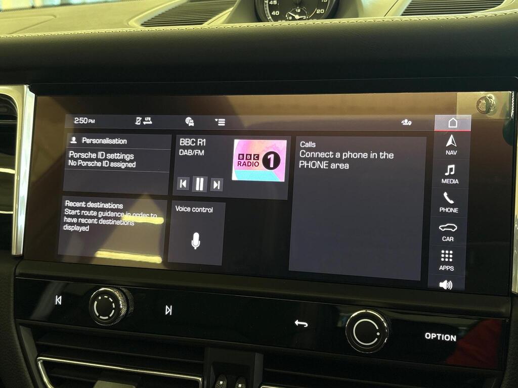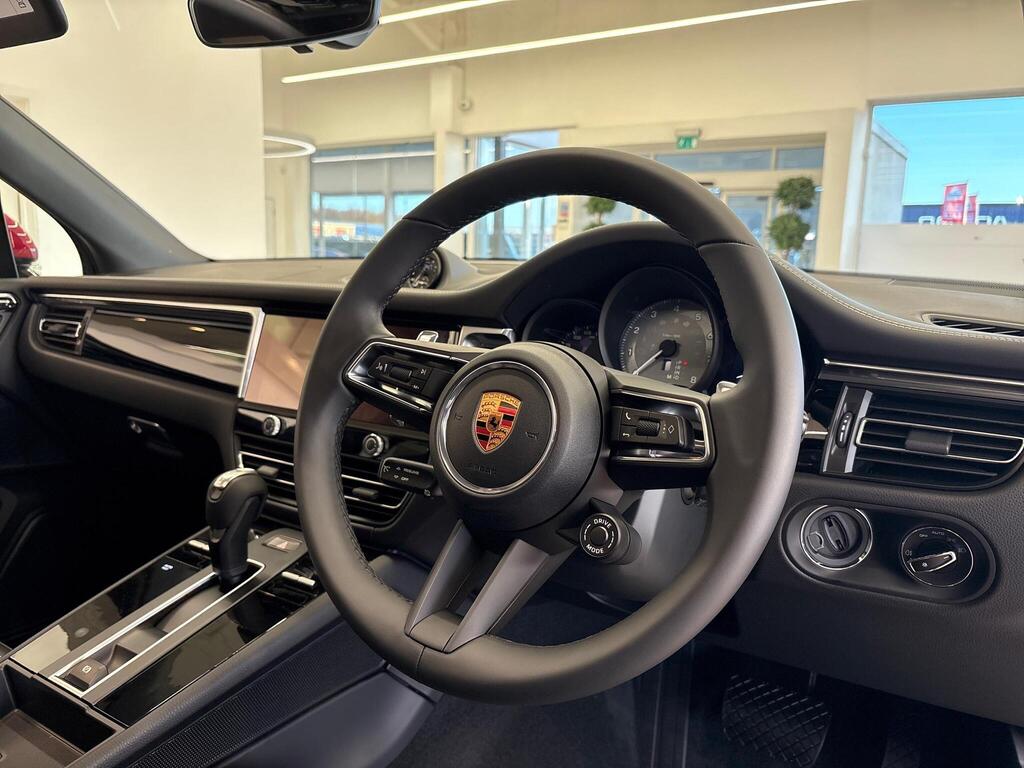 Porsche Macan 2.9 V6 S PDK Panoramic Sunroof на 21-дюймовых легкосплавных дисках — дизайн RS Spyder, тормозные суппорты — красные, тонированные стекла, спортивная выхлопная система с черными патрубками, пакет комфортного освещения, комфортные сиденья — передние с 8-позиционной электрорегулировкой, многофункциональный спортивный руль GT с подогревом, спортивный руль, руль с ручной регулировкой вперед-назад и по высоте, передние сиденья с подогревом, круиз-контроль с ограничителем скорости, система помощи при смене полосы движения — мониторинг слепых зон, система предупреждения о выезде из полосы движения, система помощи при парковке — передняя и задняя с визуальным и звуковым предупреждением, система помощи при парковке — передние и задние датчики, включая камеру заднего вида, система кругового обзора, Apple CarPlay с распознаванием голоса Siri, аудиосистема BOSE Surround Sound.