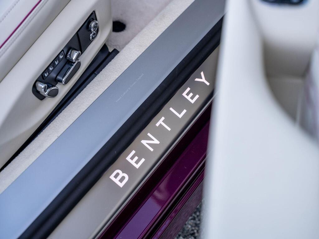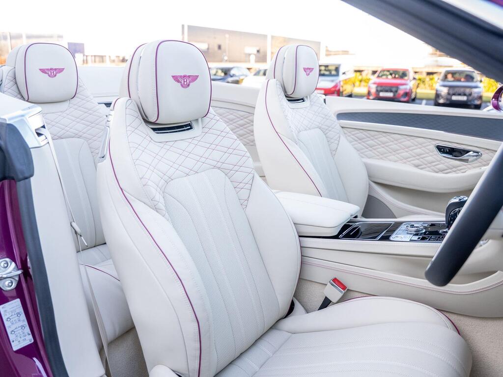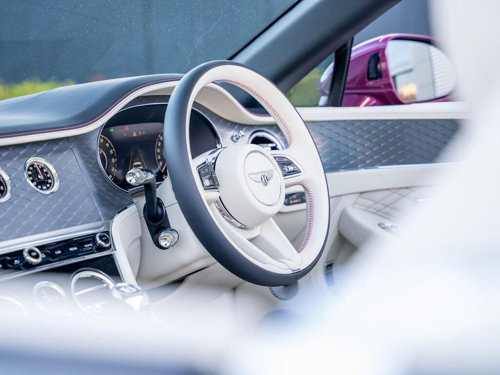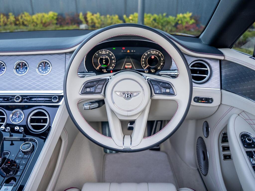 Bentley Continental GTC High-Performance 4.0 V8 25.9kWh на 22-дюймовых легкосплавных дисках — десятиспицевые — окрашенные в черный цвет и отполированные, Bang and Olufsen для Bentley, вращающийся дисплей Bentley, передние сиденья с системой Wellness, самовыравнивающаяся эмблема на колесах — от Mulliner, рулевое колесо — трехспицевое двухцветное с кожаной отделкой и подогревом, 3D-система кругового обзора, адаптивный круиз-контроль, система предупреждения о слепых зонах, система помощи водителю с отображением окружающей среды. Передний и задний парктроник, интеллектуальная система помощи при парковке, система помощи при движении по полосе, камера заднего вида с графическим отображением на экране, передние сиденья — электрическая 12-позиционная регулировка с подогревом и двумя функциями памяти, скрытая антенна, многозонная автоматическая система климат-контроля, два задних сиденья с центральным отсеком для хранения вещей, включая розетку 12 В и два USB-порта для зарядки.