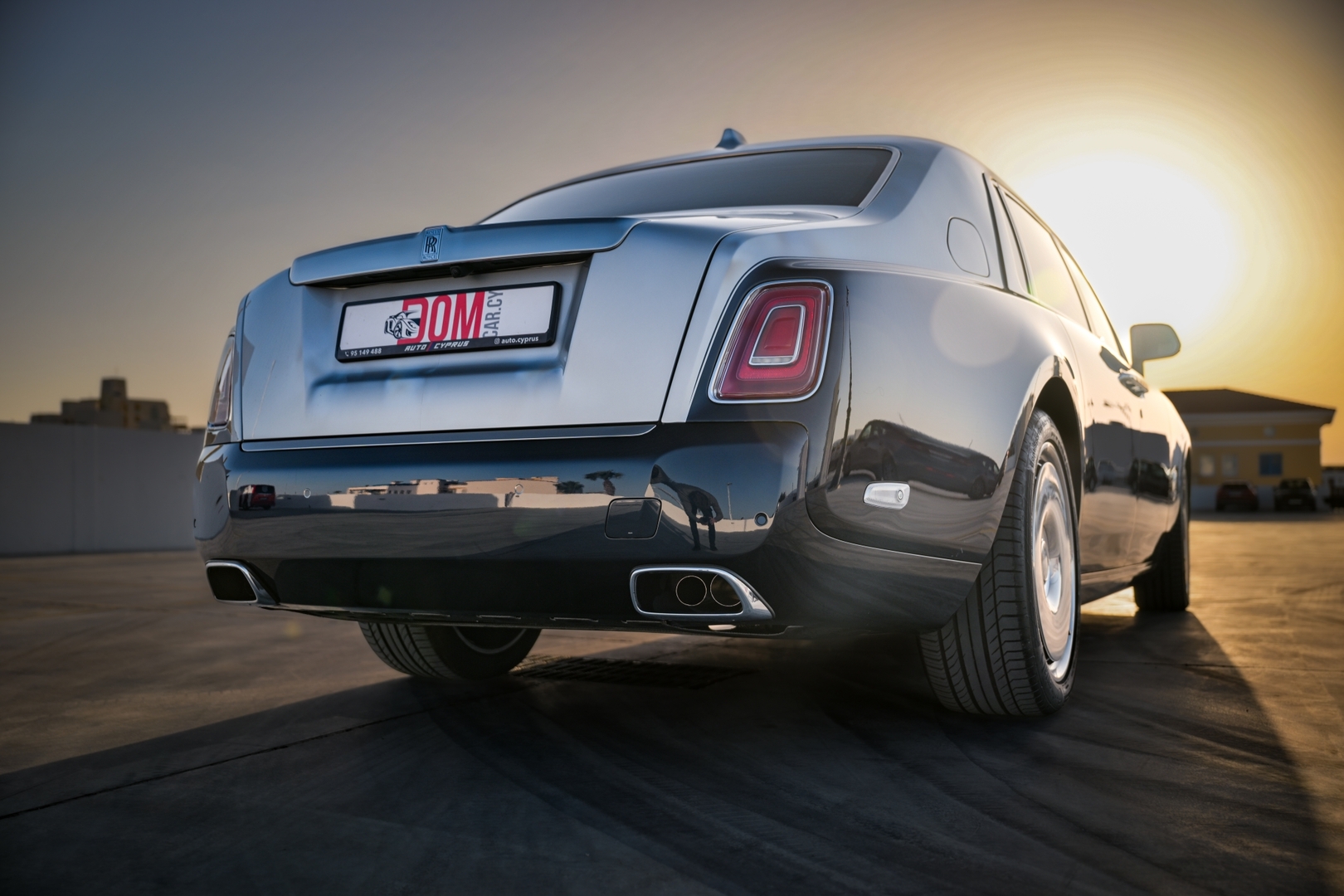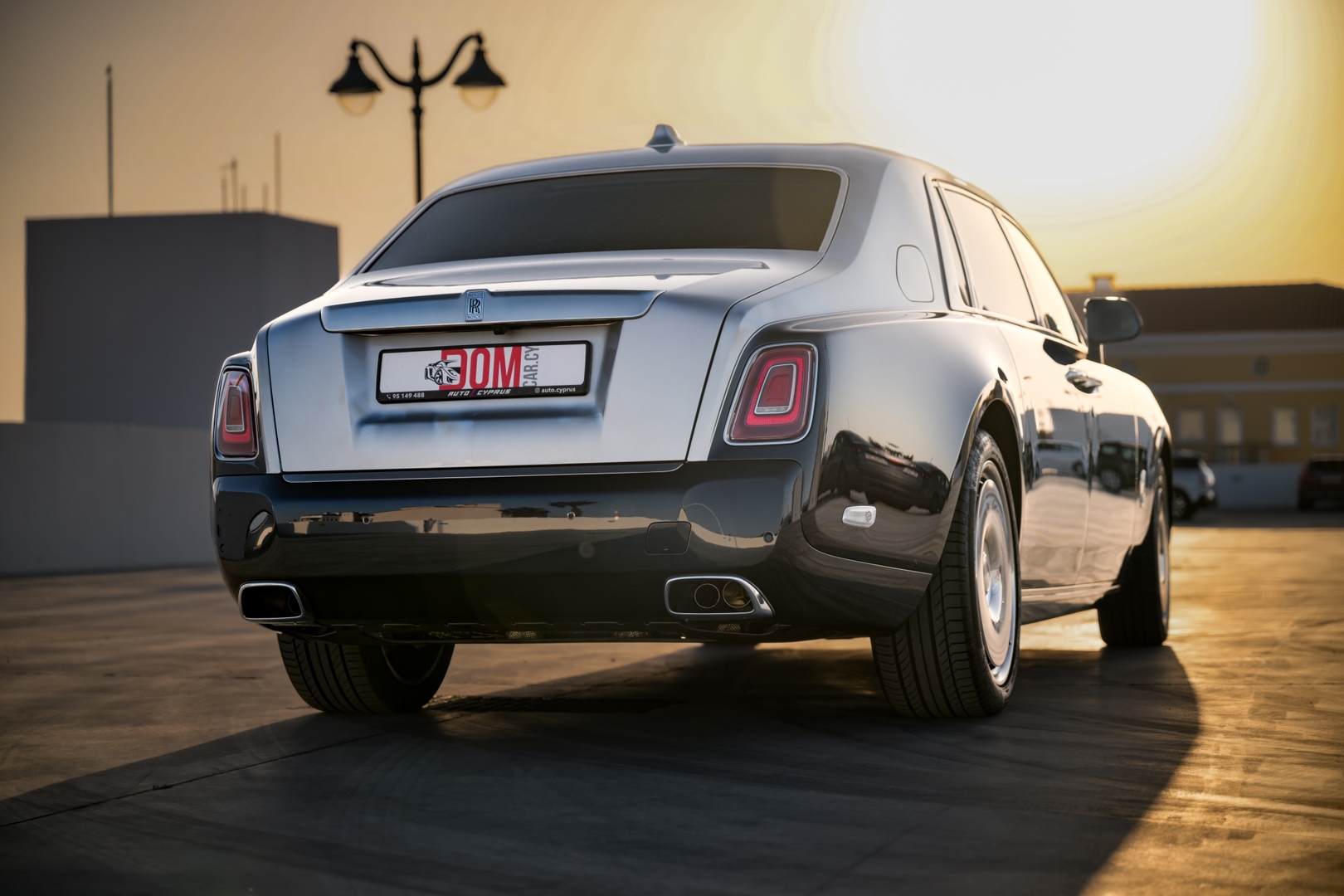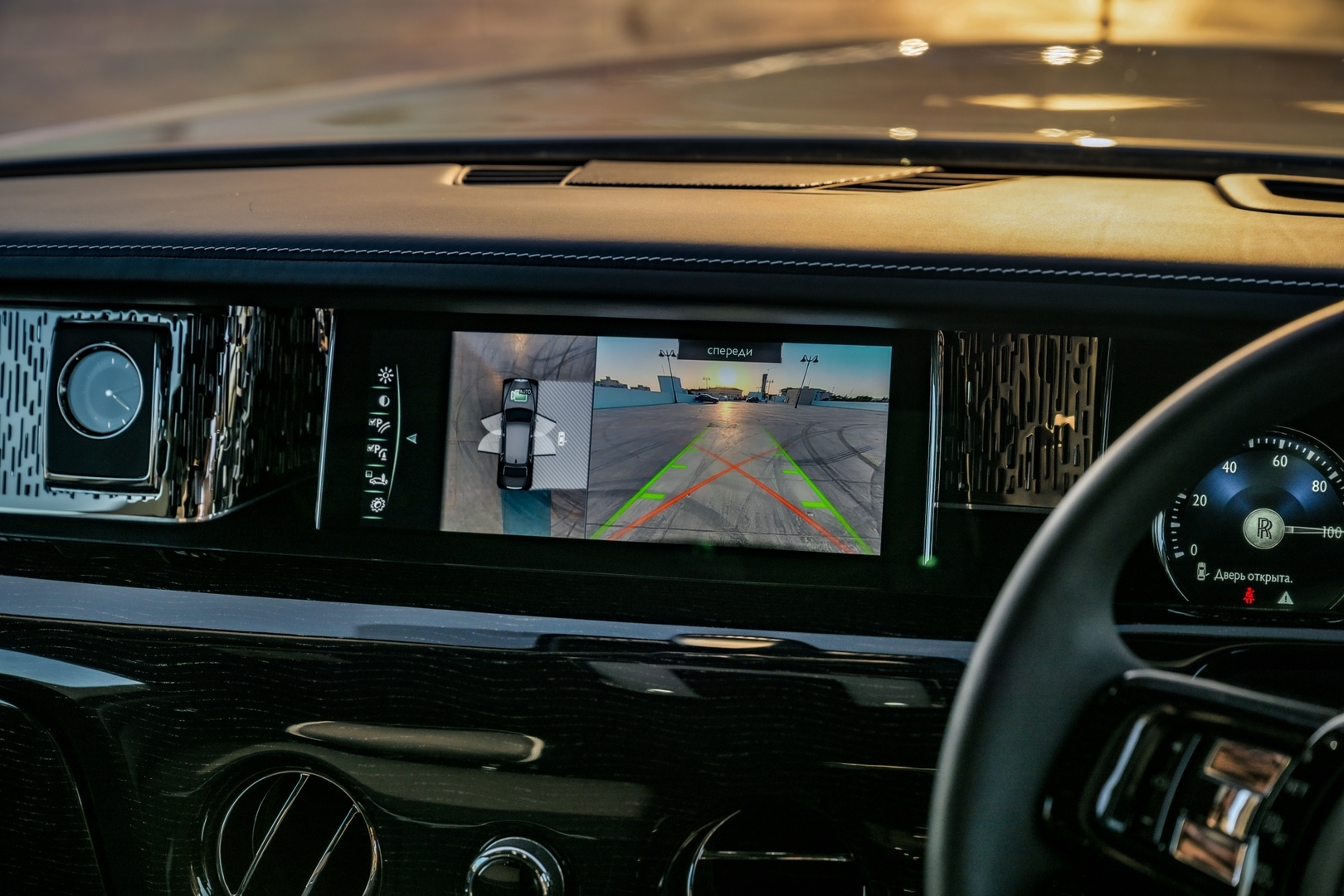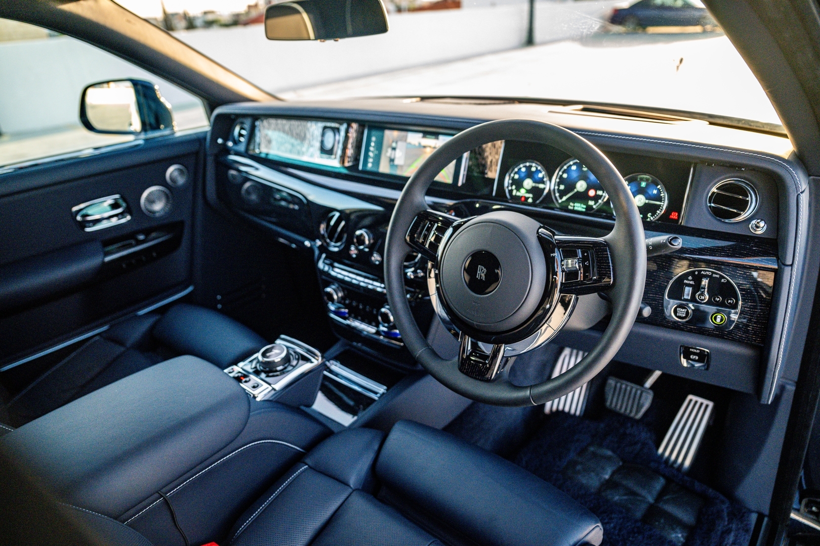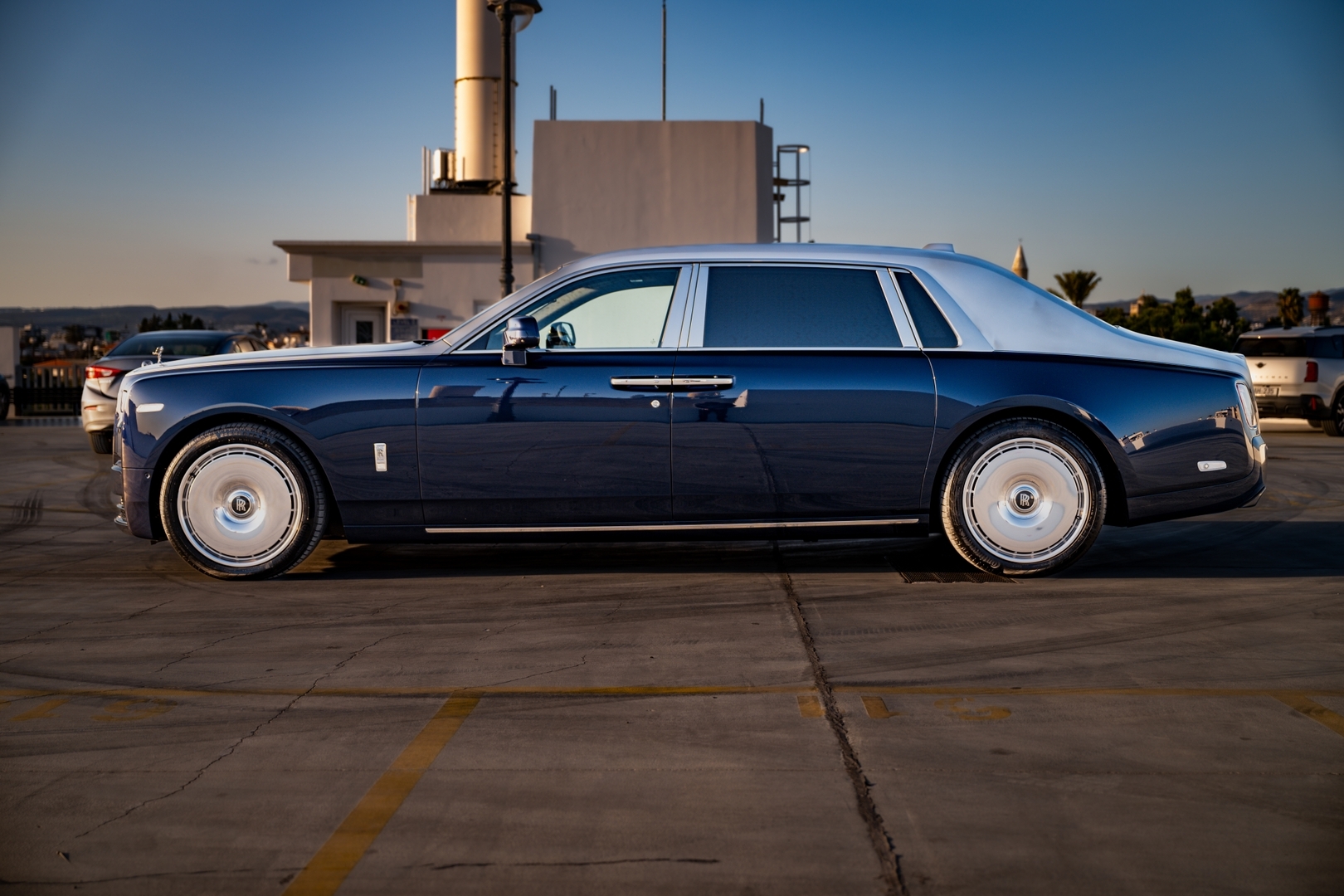 Rolls-Royce Phantom Extended 6.75 V12 на 22-дюймовых кованых полностью полированных дисках , хромированные видимые выхлопные трубки, вентилируемые передние и задние сиденья, спицы рулевого колеса с отделкой шпоном, откидные столики для пикника с отделкой шпоном, потолок с отделкой «Падающая звезда», индивидуальная конфигурация сидений, передние и задние сиденья с функцией массажа, система комфортного доступа, задние тонированные стекла, задняя конфигурация под TV, шторки в багажном отделении, аудиосистема Rolls-Royce Bespoke, системы помощи водителю, активный круиз-контроль, система помощи при переключении дальнего света, проекционный дисплей, фиксированная центральная консоль для задних сидений.