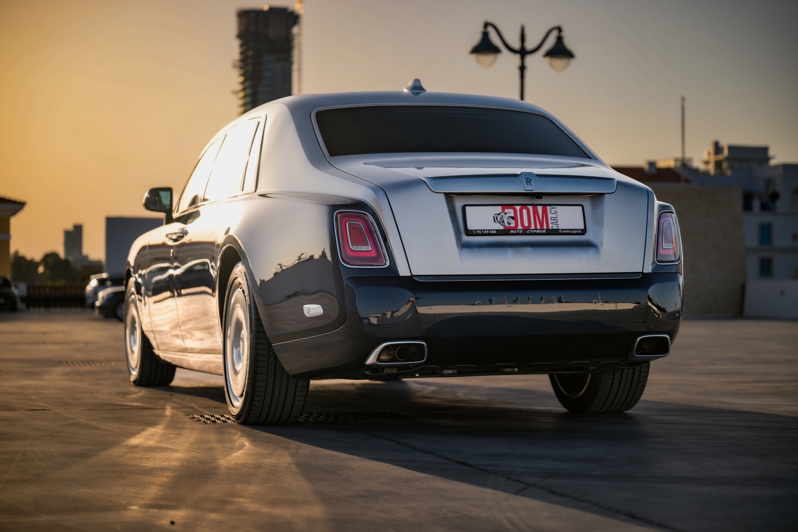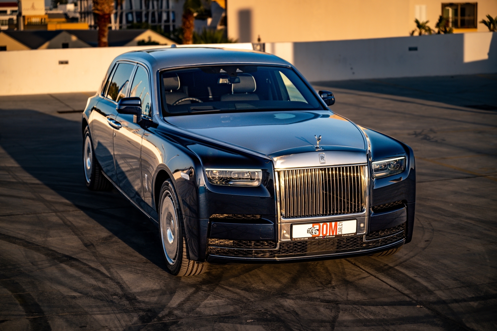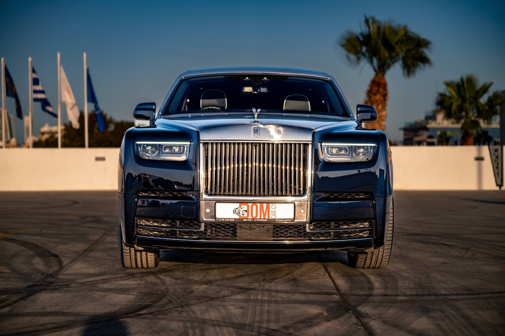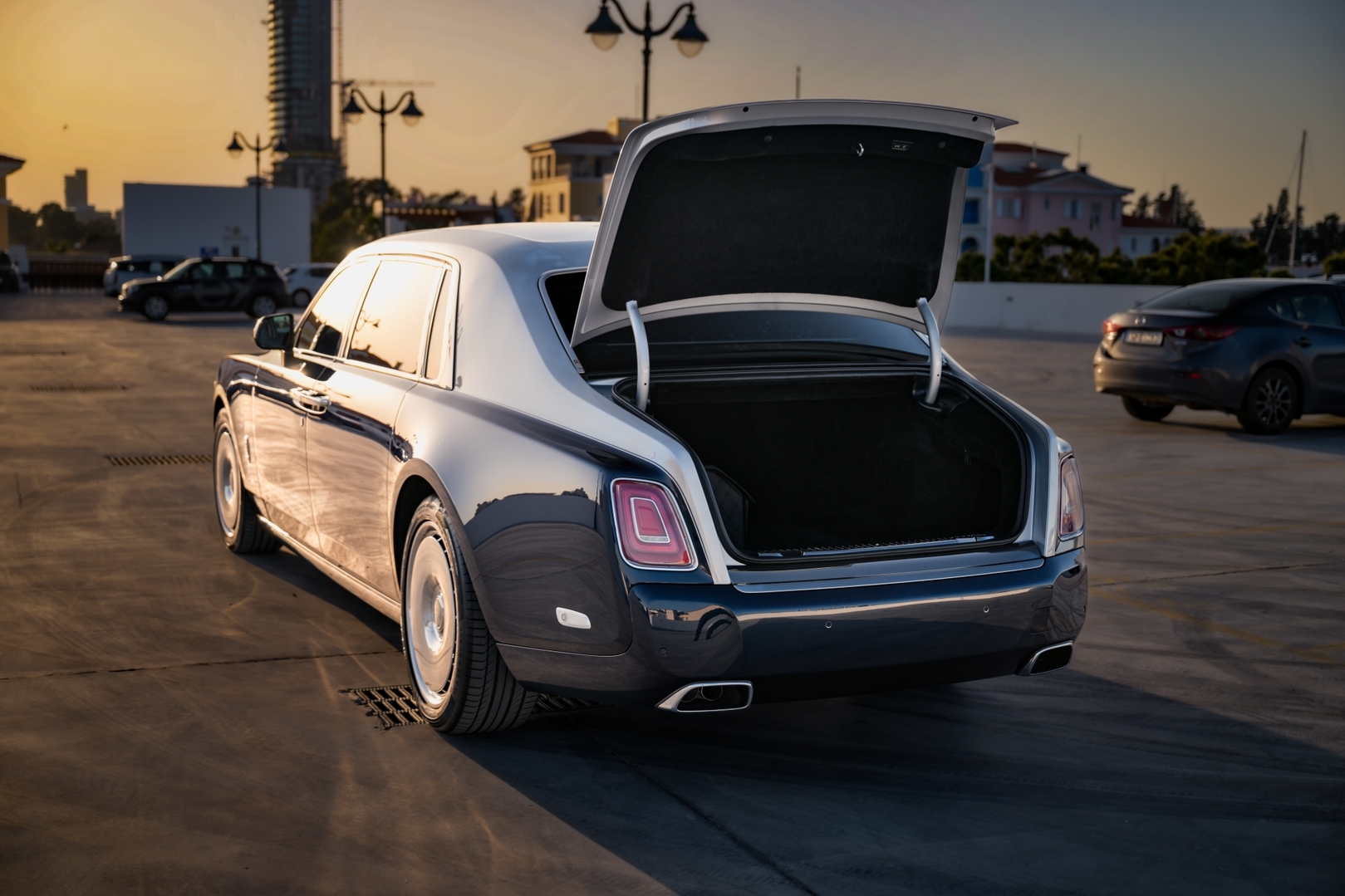 Rolls-Royce Phantom Extended 6.75 V12 на 22-дюймовых кованых полностью полированных дисках , хромированные видимые выхлопные трубки, вентилируемые передние и задние сиденья, спицы рулевого колеса с отделкой шпоном, откидные столики для пикника с отделкой шпоном, потолок с отделкой «Падающая звезда», индивидуальная конфигурация сидений, передние и задние сиденья с функцией массажа, система комфортного доступа, задние тонированные стекла, задняя конфигурация под TV, шторки в багажном отделении, аудиосистема Rolls-Royce Bespoke, системы помощи водителю, активный круиз-контроль, система помощи при переключении дальнего света, проекционный дисплей, фиксированная центральная консоль для задних сидений.