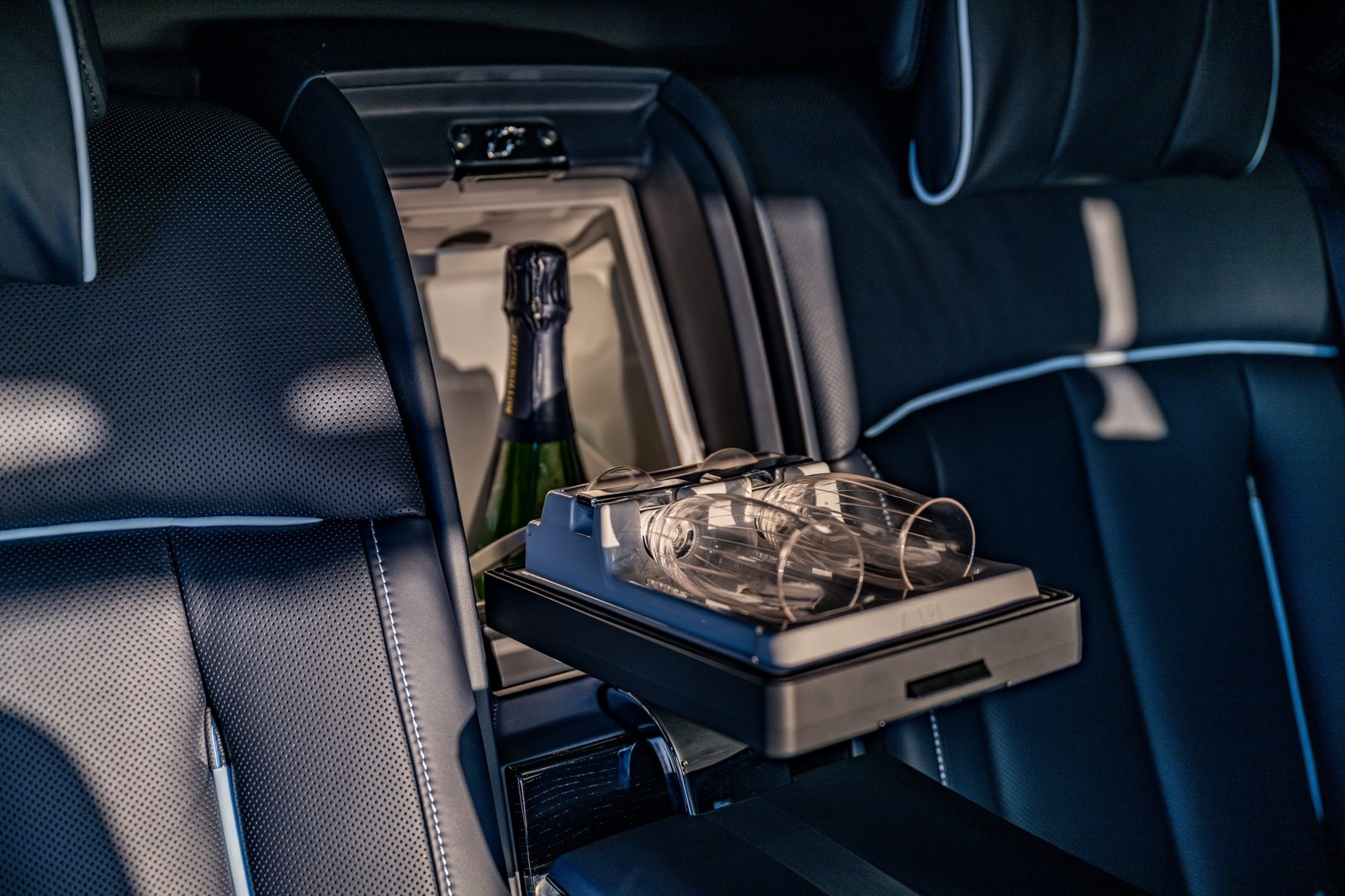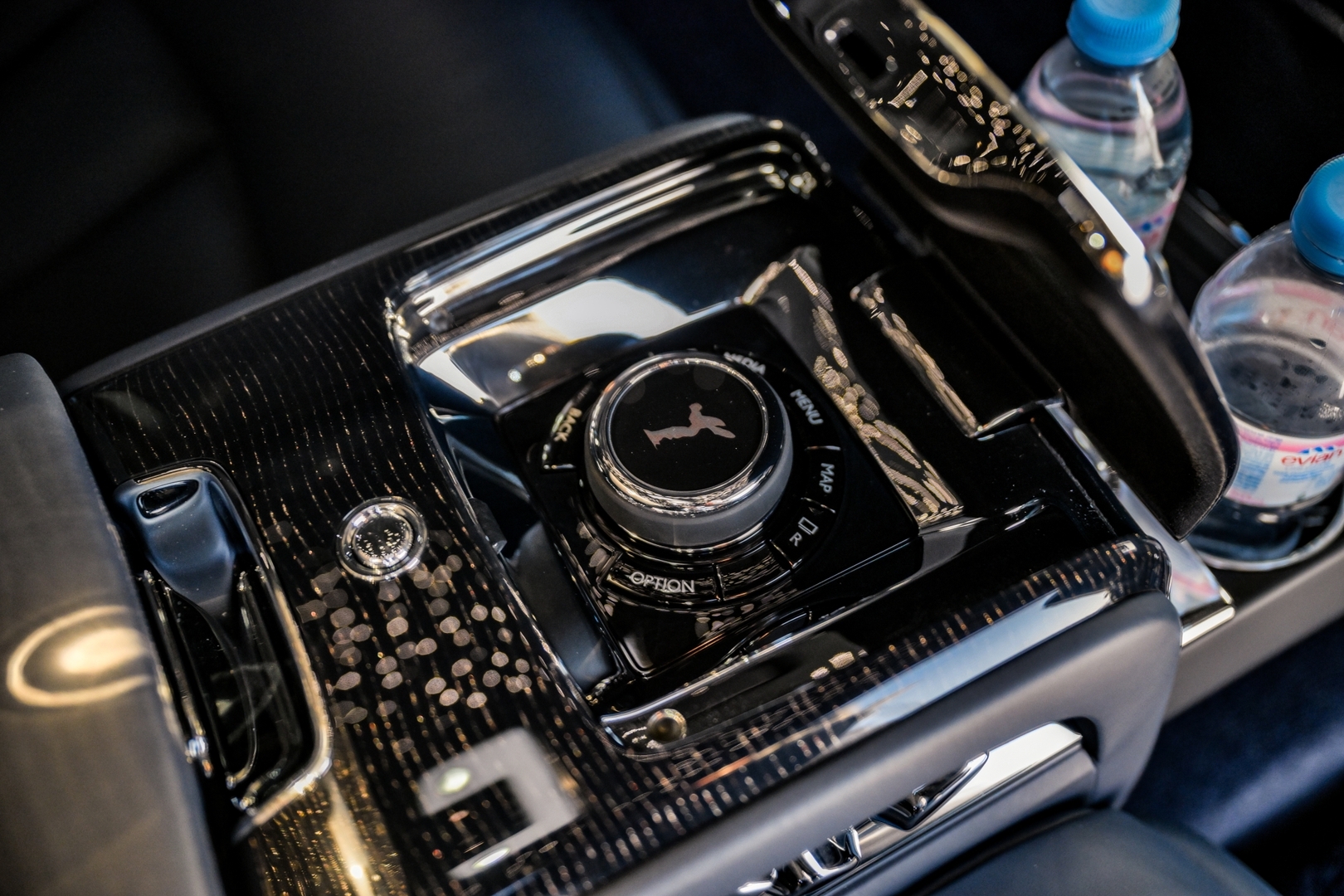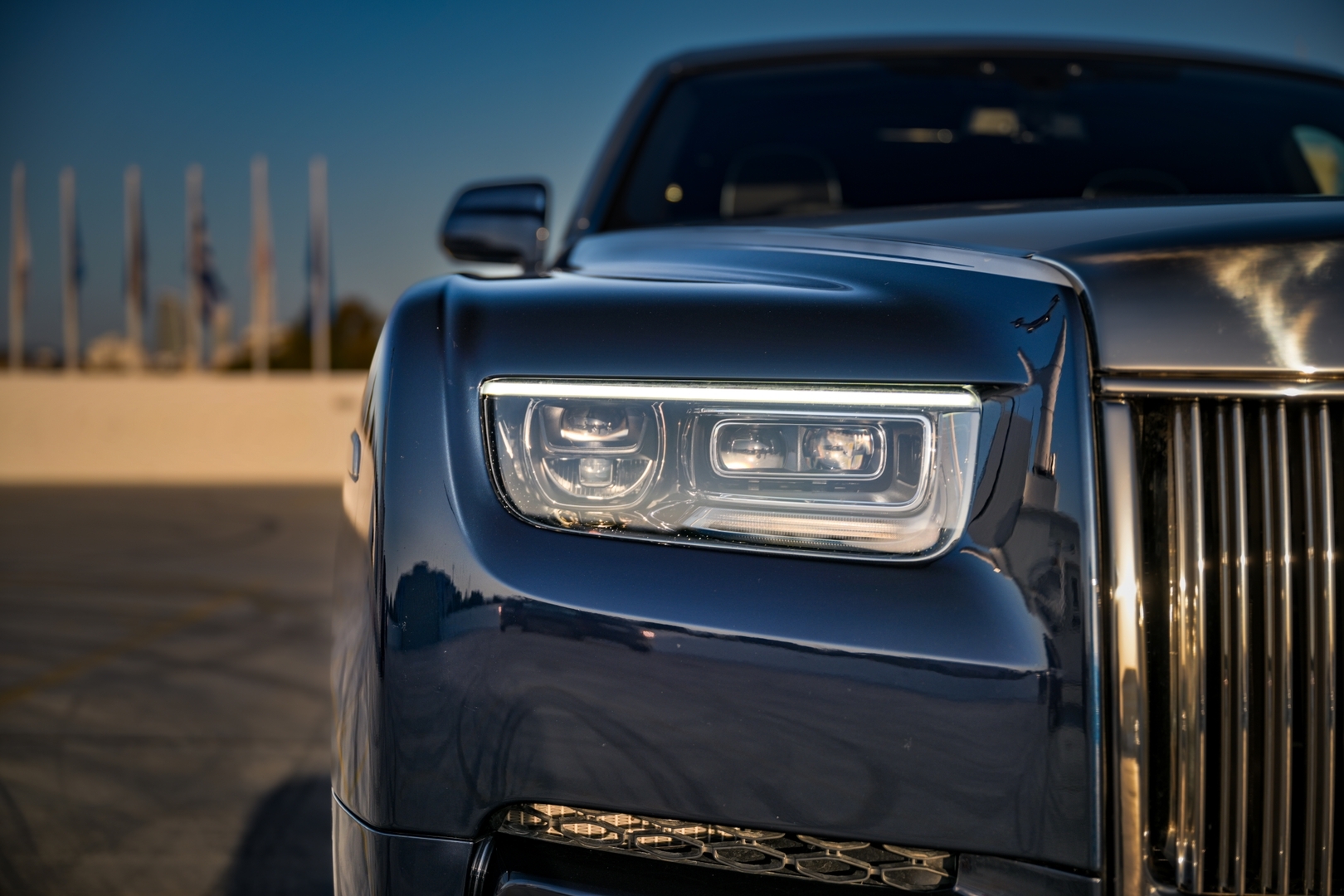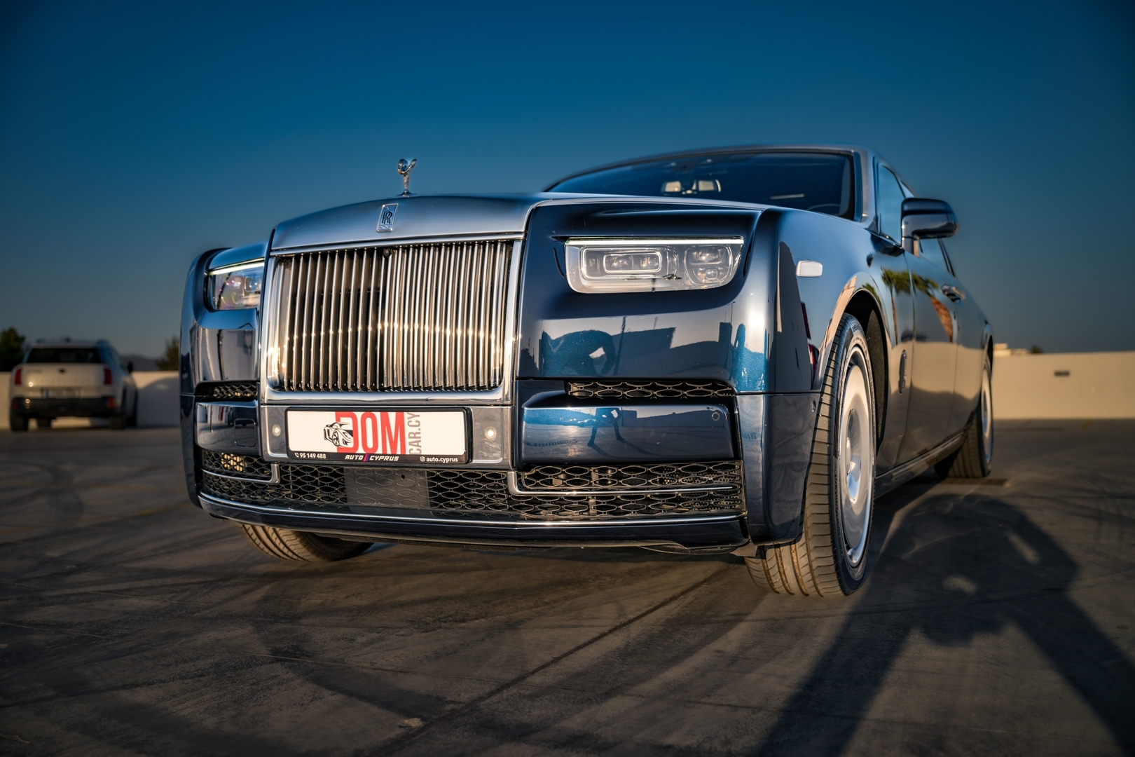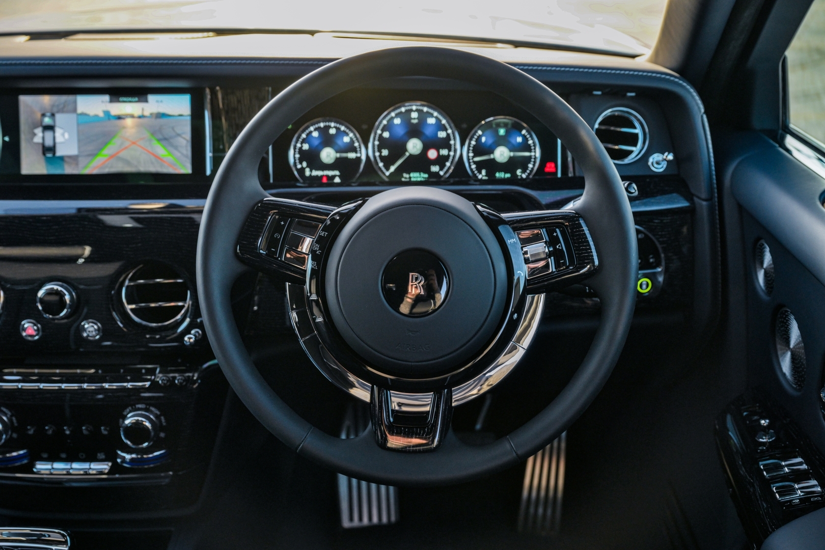 Rolls-Royce Phantom Extended 6.75 V12 на 22-дюймовых кованых полностью полированных дисках , хромированные видимые выхлопные трубки, вентилируемые передние и задние сиденья, спицы рулевого колеса с отделкой шпоном, откидные столики для пикника с отделкой шпоном, потолок с отделкой «Падающая звезда», индивидуальная конфигурация сидений, передние и задние сиденья с функцией массажа, система комфортного доступа, задние тонированные стекла, задняя конфигурация под TV, шторки в багажном отделении, аудиосистема Rolls-Royce Bespoke, системы помощи водителю, активный круиз-контроль, система помощи при переключении дальнего света, проекционный дисплей, фиксированная центральная консоль для задних сидений.