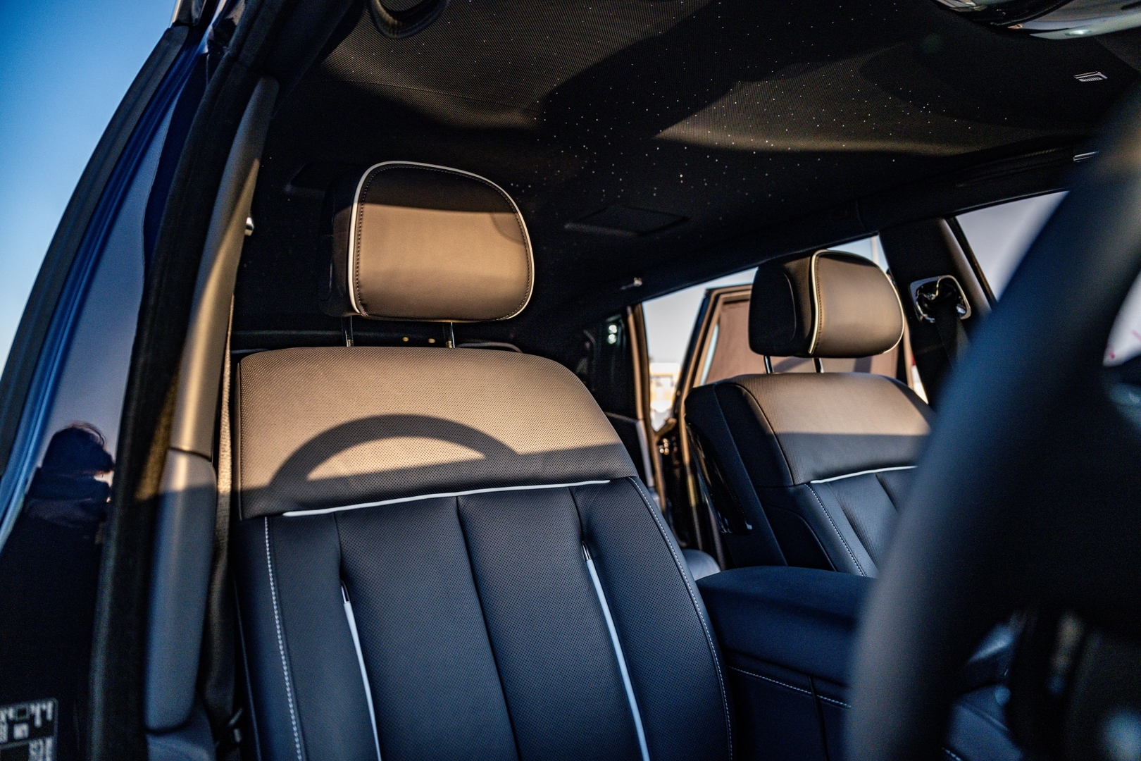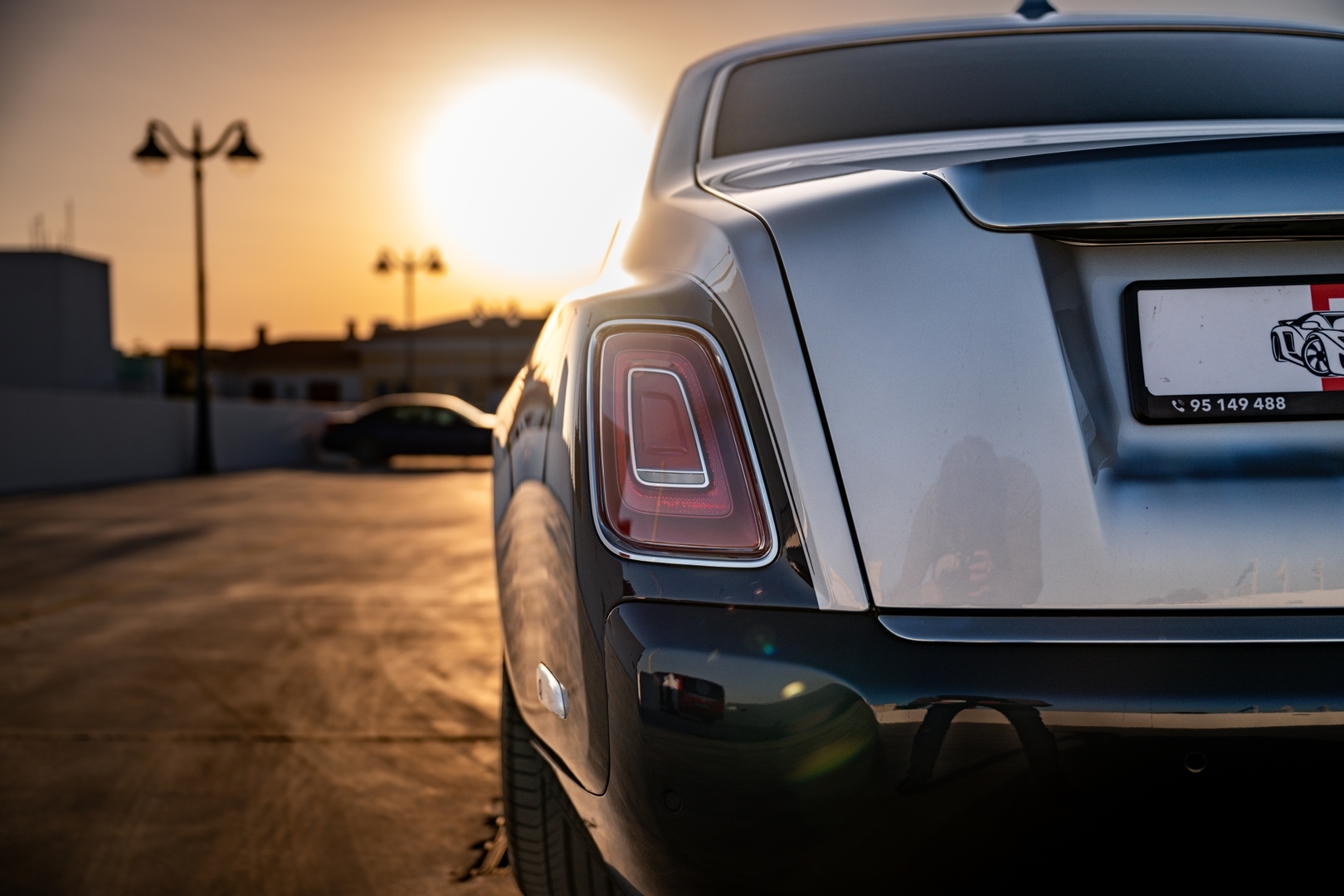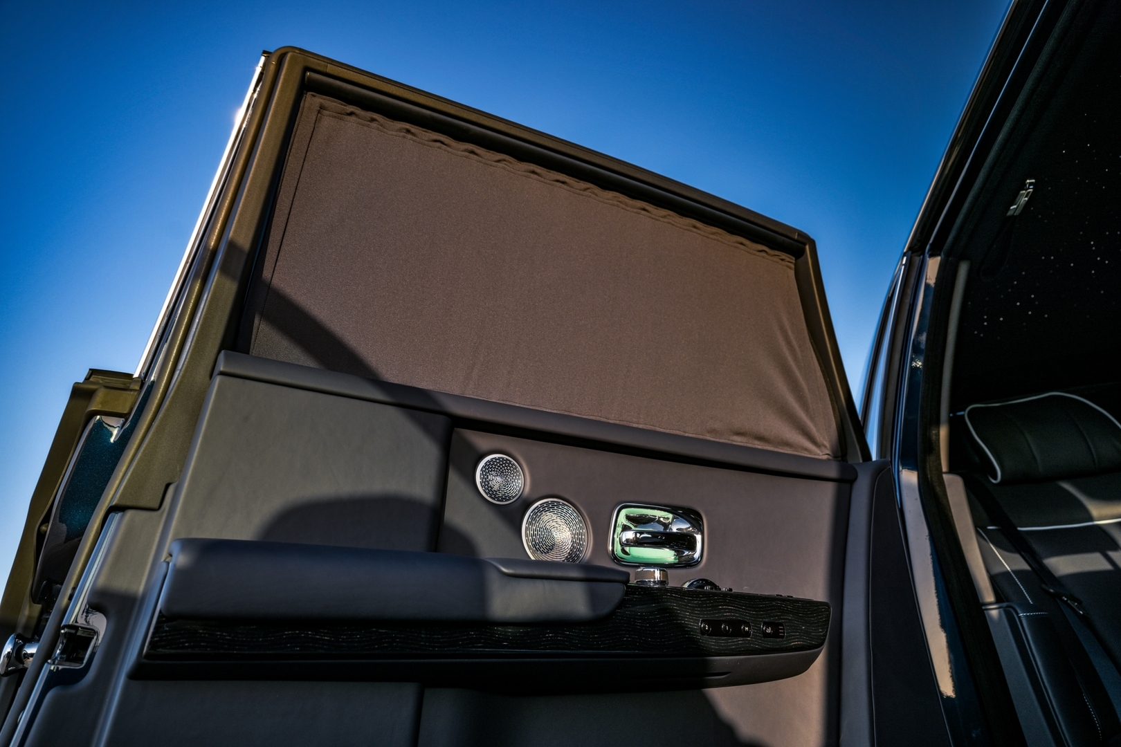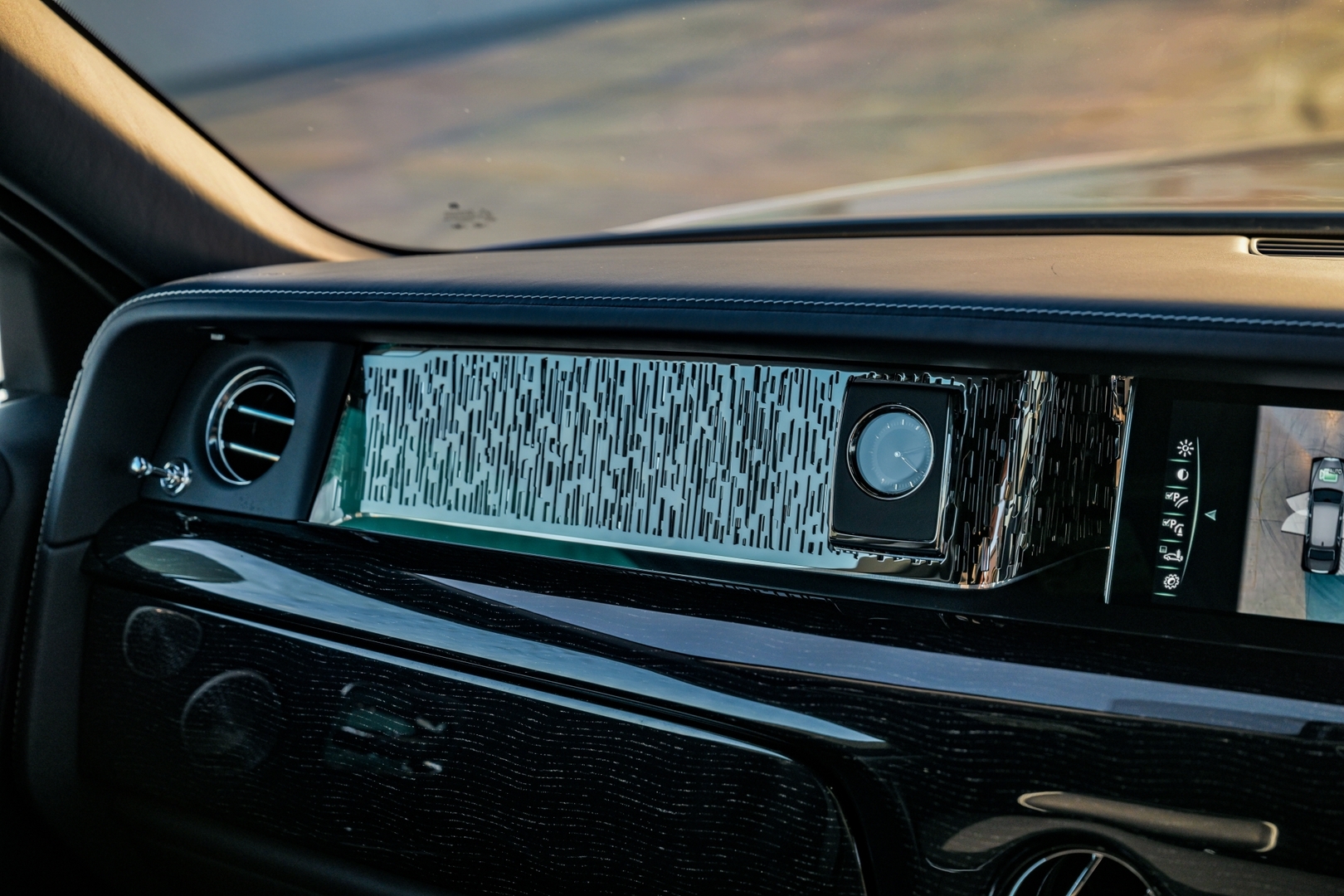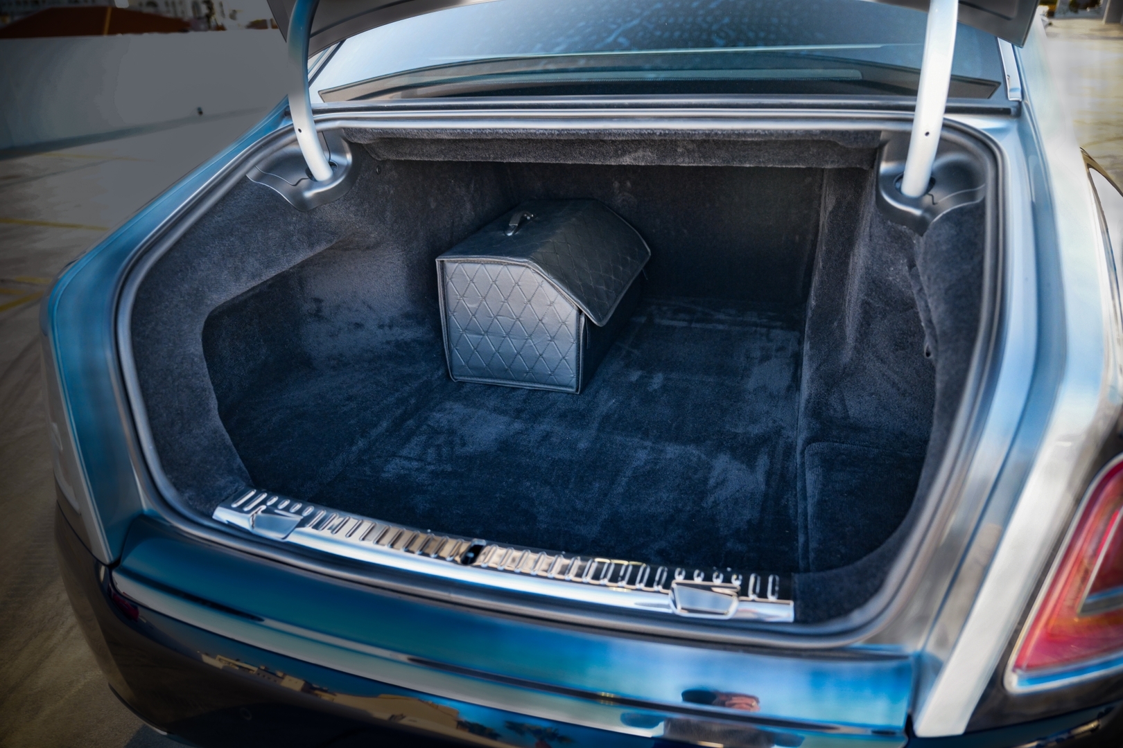 Rolls-Royce Phantom Extended 6.75 V12 на 22-дюймовых кованых полностью полированных дисках , хромированные видимые выхлопные трубки, вентилируемые передние и задние сиденья, спицы рулевого колеса с отделкой шпоном, откидные столики для пикника с отделкой шпоном, потолок с отделкой «Падающая звезда», индивидуальная конфигурация сидений, передние и задние сиденья с функцией массажа, система комфортного доступа, задние тонированные стекла, задняя конфигурация под TV, шторки в багажном отделении, аудиосистема Rolls-Royce Bespoke, системы помощи водителю, активный круиз-контроль, система помощи при переключении дальнего света, проекционный дисплей, фиксированная центральная консоль для задних сидений.