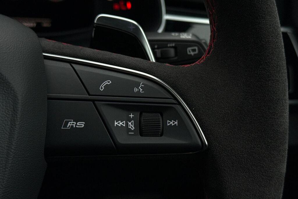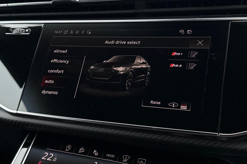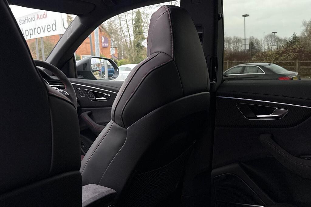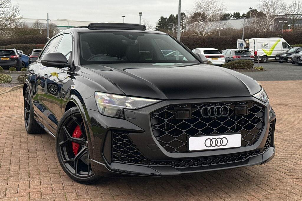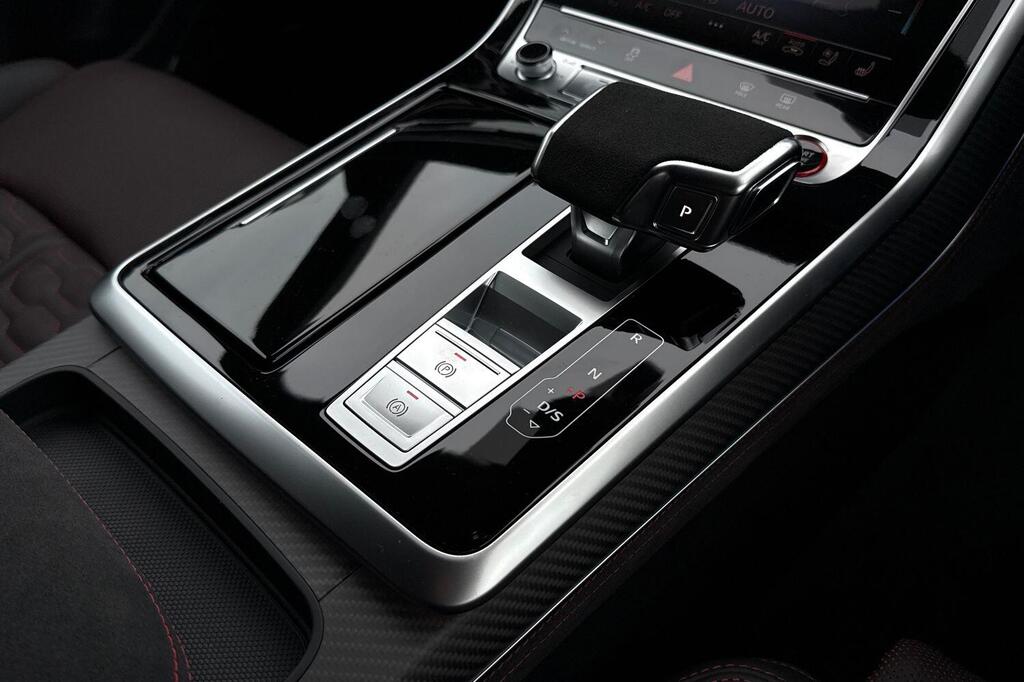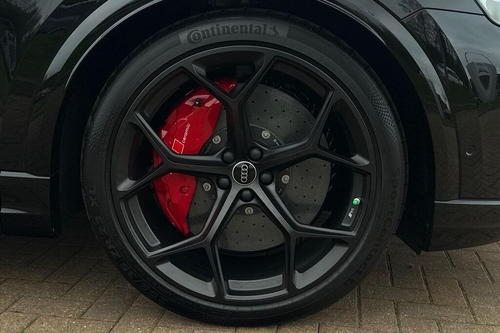 Audi RSQ8 V8 Performance Carbon Vorsprung 4.0 TFSI Tiptronic quattro Panoramic Sunroof на 23-дюймовых легкосплавных дисках - 5-Y-спицевые - Audi Sport - матовый контрастный черный цвет, пакет отделки Matt Carbon Black, пакет RS Design Pack Plus - красный цвет, боковые зеркала с электрорегулировкой, подогревом, складыванием, автоматическим затемнением, функцией памяти и встроенными светодиодными указателями поворота с функцией обзора бордюра для пассажирской стороны, светодиодная проекция логотипа RS Performance при открытии передних и задних боковых дверей, выхлопная система RS Sport с черными патрубками, 4-позиционная поясничная поддержка передних сидений, 4-зонный автоматический кондиционер, ионизатор и ароматизатор воздуха, вентиляция передних сидений, подогрев передних сидений, пакет Technology Pack Pro, многофункциональный спортивный руль RS с 3 спицами, подогревом, кожаной обивкой, подрулевыми переключателями и кнопкой RS Mode, камера кругового обзора 360 градусов. Адаптивный круиз-контроль с функцией экстренного торможения, распознавание дорожной обстановки на основе камер, распознавание дорожных знаков, проекционный дисплей, система предупреждения о выезде из полосы движения, распознавание естественной речи, система помощи при парковке. Кроме того, система парковки Plus с обзором на 360 градусов, передние, задние и боковые датчики, премиальная аудиосистема Bang and Olufsen 3D.
