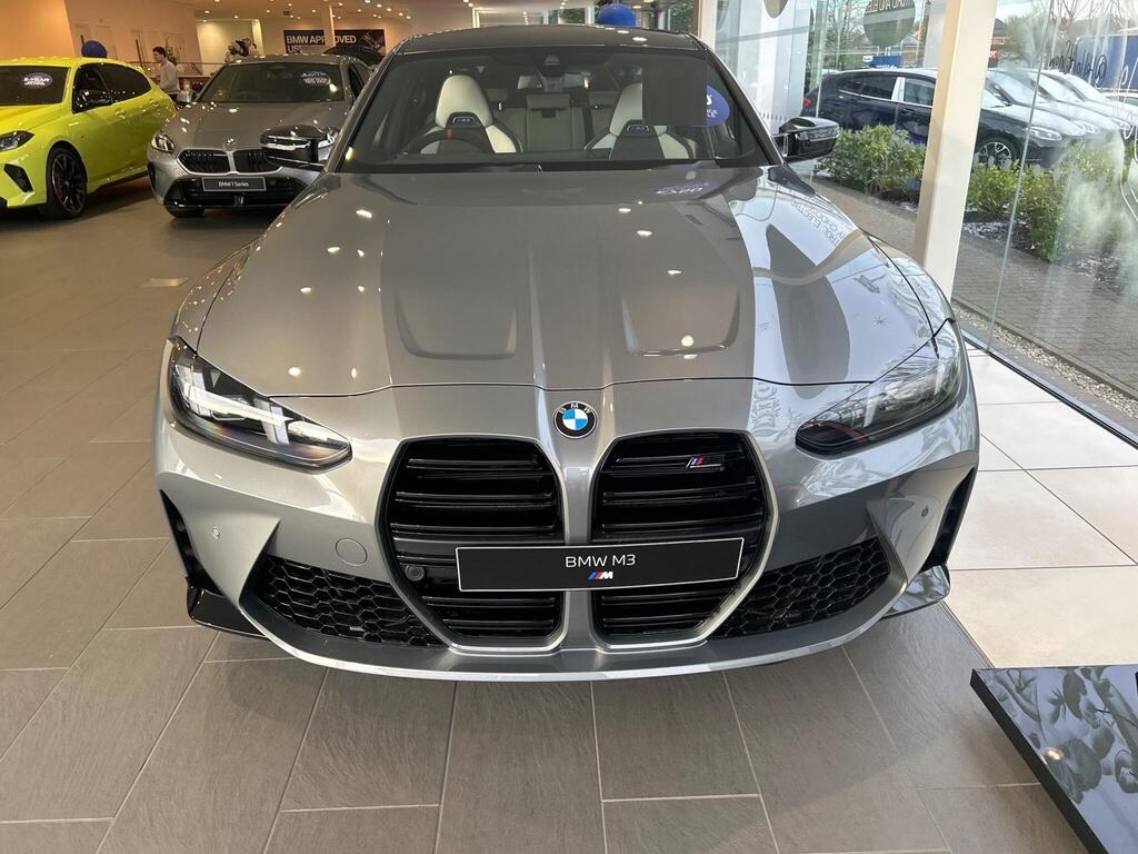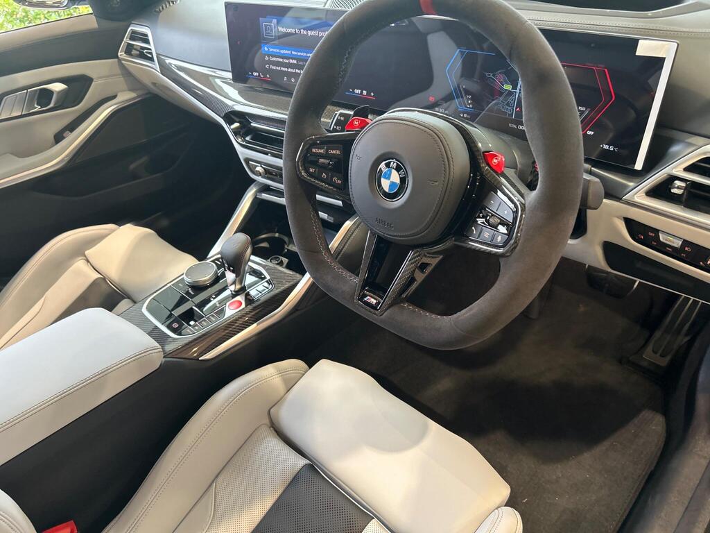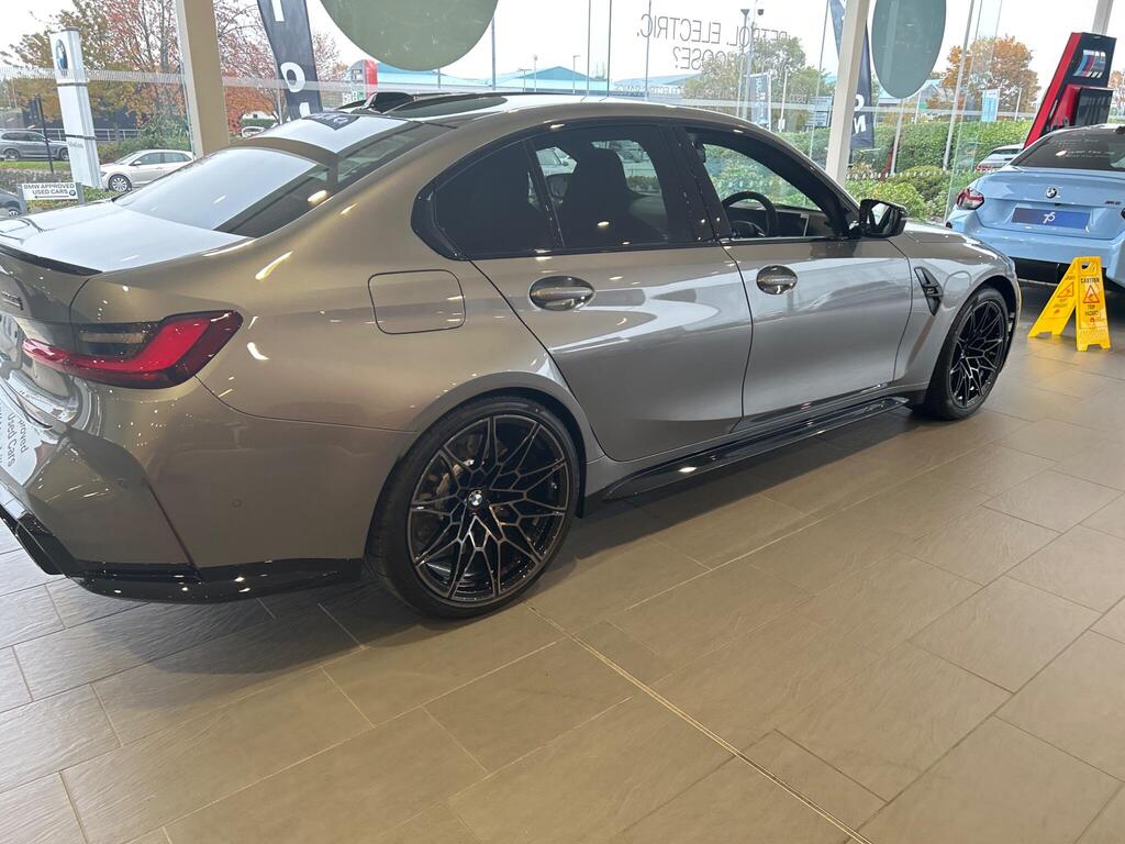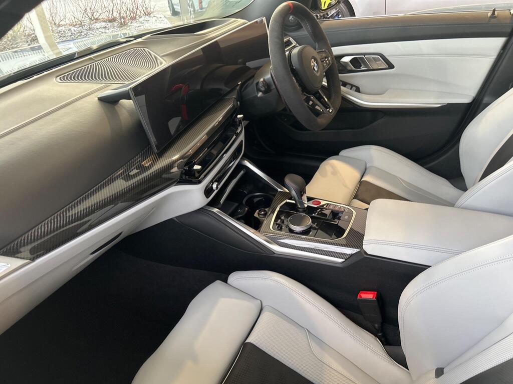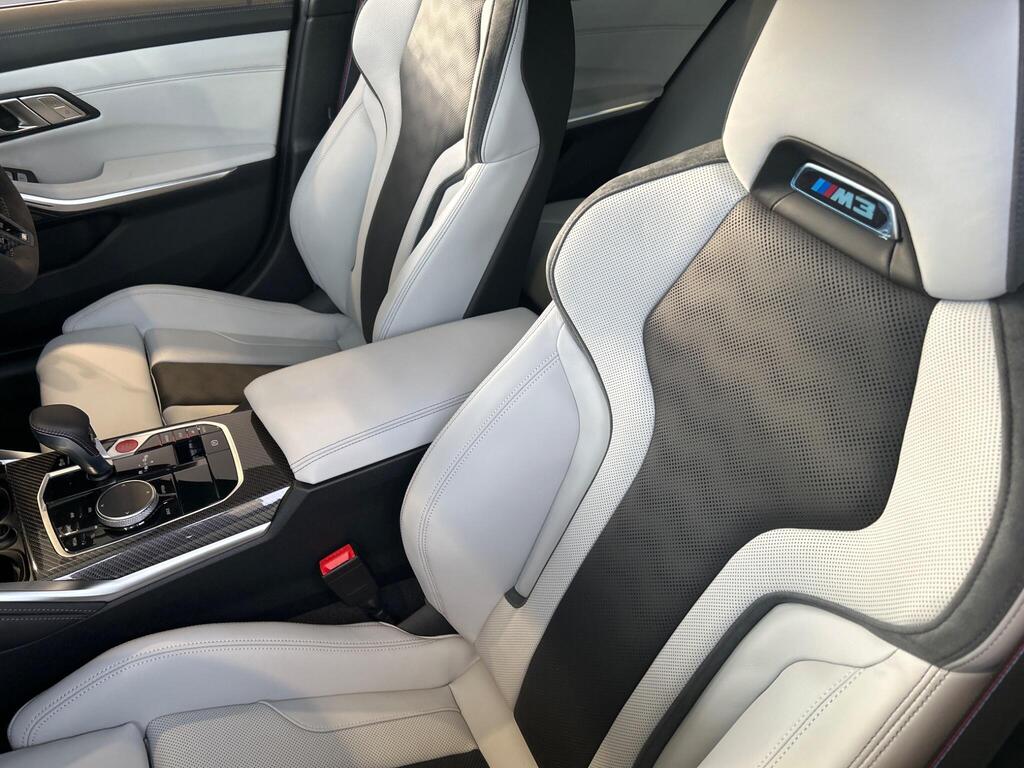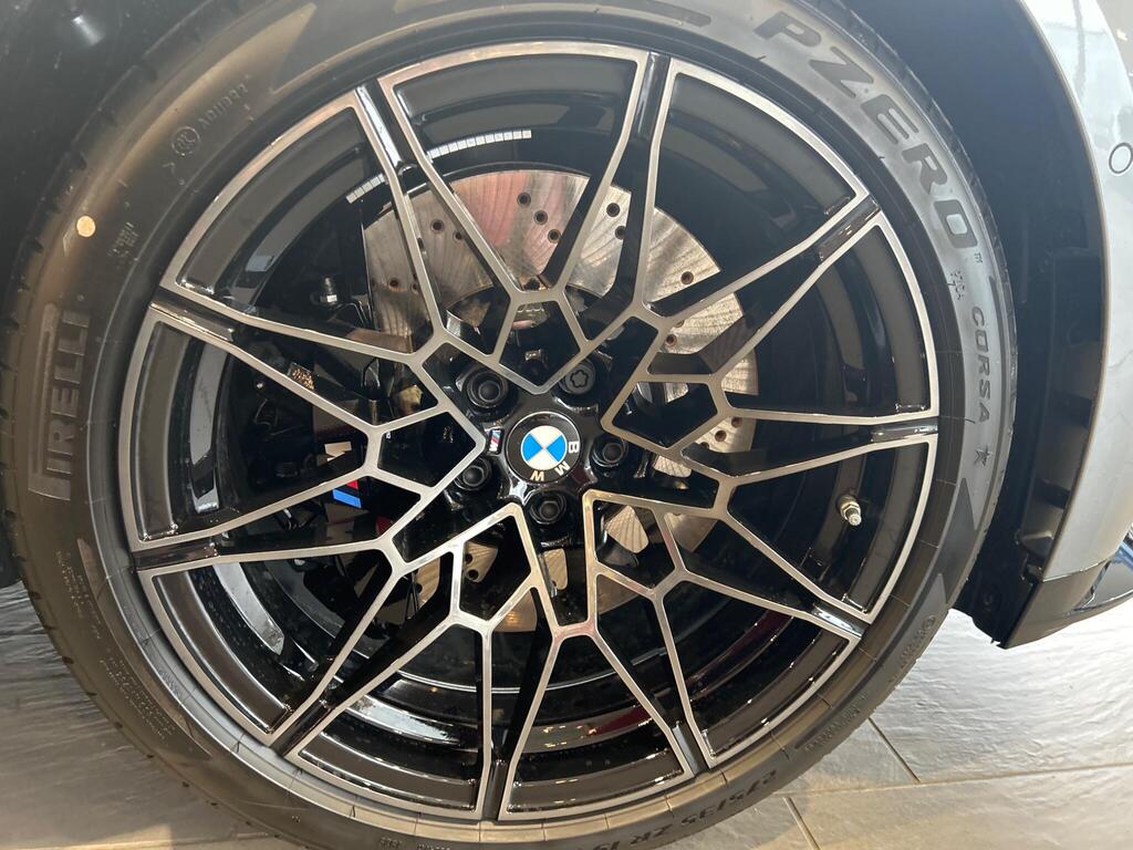 BMW M3 3.0 BiTurbo Competition Steptronic M xDrive на 19-дюймовых передних - 20-дюймовых задних легкосплавных дисках M с двойными спицами - 826 - кованые - двухцветные черные с разноцветными шинами, тормоза M с черными суппортами, подогрев передних сидений, рулевое колесо M из алькантары, отделка салона M из карбона, подогрев рулевого колеса, круиз-контроль с функцией торможения, переключатель режимов движения, парковочный ассистент, индикатор прокола шины, аудиосистема Harman Kardon Surround Audio.