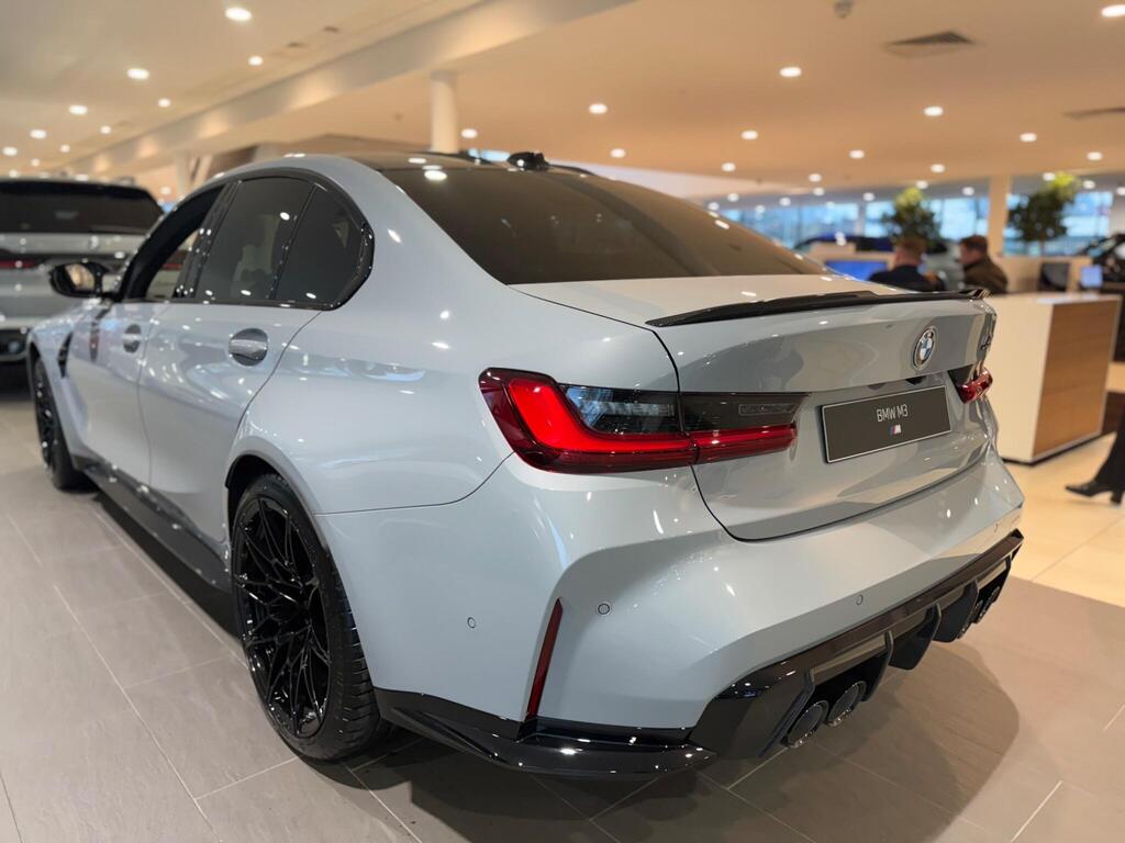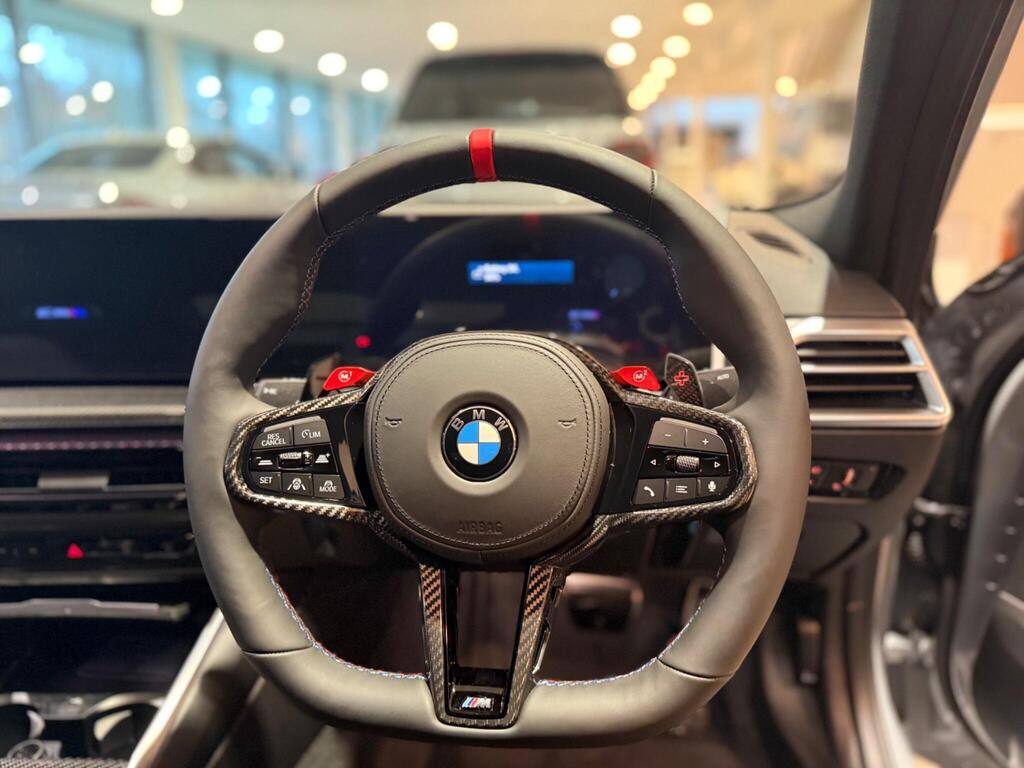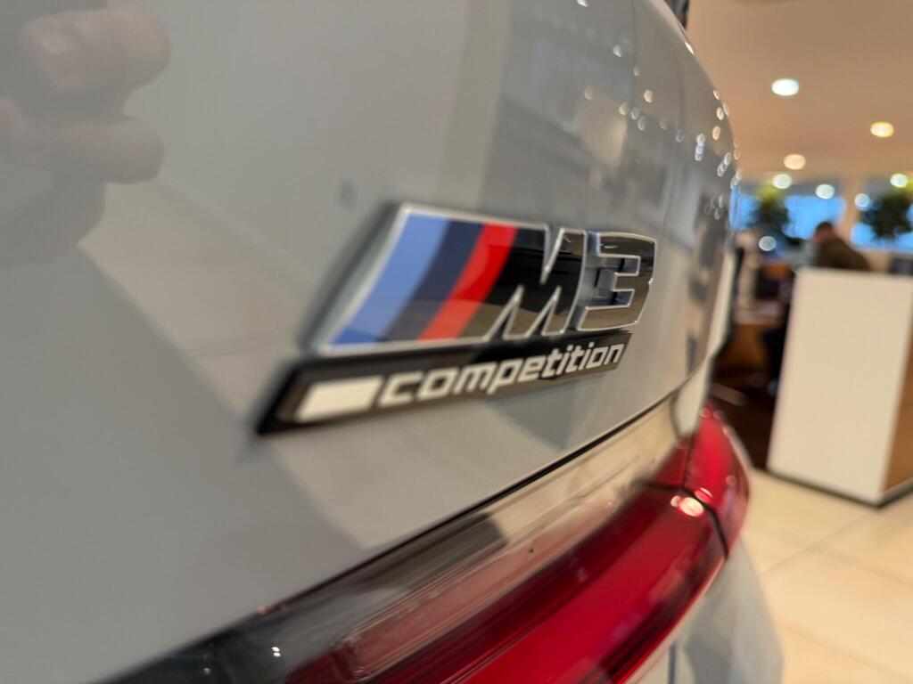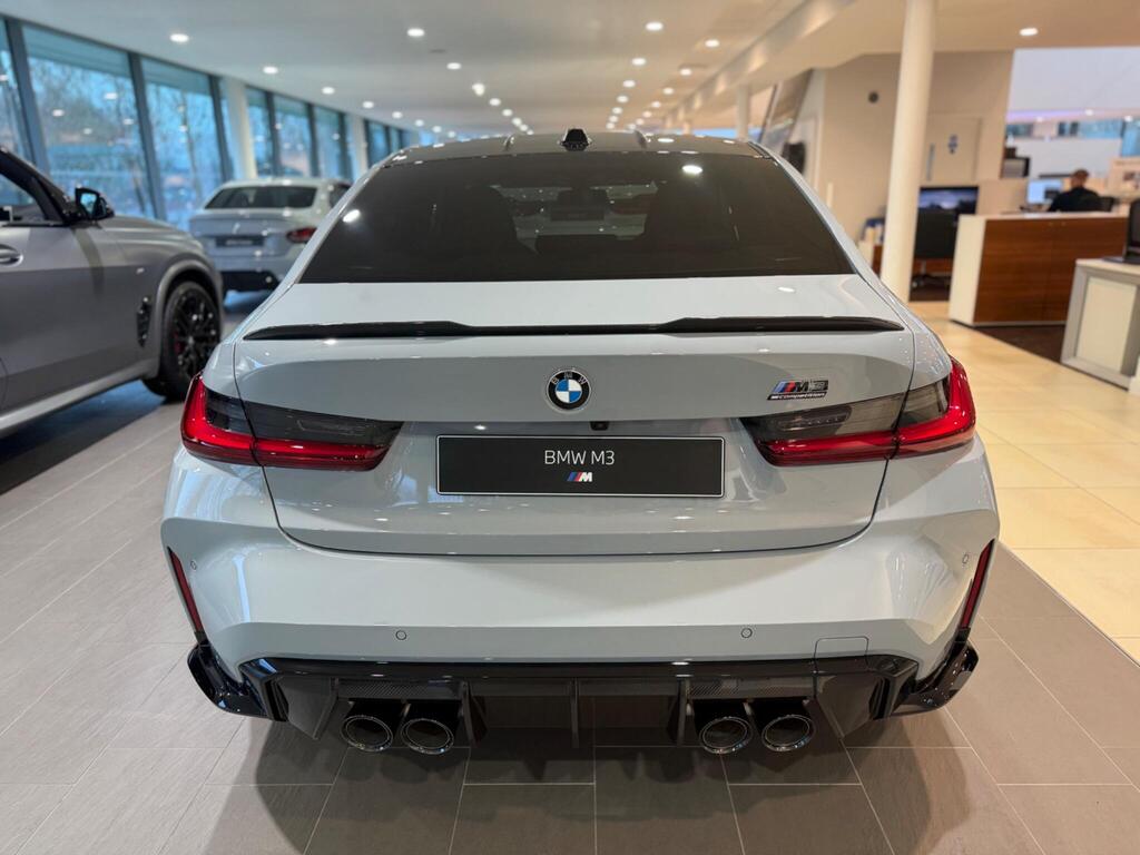 BMW M3 3.0 BiTurbo Competition Steptronic M xDrive на 19-дюймовых передних - 20-дюймовых задних легкосплавных дисках M с двойными спицами - 826 - кованые - черный цвет Jet Black с разноразмерными шинами, пакет Ultimate, тормоза M с красными суппортами, система помощи водителю Driving Assistant Professional, BMW Live Cockpit Professional с проекционным дисплеем, подогрев передних сидений, многофункциональное рулевое колесо, аудиосистема Harman Kardon Surround Audio, круиз-контроль с функцией торможения, переключатель режимов движения Driving Experience Mode. Парковочный ассистент.