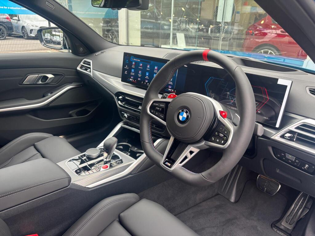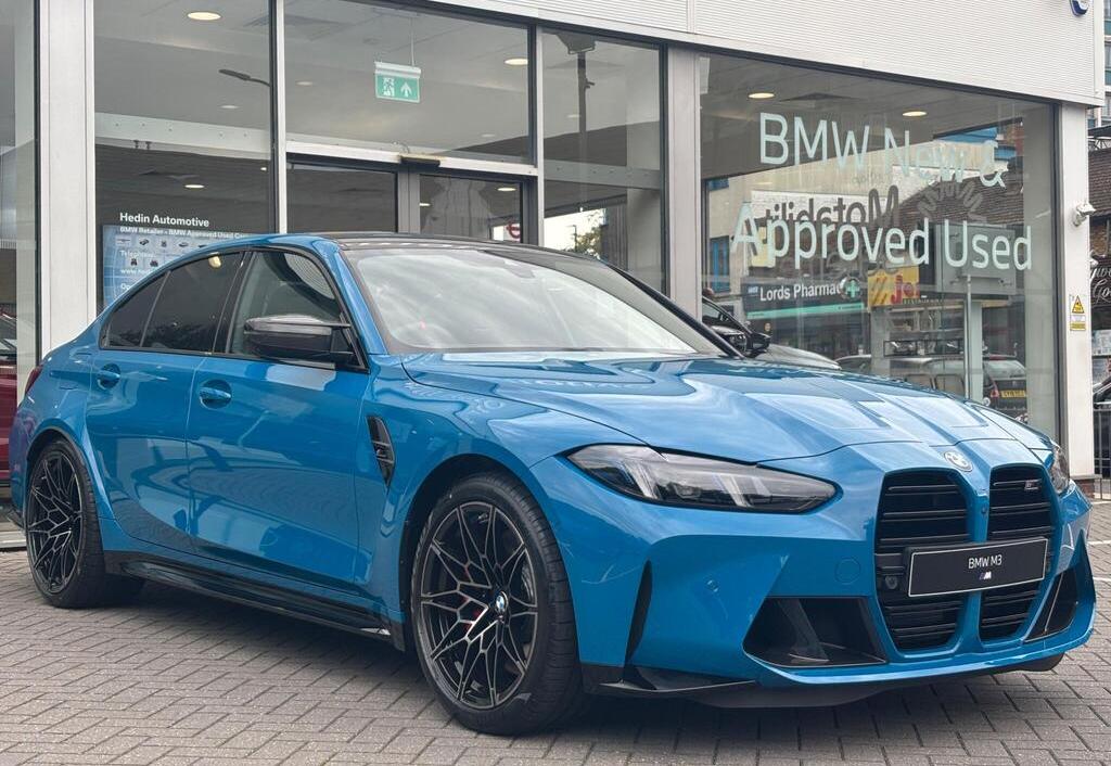 BMW M3 3.0 BiTurbo Competition Steptronic M xDrive на 19-дюймовых/20-дюймовых двухцветных черных легкосплавных дисках M с двойными спицами, пакет ULTIMATE, солнцезащитное остекление, тормоза M с красными суппортами, электрическая крышка багажника, карбоновый пакет экстерьера M, фары BMW Individual Shadow Line, круиз-контроль, профессиональная приборная панель Live Cockpit с проекционным дисплеем, адаптивная подвеска M, M Drive Professional, беспроводная зарядка, система комфортного доступа, система Active Guard, дифференциал M, адаптивные светодиодные фары, система помощи водителю, система помощи при дальнем свете, система помощи при парковке Parking Assistant Plus, потолок антрацитового цвета, электрические передние сиденья с памятью для водителя, расширенное отделение для хранения вещей, передние сиденья с подогревом, передняя поясничная поддержка, гальваническое управление, акустическая система Harmon Kardon Surround Sound, спортивные ремни безопасности M, задние складывающиеся подголовники, подогрев рулевого колеса.