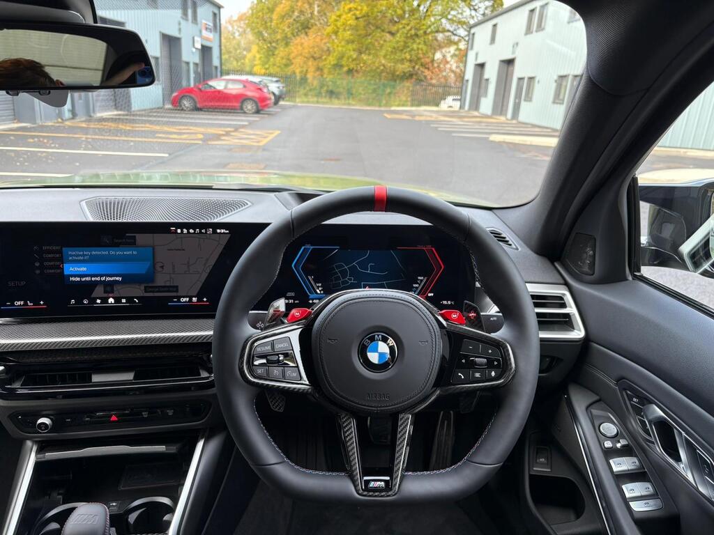 BMW M3 3.0 BiTurbo Competition Steptronic M xDrive на 19-дюймовых передних - 20-дюймовых задних легкосплавных дисках M Double Spoke - 826 - кованые - черный цвет Jet Black с разноразмерными шинами, автоматический двухзонный кондиционер, электрические сиденья с памятью, подогрев передних сидений, рулевое колесо M, многофункциональное рулевое колесо, кнопка запуска/остановки двигателя, круиз-контроль с функцией торможения, переключатель режимов движения, парковочный ассистент, индикатор Runflat, индикатор точки переключения передач, аудиосистема Harman Kardon Surround Audio.