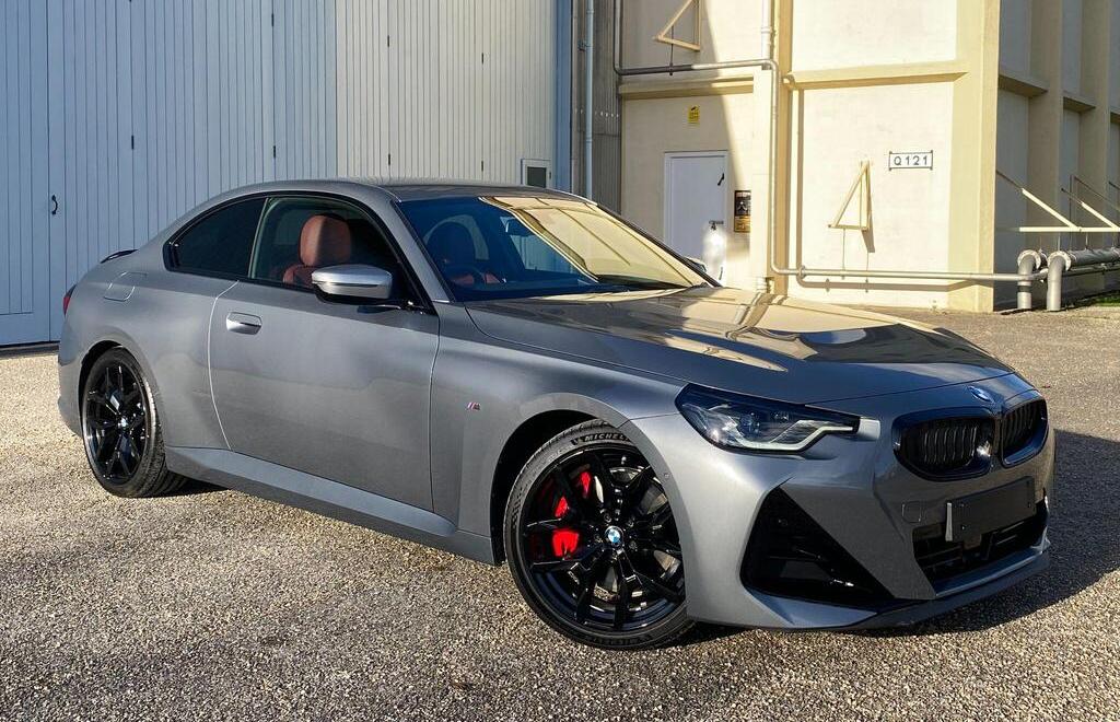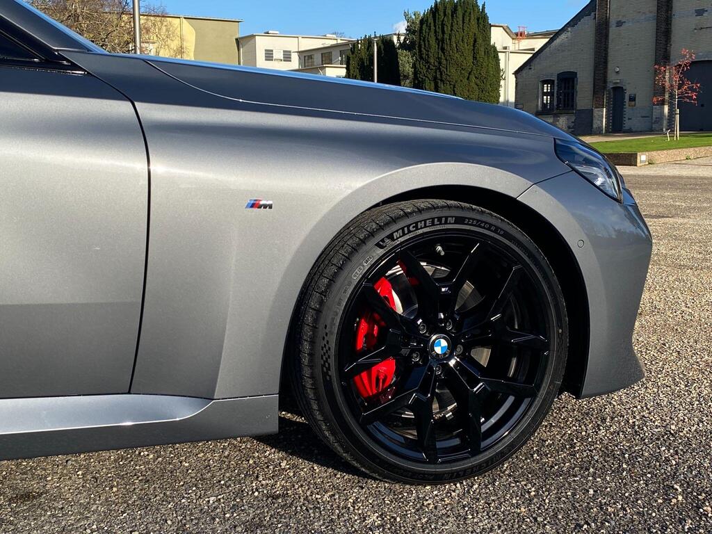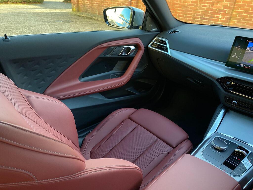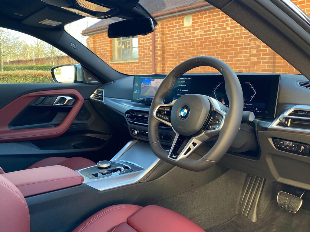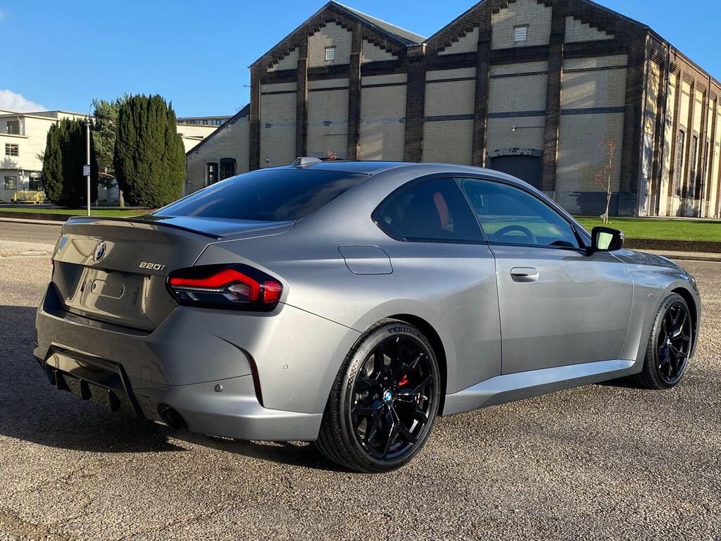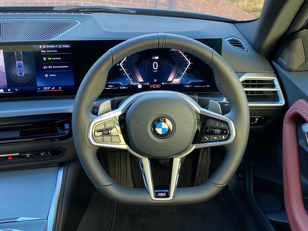 BMW 2 Series 2.0 220i M Sport на 19-дюймовых легкосплавных дисках M Light Double Spoke Style 995 — M Jet Black с разноразмерными шинами, пакет M Sport, кожаный руль M Sport, передние сиденья с подогревом, информационно-развлекательная система, круиз-контроль с функцией торможения. Система контроля давления в шинах — показывает потерю давления в шинах путем измерения скорости вращения колес, парковочный ассистент, система управления производительностью, аудиосистема Harman Kardon Surround.