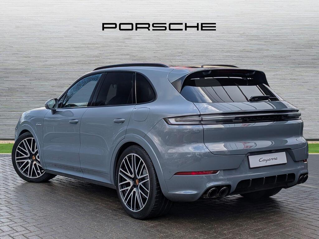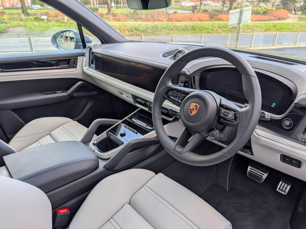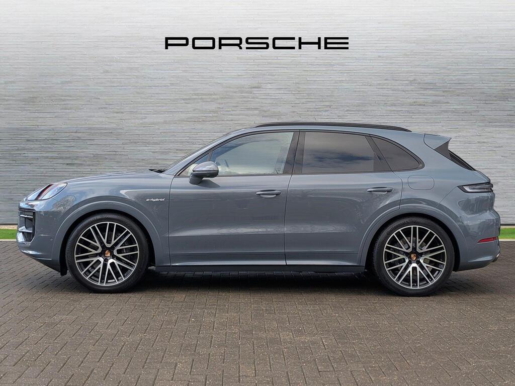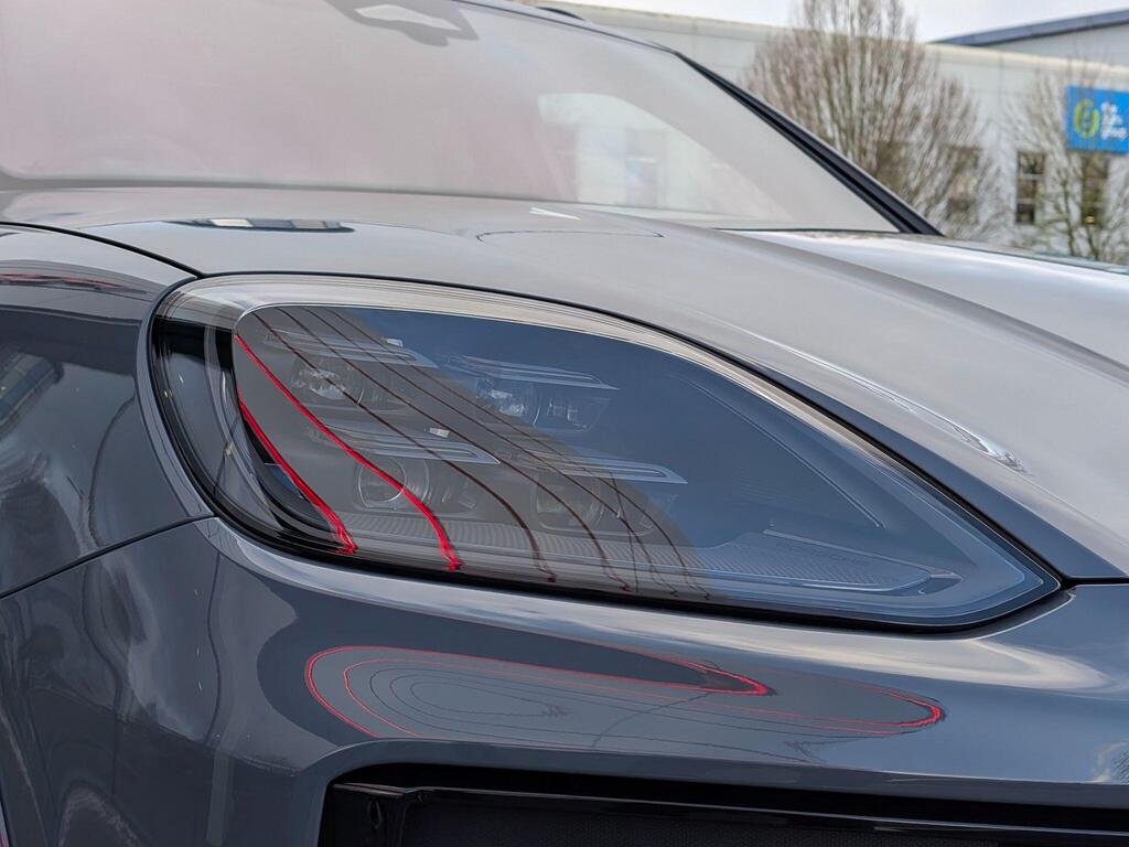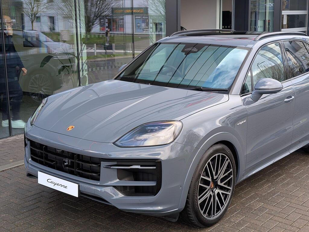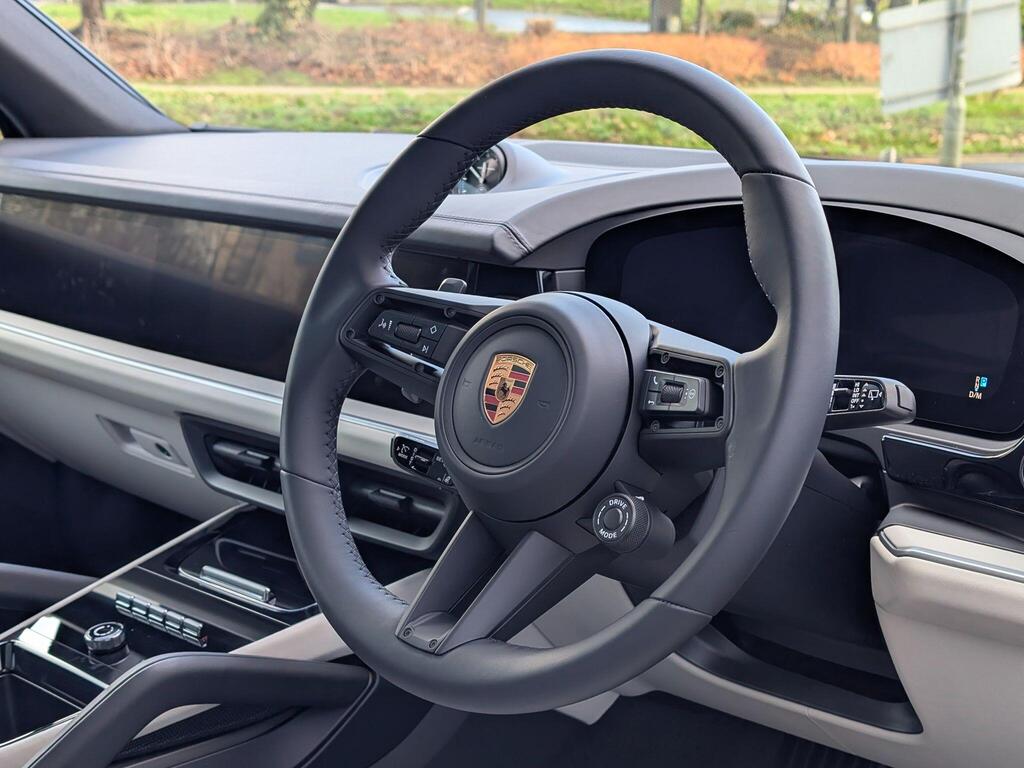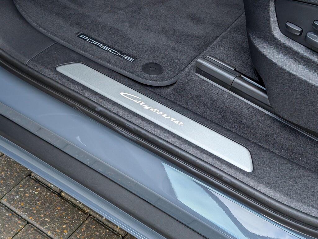 Porsche Cayenne 3.0 V6 E-Hybrid 25.9kWh Black Edition TiptronicS Panoramic Sunroof на 22-дюймовых дисках 911 Turbo Design с расширителями колесных арок в цвет кузова, адаптивные спортивные сиденья спереди (18-позиционные, с электроприводом), проекционный дисплей, подогрев сидений (задние), спортивный руль GT с подогревом, подогрев передних сидений, доводчики дверей, двухзонный автоматический климат-контроль с предварительной настройкой для парковки, адаптивный круиз-контроль, система распознавания водителя, система помощи при смене полосы движения, система помощи при парковке ParkAssist с круговым обзором, система помощи при парковке с автоматическим управлением, система кругового обзора с активной поддержкой парковки, система распознавания дорожных знаков, аудиосистема BOSE Surround Sound, система контроля качества воздуха.