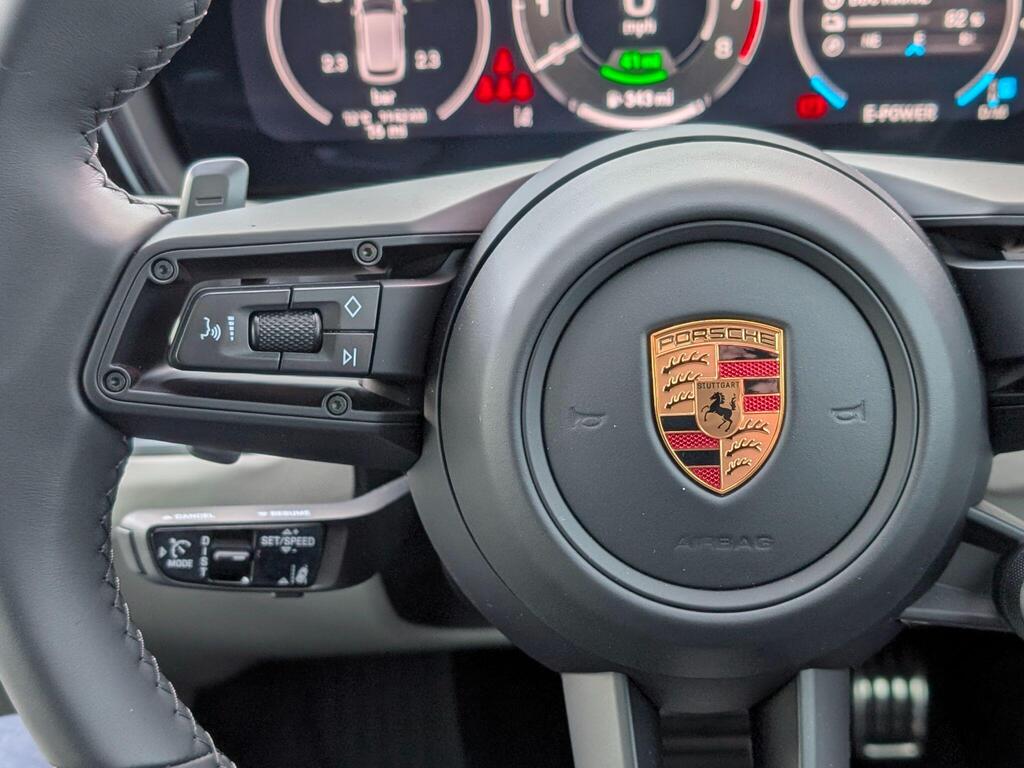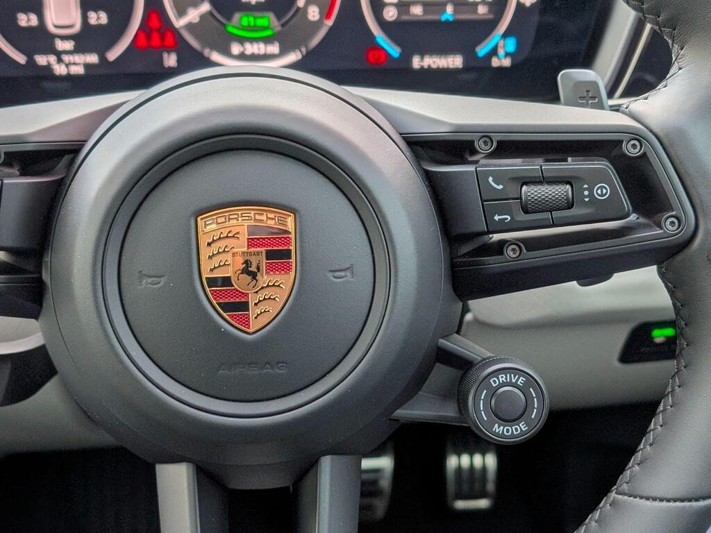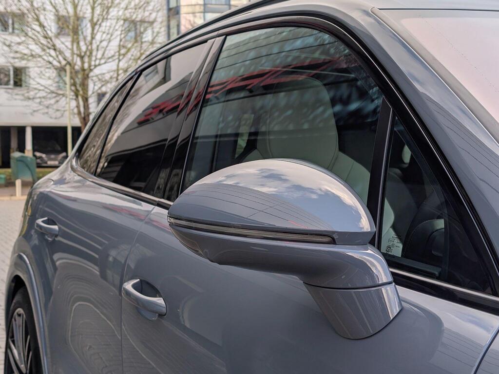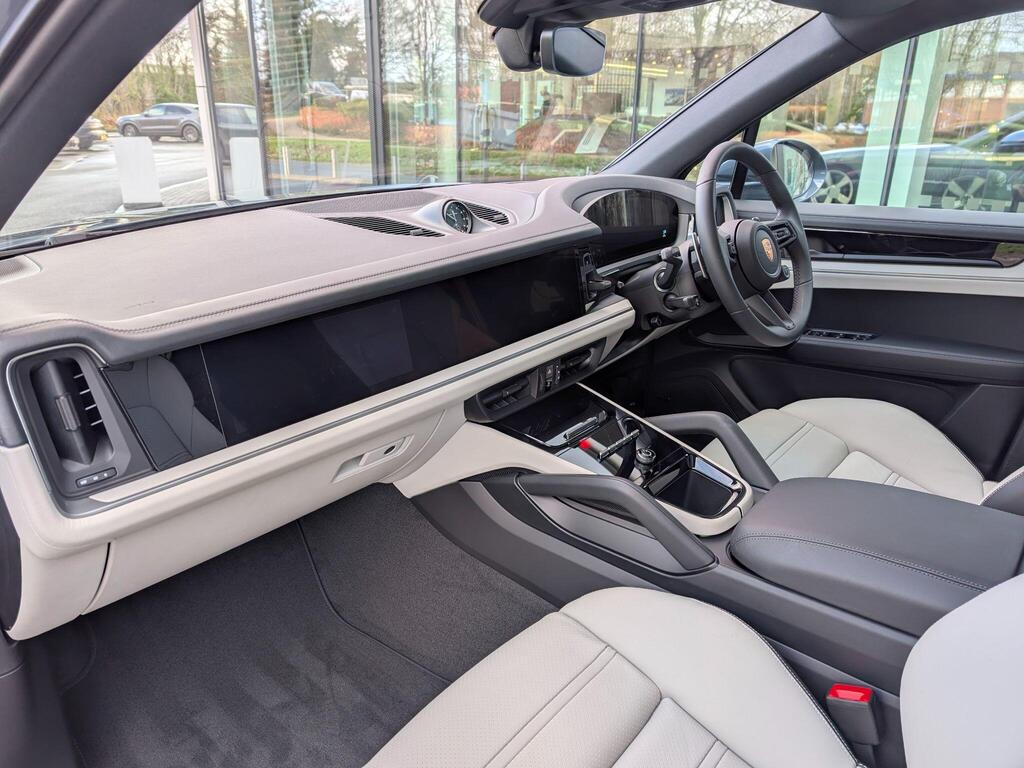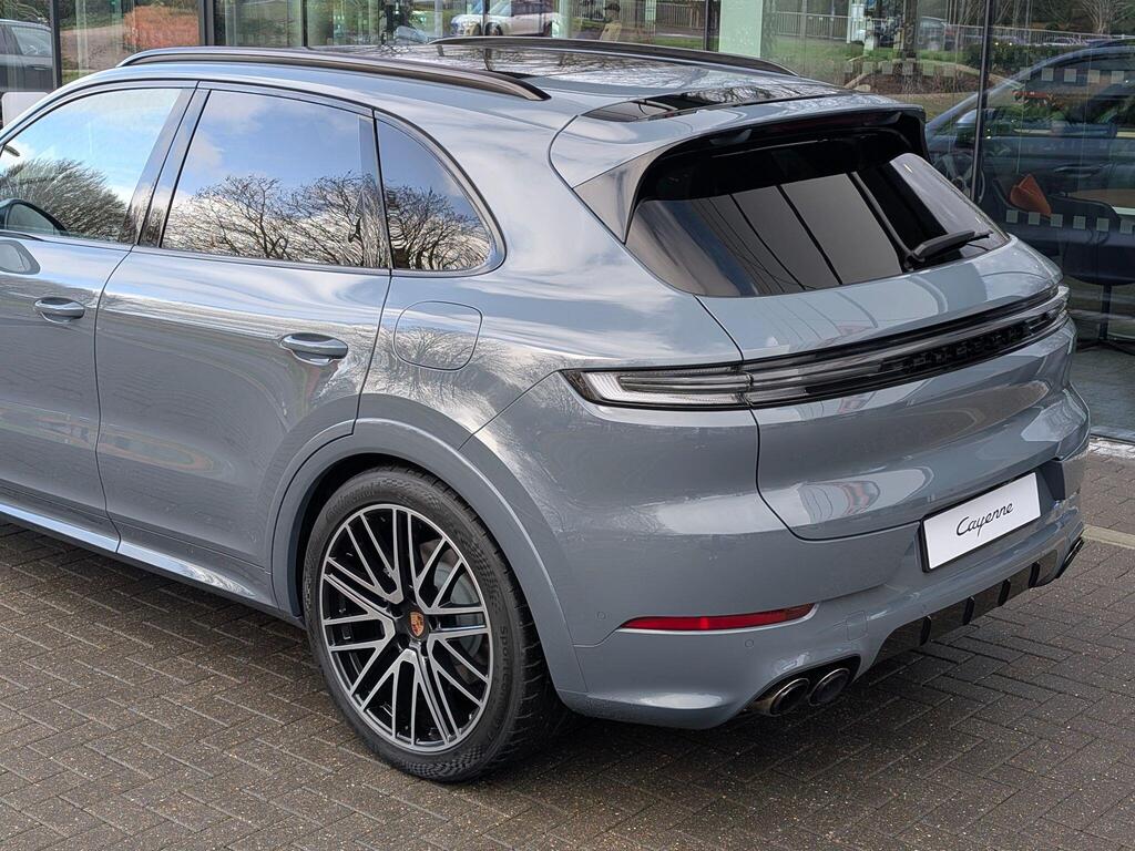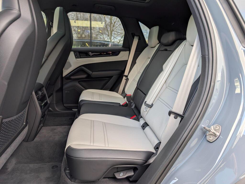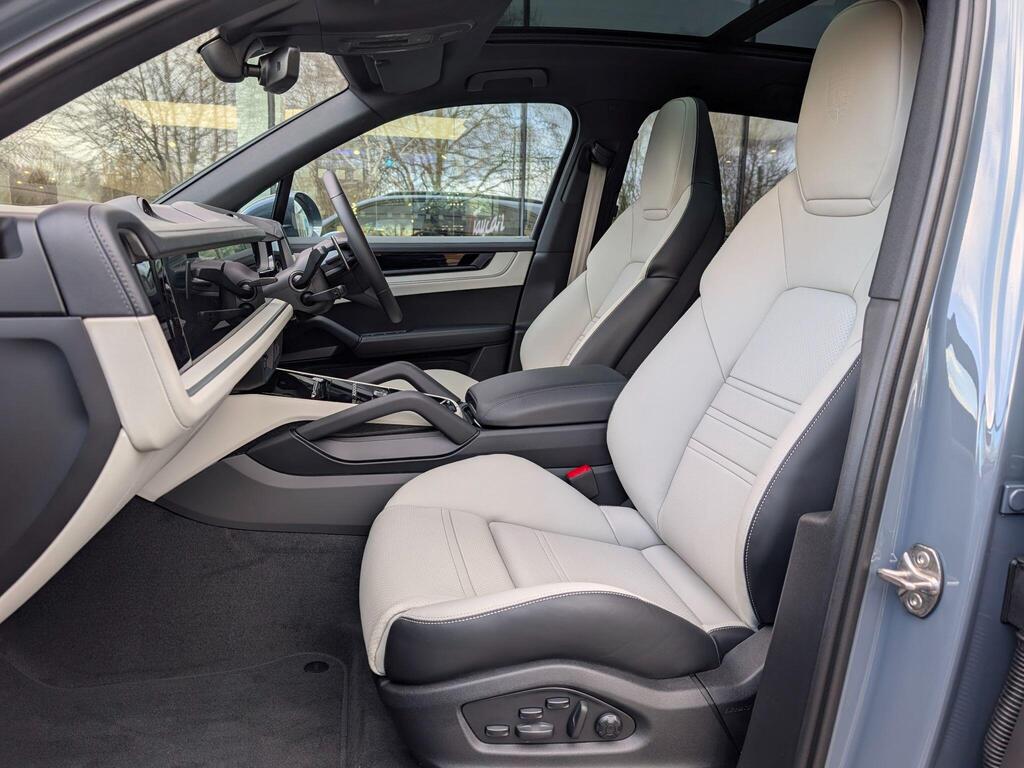 Porsche Cayenne 3.0 V6 E-Hybrid 25.9kWh Black Edition TiptronicS Panoramic Sunroof на 22-дюймовых дисках 911 Turbo Design с расширителями колесных арок в цвет кузова, адаптивные спортивные сиденья спереди (18-позиционные, с электроприводом), проекционный дисплей, подогрев сидений (задние), спортивный руль GT с подогревом, подогрев передних сидений, доводчики дверей, двухзонный автоматический климат-контроль с предварительной настройкой для парковки, адаптивный круиз-контроль, система распознавания водителя, система помощи при смене полосы движения, система помощи при парковке ParkAssist с круговым обзором, система помощи при парковке с автоматическим управлением, система кругового обзора с активной поддержкой парковки, система распознавания дорожных знаков, аудиосистема BOSE Surround Sound, система контроля качества воздуха.
