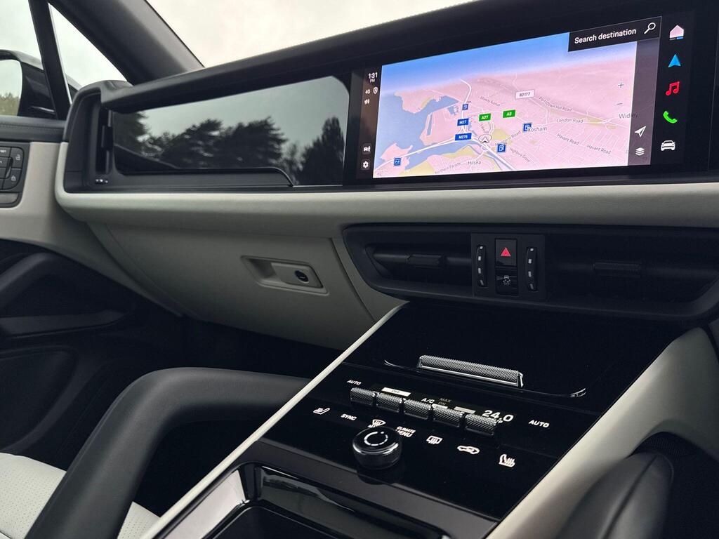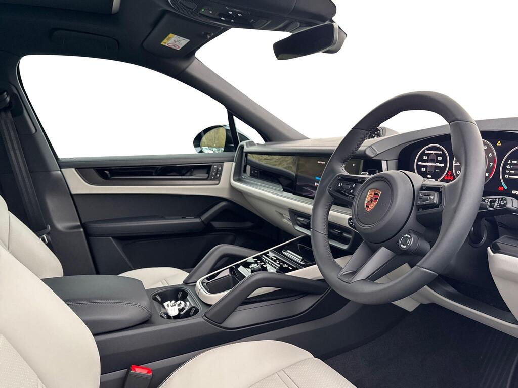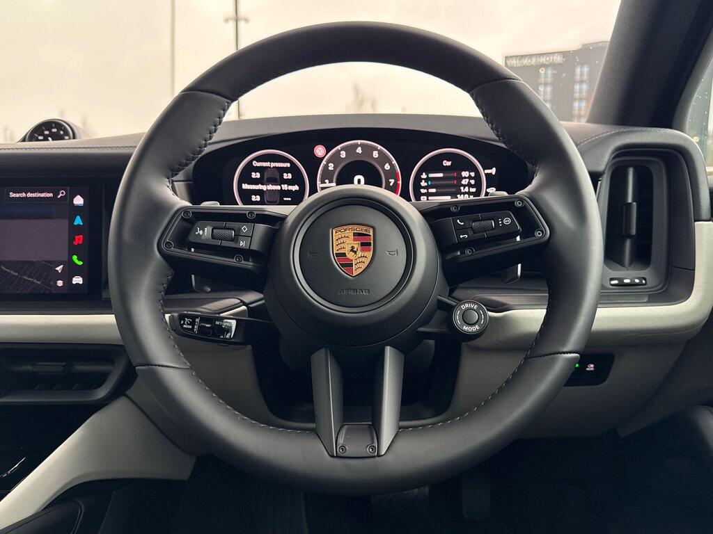 Porsche Cayenne 3.0 V6 E-Hybrid 25.9kWh Black Edition TiptronicS Panoramic Sunroof на 21-дюймовых легкосплавных дисках — дизайн RS Spyder с расширителями колесных арок в цвет кузова, пакет SportDesign Black, спортивный руль GT с подогревом, подогрев передних сидений, доводчики дверей, двухзонный автоматический климат-контроль с предварительной настройкой для парковки, адаптивный круиз-контроль, система контроля осведомленности водителя, система помощи при смене полосы движения, система помощи при парковке с круговым обзором, система помощи при парковке с автоматическим управлением, система кругового обзора с активной поддержкой парковки, система распознавания дорожных знаков, аудиосистема BOSE Surround Sound.