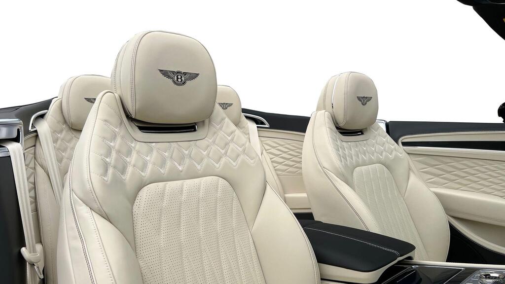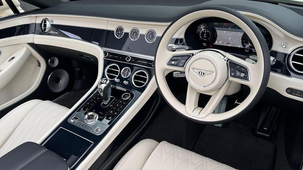 Bentley Continental GTC V8 4.0 Hybrid Azure 2dr Auto Blackline Spec на 22-дюймовых десятиспицевых дисках, окрашенные в черный цвет, комплектация Touring, вращающийся дисплей Bentley, аудиосистема Bang & Olufsen для Bentley, адаптивный круиз-контроль с системой предупреждения о выезде из полосы движения, комплектация Azure, проекционный дисплей, система ночного видения, камера кругового обзора, двухцветная отделка – рояльный лак поверх черного цвета Grand Black, подогрев рулевого колеса, комфортные передние сиденья, коврики с глубоким ворсом спереди, передние сиденья с функцией Wellness, подогрев шеи, ветрозащитный экран, бесконтактное открывание багажника, индуктивное зарядное устройство для телефона, бесключевой доступ.