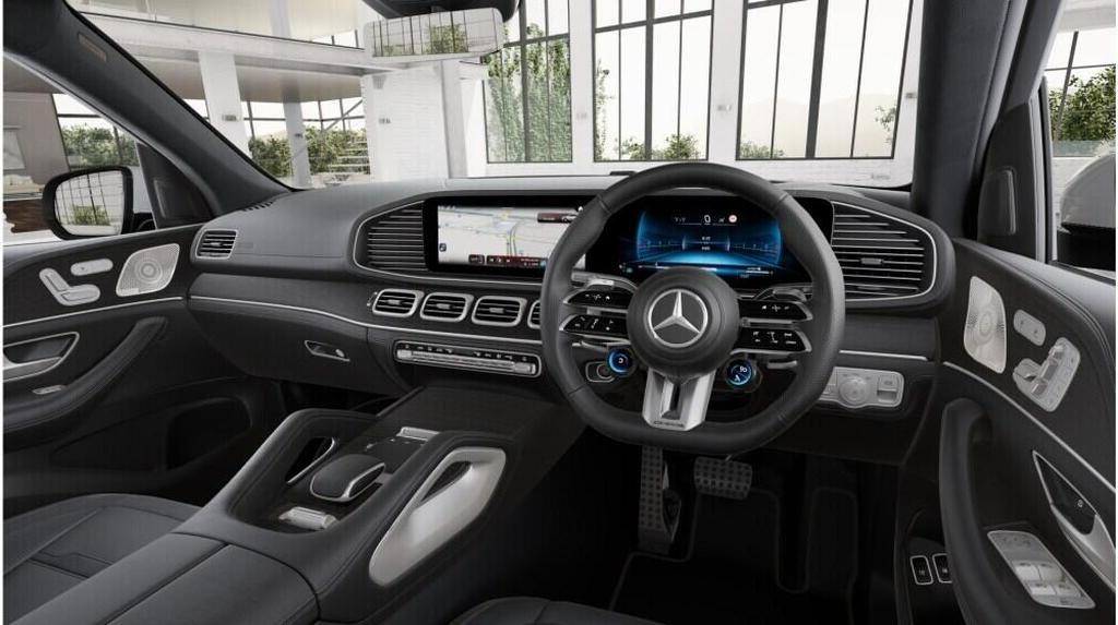 Mercedes-Benz GLE 3.0 GLE53 31kWh AMG Premium SpdS TCT 4MATIC+ на 21-дюймовых легкосплавных дисках AMG с пятью двойными спицами, камера кругового обзора 360°, выхлопная система AMG Performance с возможностью переключения, рулевое колесо AMG Performance с отделкой из кожи наппа, система активного торможения, система активного удержания полосы движения, система активной парковки с PARKTRONIC, адаптивная система управления дальним светом Plus, система контроля слепых зон, аудиосистема Burmester с объемным звучанием, навигационная система MBUX Premium.