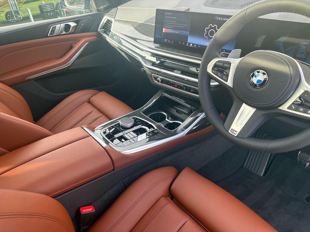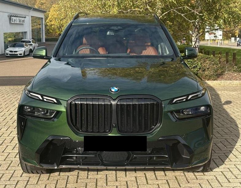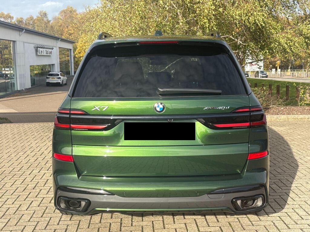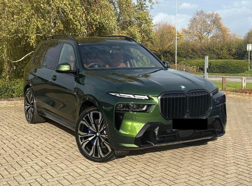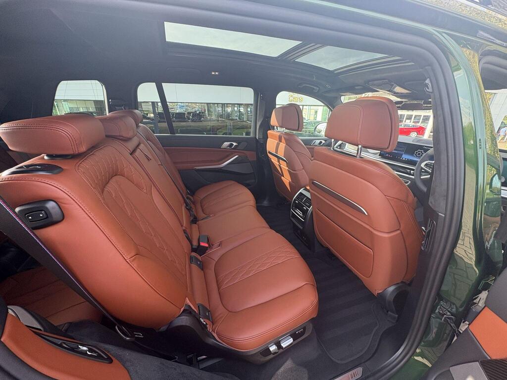 BMW X7 3.0 40d MHT M Sport Auto xDrive Panoramic Sunroof на 23-дюймовых легкосплавных дисках с индивидуальными V-образными спицами в двухцветном исполнении, солнцезащитные стекла, автоматический кондиционер с четырехзонным управлением, система помощи водителю Comfort Attentiveness Assistant, сервисное обслуживание на основе условий эксплуатации, круиз-контроль, переключатель режимов движения, встроенное руководство пользователя, пакет помощи при парковке Park Assistant ProPack, подогрев передних сидений, пакет M Sport Pro Pack, доводчики дверей, аудиосистема Harman Kardon Surround Sound.