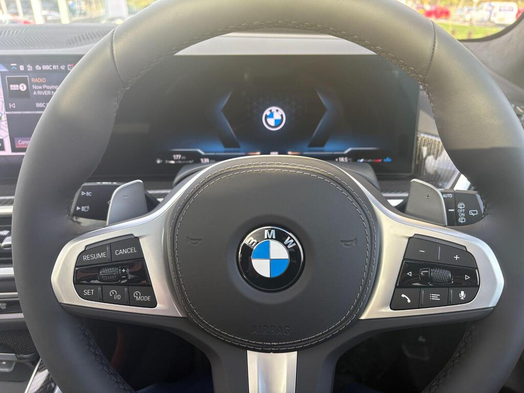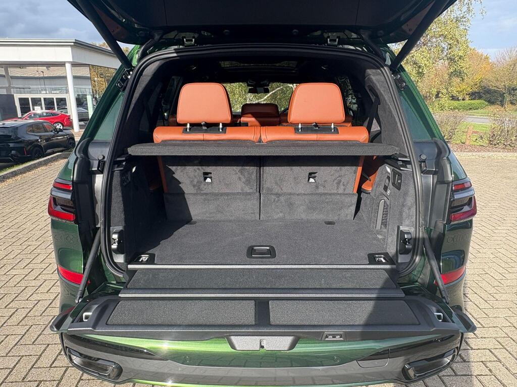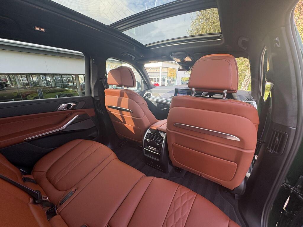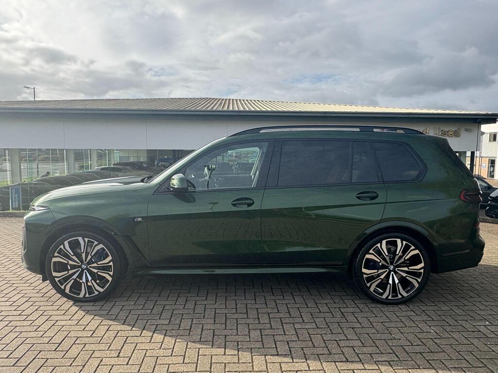 BMW X7 3.0 40d MHT M Sport Auto xDrive Panoramic Sunroof на 23-дюймовых легкосплавных дисках с индивидуальными V-образными спицами в двухцветном исполнении, солнцезащитные стекла, автоматический кондиционер с четырехзонным управлением, система помощи водителю Comfort Attentiveness Assistant, сервисное обслуживание на основе условий эксплуатации, круиз-контроль, переключатель режимов движения, встроенное руководство пользователя, пакет помощи при парковке Park Assistant ProPack, подогрев передних сидений, пакет M Sport Pro Pack, доводчики дверей, аудиосистема Harman Kardon Surround Sound.