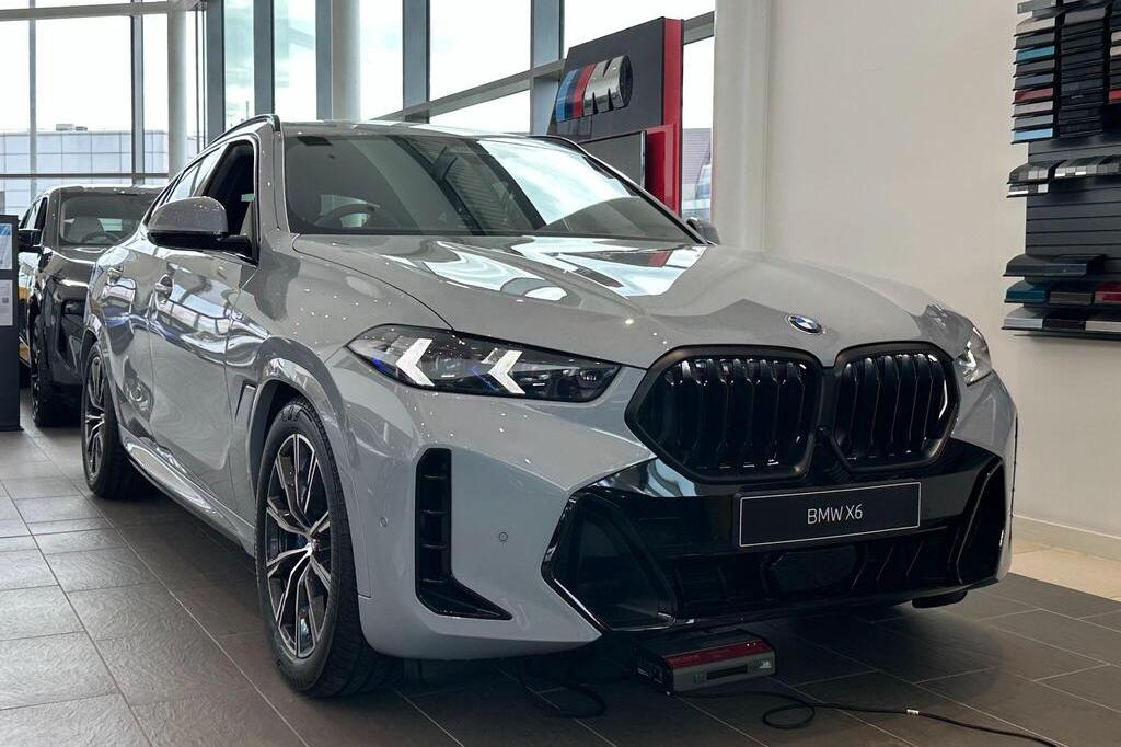 BMW X6 3.0 40d MHT M Sport Auto xDrive Panoramic Sunroof на 20-дюймовых легкосплавных дисках M light Star-Spoke Style 740 M Bicolour с разноразмерными и шинами Run Flat, спортивные тормоза M с синими суппортами, спортивные передние сиденья с подогревом, кожаный руль M Sport, система помощи водителю, круиз-контроль с функцией торможения, переключатель режимов движения, парковочный ассистент, аудиосистема Harman Kardon Surround.