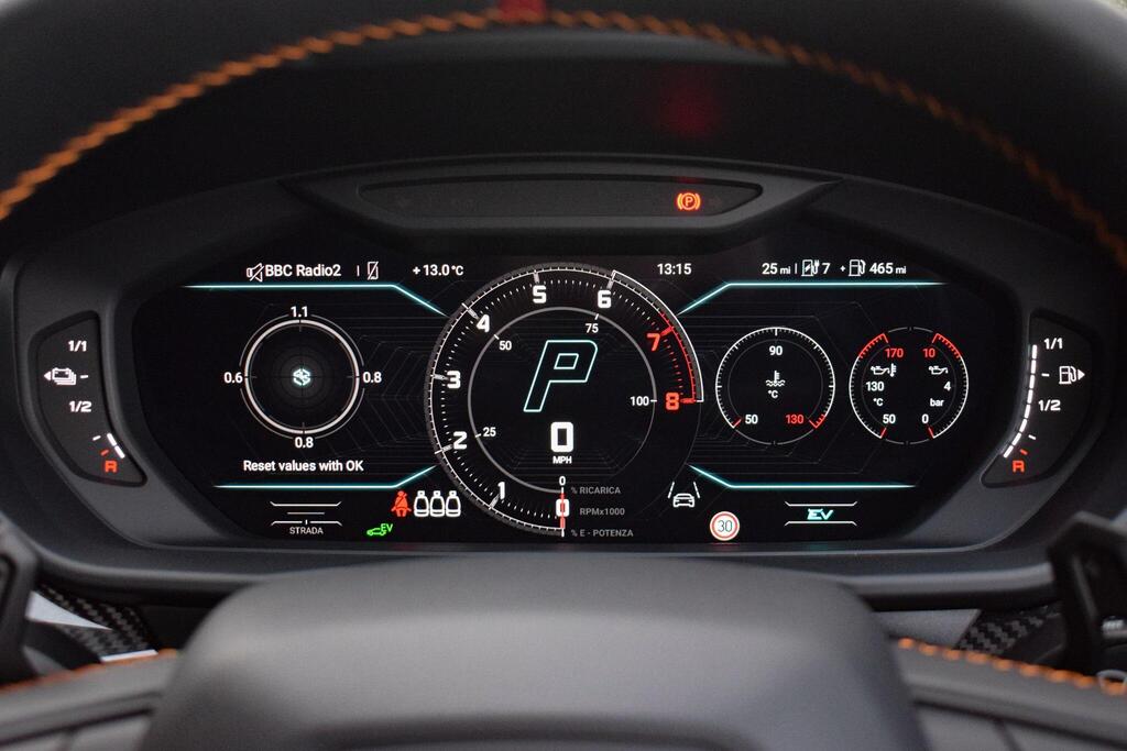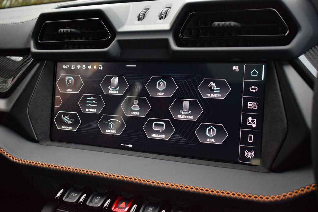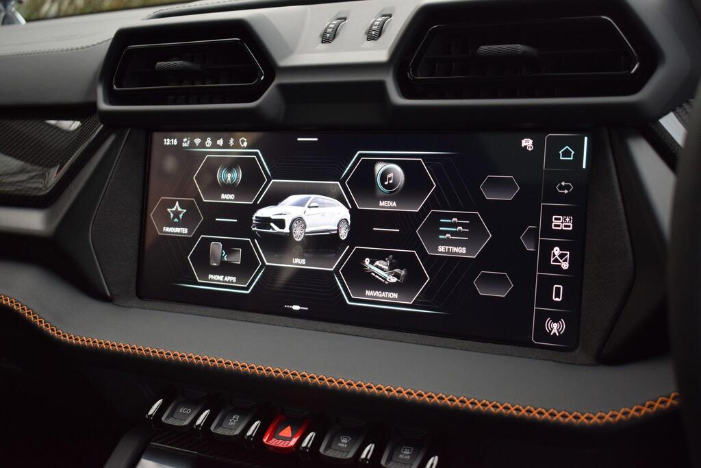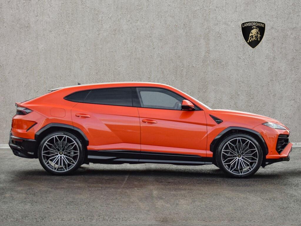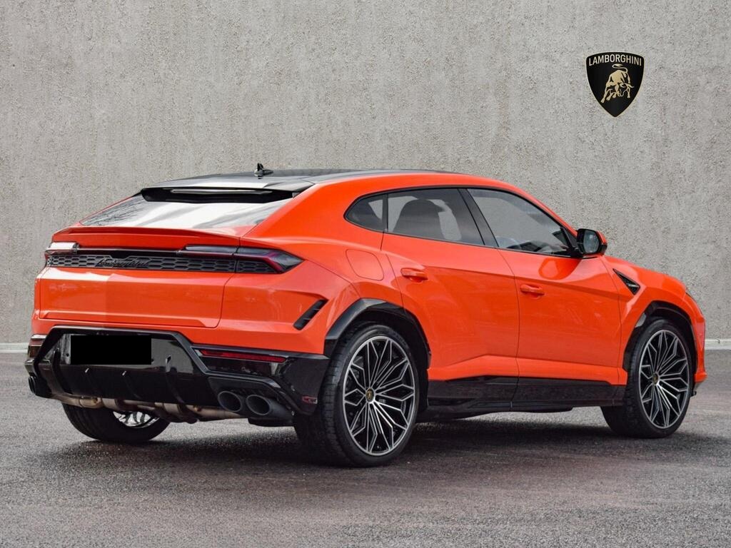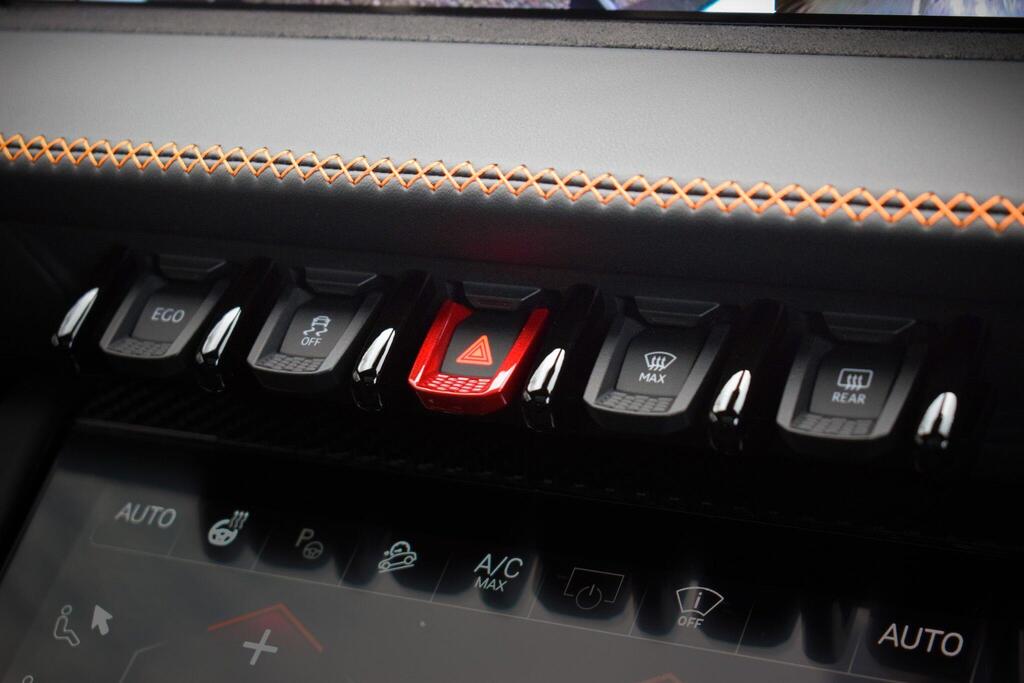 Lamborghini Urus 4.0 V8 BiTurbo 25.9kWh SE Panoramic Sunroof на 23-дюймовых легкосплавных дисках Ad Personam - глянцевые черные диски Taigete с алмазной отделкой, аудиосистема Bang and Olufsen Advanced 3D, матовые черные выхлопные патрубки, черные тормозные суппорты, пакет помощи при парковке с дистанционным управлением, пакет подсветки салона, аудиосистема Bang and Olufsen Advanced 3D. Электрические, вентилируемые и массажные передние сиденья, темный пакет отделки салона, кожаный руль с подогревом и X-образной строчкой, внутренняя отделка крестиком цвета Arancio Leonis, подогрев задних сидений, черные анодированные алюминиевые декоративные вставки, глянцевый черный логотип Lamborghini сзади, Lamborghini ANIMA, встроенные форсунки омывателя.