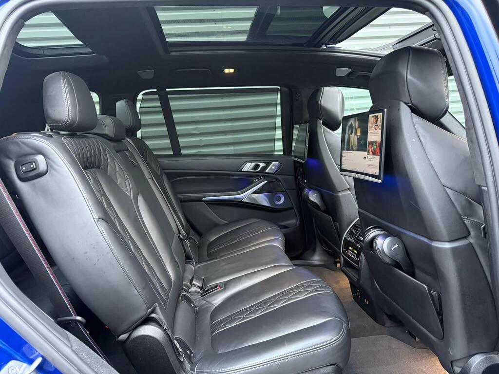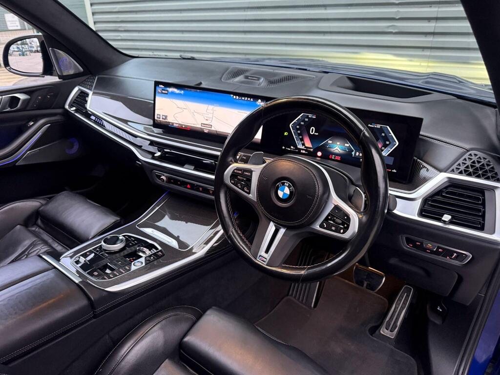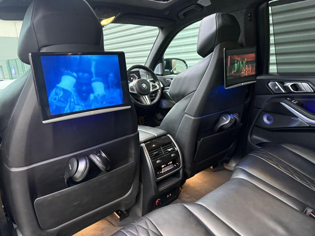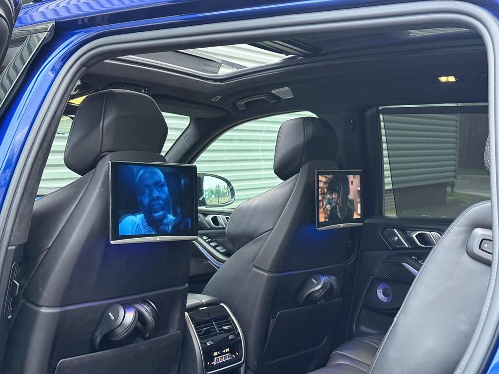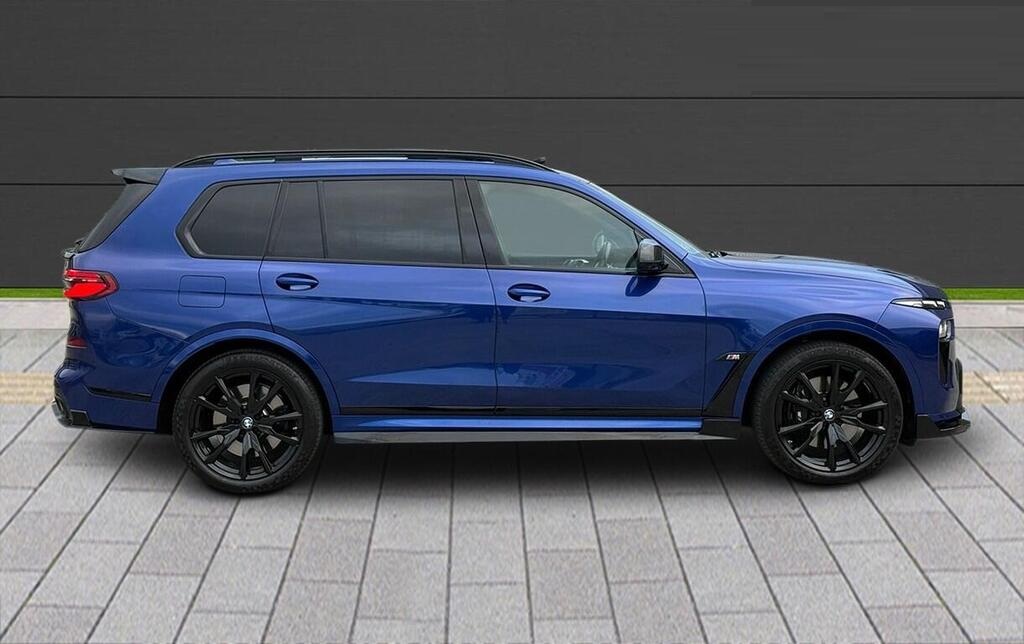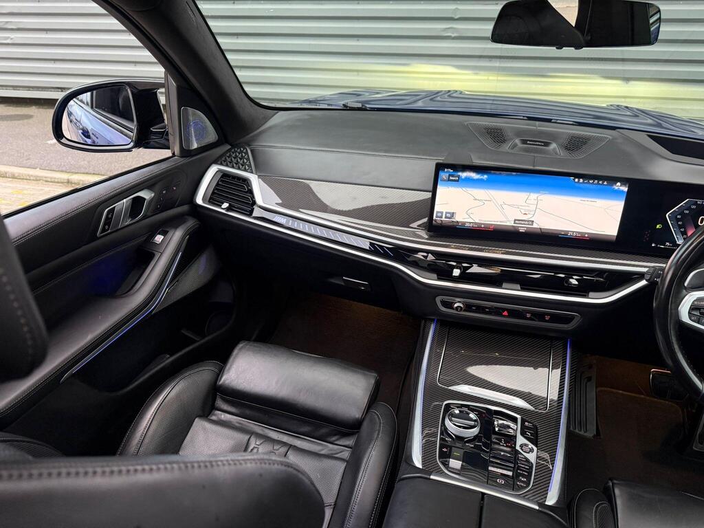 BMW X7 4.4 M60i V8 Auto xDrive Panoramic Sunroof на 22-дюймовых легкосплавных дисках M с двойными спицами, двухцветные, стиль 913, передние сиденья с массажем: многоконтурные сиденья с различными программами массажа для повышения комфорта в длительных поездках, подстаканники с подогревом и охлаждением: термоэлектрические подстаканники, которые могут поддерживать напитки теплыми или холодными, развлекательная система для задних пассажиров (очень редкая дополнительная опция), аудиосистема Bowers & Wilkins Diamond Surround Sound: высококачественное 3D-звучание с большим количеством динамиков и мощным усилением, пятизонный автоматический кондиционер: позволяет индивидуально регулировать температуру для пассажиров всех трех рядов, система подогрева: подогревает передние и задние сиденья, рулевое колесо и передние подлокотники для дополнительного тепла, двери с доводчиком: небольшие электродвигатели плавно закрывают двери при легком закрывании, стеклянные элементы управления: изготовленные вручную, алмазно-ограненные стеклянные украшения на рычаге переключения передач, контроллере iDrive и кнопке запуска/остановки, управление жестами: позволяет управлять некоторыми функциями информационно-развлекательной системы (например, регулировкой громкости) с помощью жестов рук, Driving Assistant Professional: набор передовых систем помощи водителю, включая активный круиз-контроль Система управления с функцией Stop & Go, ассистент рулевого управления и контроля полосы движения, а также ассистент движения по автомагистрали для полуавтоматического вождения на определенных дорогах, ассистент парковки Professional: помогает при параллельной и перпендикулярной парковке, включая ассистент движения задним ходом и удаленный 3D-просмотр, доступный через приложение My BMW, интегрированное активное рулевое управление: также известное как подруливание задних колес, эта функция улучшает маневренность на низких скоростях и устойчивость на высоких скоростях, подвеска Executive Drive: адаптивная система, которая работает со стандартной пневматической подвеской, обеспечивая повышенный комфорт езды и устойчивость управления.