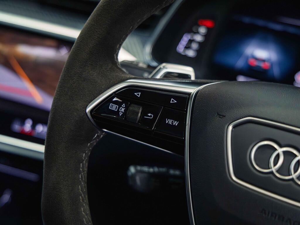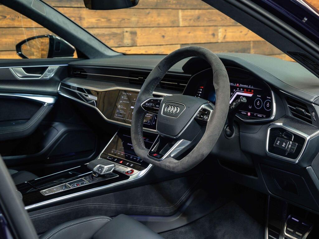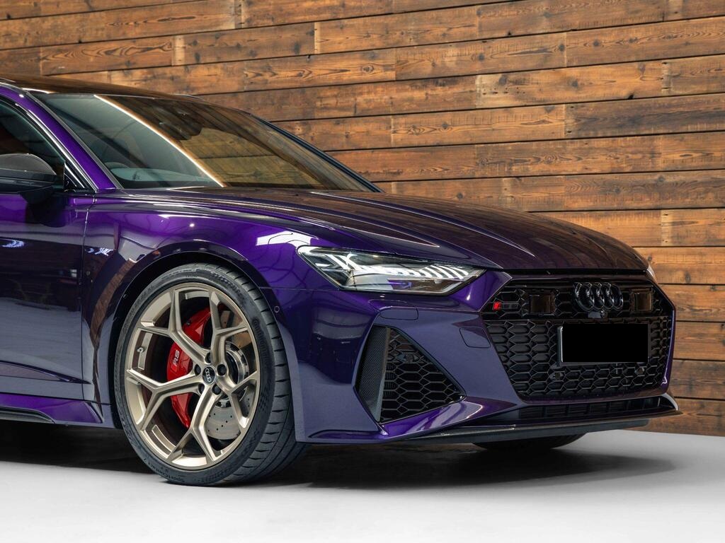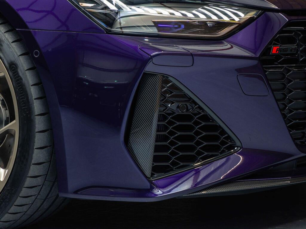 Audi RS6 Avant 4.0 TFSI V8 Performance Carbon Vorsprung Tiptronic quattro Panoramic Sunroof на 22-дюймовых легкосплавных дисках - 5 Y-образных спиц - матовый неодимовый золотистый цвет, черные рейлинги на крыше, матовый пакет отделки Carbon Black, спортивная выхлопная система RS, Audi Virtual Cockpit Plus с дизайном RS Specific и 12,3-дюймовым дисплеем, подогрев передних и задних сидений, бесключевой доступ, многофункциональный руль RS с плоским основанием из алькантары и алюминиевыми подрулевыми переключателями, вентиляция передних сидений, кожа Valcona с перфорированным сотовым рисунком RS и надписью RS - спортивные сиденья - черные с серой строчкой Rock Grey, Audi Drive Select с двумя настраиваемыми режимами RS, система распознавания дорожных знаков на основе камеры, система прямого контроля давления в шинах, проекционный дисплей, система предупреждения о выезде из полосы движения, система ночного видения, пакет помощи при парковке с функцией Park Assist Plus, камеры кругового обзора, система голосового управления, премиальная аудиосистема Bang and Olufsen с 3D-звуком.