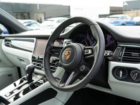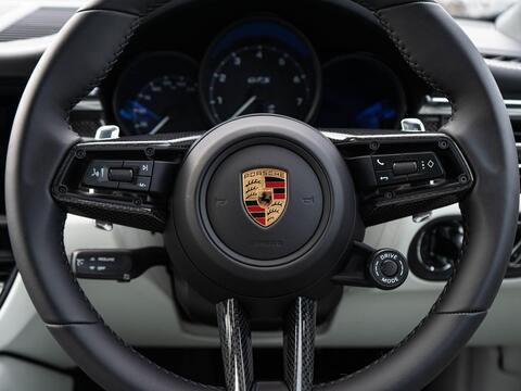 2026 Porsche Macan 2.9T V6 GTS PDK 4WD Panoramic Sunroof на 21-дюймовых легкосплавных дисках - эксклюзивный дизайн Sport Jet Black Metallic, тонированные стекла, наружные зеркала SportDesign, переключаемая спортивная выхлопная система, Apple CarPlay с голосовым управлением Siri, аудиосистема BOSE Surround Sound, аналоговые часы на приборной панели, система помощи при смене полосы движения - мониторинг слепых зон, система помощи при парковке с автоматическим управлением, система кругового обзора, адаптивные спортивные сиденья спереди - 18-позиционная электрическая регулировка, трехзонный климат-контроль, многофункциональный спортивный руль GT с подогревом, кожаная отделка с карбоновыми вставками, пакет отделки салона - карбон, ионизатор, спортивные сиденья GTS - передние