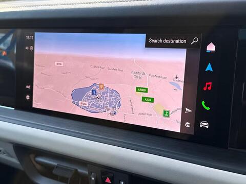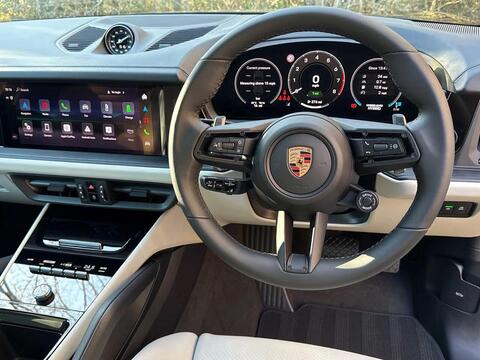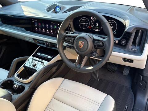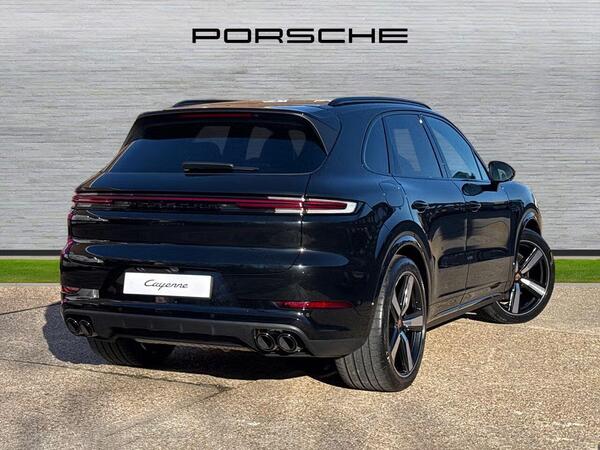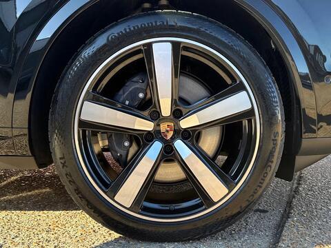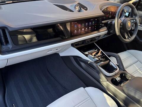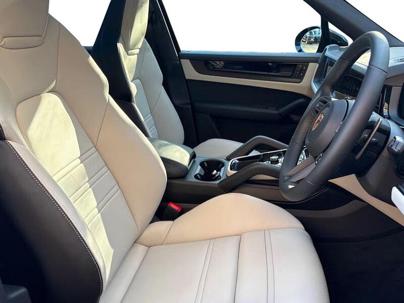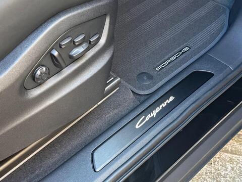 Porsche Cayenne 3.0 V6 E-Hybrid Tiptronic S Panoramic Sunroof на 21-дюймовых легкосплавных дисках - Cayenne Exclusive Design в цвете Chromite Black Metallic, тонированные стекла, адаптивный круиз-контроль, система помощи при смене полосы движения, система помощи при парковке ParkAssist с круговым обзором, система помощи при парковке с автоматическим управлением, система кругового обзора с активной поддержкой парковки, система распознавания дорожных знаков, система контроля давления в шинах (TPM), адаптивные спортивные сиденья спереди с 18-позиционной электрорегулировкой, подсветка салона, спортивный руль GT с подогревом, пакет памяти для водителя и переднего пассажира, доводчики дверей, подогрев передних сидений, двухзонный автоматический климат-контроль с предварительной настройкой на парковку.