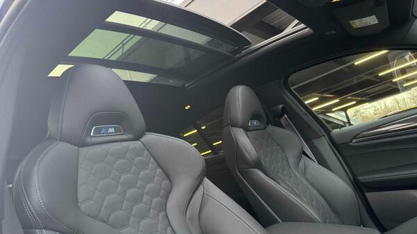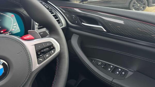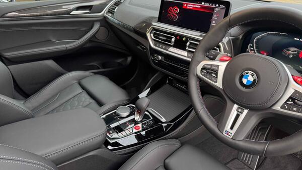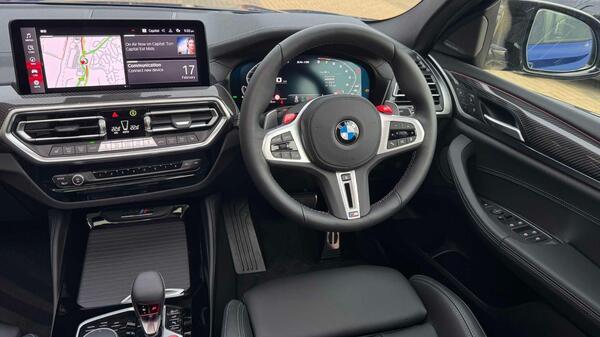 BMW X4 M 3.0i Competition Auto xDrive Panoramic Sunroof на 21-дюймовых легкосплавных дисках M с двойными спицами, двухцветные, Jet Black, обвес M Competition, спортивная выхлопная система M, акустическая система Harman Kardon, пакет BMW Connected Package Professional, система помощи водителю Attentiveness Assistant, круиз-контроль с функцией торможения и ограничения скорости, система контроля дистанции при парковке (PDC) спереди и сзади, система помощи при парковке Parking Assistant Plus, автоматический кондиционер, BMW Live Cockpit Professional, передние спортивные сиденья M Sport, кнопка Start-Stop с функцией бесключевого запуска двигателя Comfort Go и кнопкой автоматического отключения системы Start-Stop, обогрев рулевого колеса.
