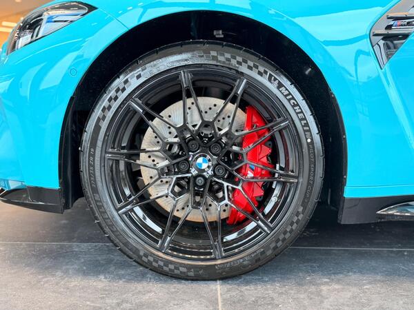 BMW M3 3.0 BiTurbo Competition xDrive Panoramic Sunroof на 19-дюймовых передних - 20-дюймовых задних легкосплавных дисках M Double Spoke - 826 - кованые - двухцветные черные с шинами TRACK, тормоза M с красными суппортами, онлайн-сервисы BMW ConnectedDrive, аудиосистема Harman Kardon Surround, беспроводная зарядная панель, круиз-контроль с функцией торможения, парковочный ассистент, автоматический двухзонный кондиционер, сиденья с электроприводом и памятью, спортивные сиденья M, рулевое колесо M, кнопка запуска/остановки двигателя.
