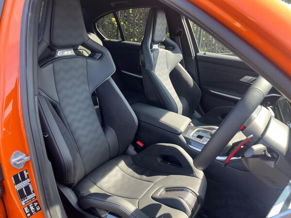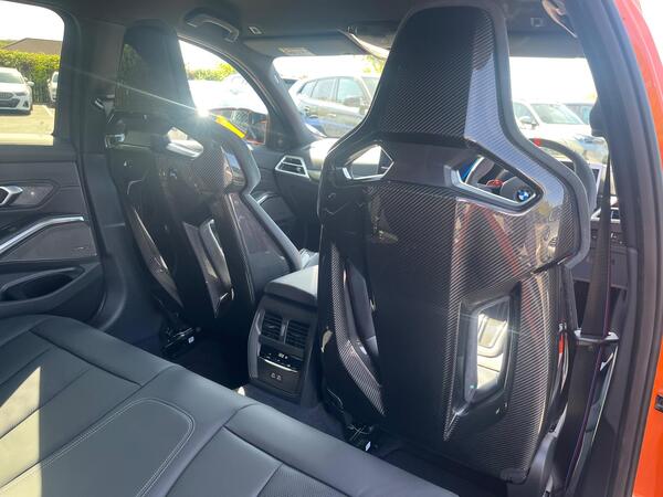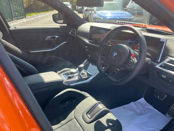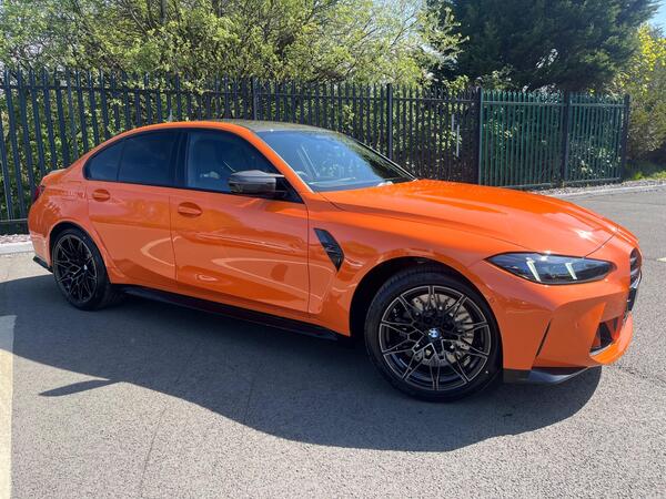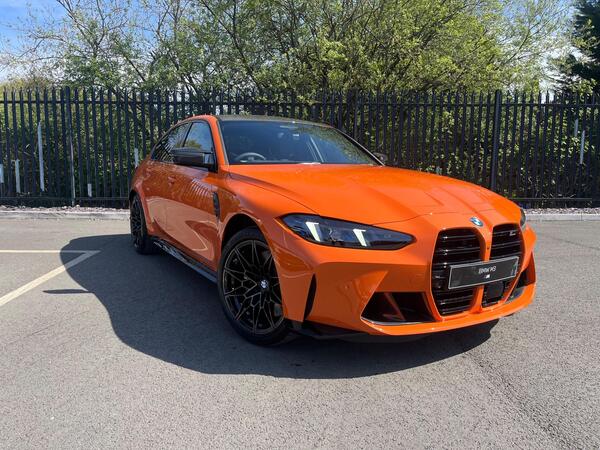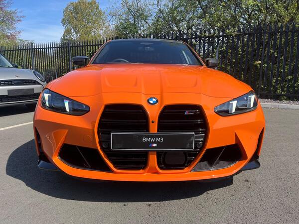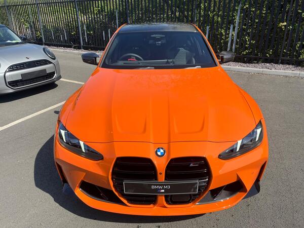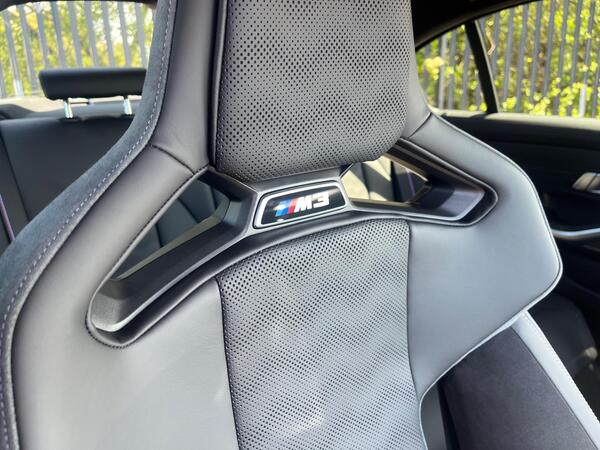 BMW M3 3.0 BiTurbo Competition xDrive на 19-дюймовых передних - 20-дюймовых задних легкосплавных дисках M Double Spoke - 826 - кованые - Jet Black с разноразмерными шинами, карбоновая отделка экстерьера M, карбоновые ковшеобразные сиденья M, карбоновая отделка салона M, онлайн-сервисы BMW ConnectedDrive, видеорегистратор, аудиосистема Harman Kardon Surround, беспроводная зарядная панель, интеграция со смартфоном, круиз-контроль с функцией торможения, парковочный ассистент, автоматический двухзонный кондиционер, BMW Live Cockpit Professional с проекционным дисплеем, электрорегулируемые сиденья с памятью, кнопка запуска/остановки двигателя.