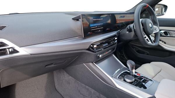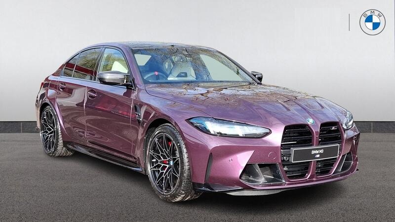 BMW M3 3.0 BiTurbo Competition xDrive на 19-дюймовых передних - 20-дюймовых задних легкосплавных дисках M Double Spoke - 826 - кованые - Jet Black с разноразмерными шинами, карбоновая отделка экстерьера M, карбоновые ковшеобразные сиденья M, карбоновая отделка салона M, онлайн-сервисы BMW ConnectedDrive, видеорегистратор, аудиосистема Hi-Fi, беспроводная зарядная панель, интеграция со смартфоном, круиз-контроль с функцией торможения, парковочный ассистент, автоматический двухзонный кондиционер, электрорегулируемые сиденья с памятью, кнопка запуска/остановки двигателя.