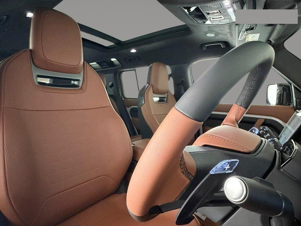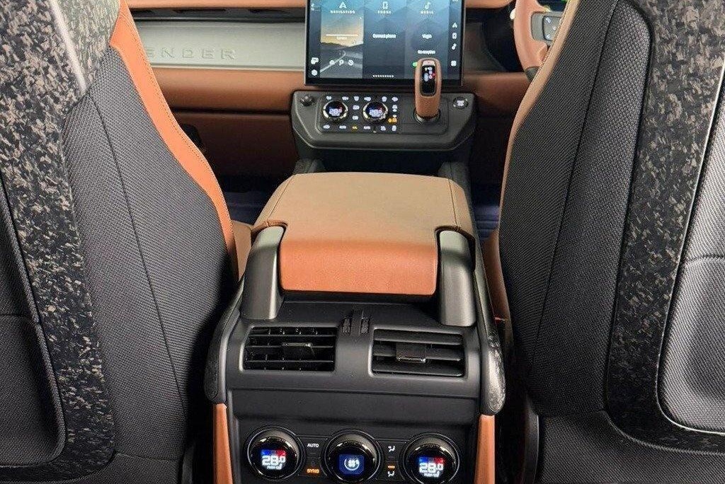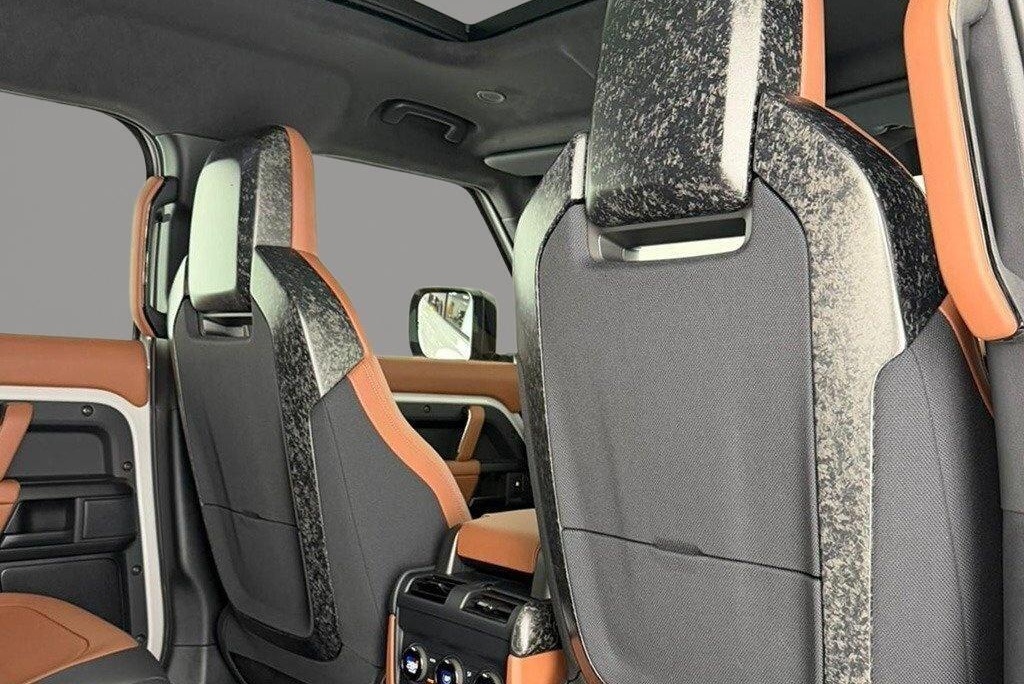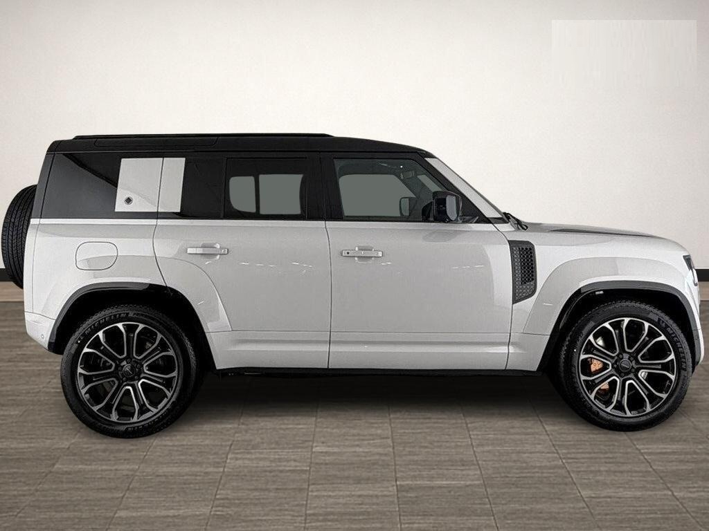 Land Rover Defender 110 4.4 P635 V8 MHEV OCTA Panoramic Sunroof на 22-дюймовых легкосплавных дисках - стиль 7026 - алмазная обработка с глянцевой черной контрастной отделкой, 22-дюймовое полноразмерное запасное колесо, электрически выдвижной фаркоп, тонированные стекла, Android Auto/Apple CarPlay, аудиосистема Meridian Surround Sound, беспроводная зарядка для устройств, система помощи при парковке 360 градусов, 3D-камера кругового обзора, адаптивный круиз-контроль ACC, система контроля слепых зон, индикатор износа тормозных колодок, система контроля внимания водителя, система контроля состояния водителя, проекционный дисплей, система контроля столкновений сзади, система распознавания дорожных знаков и адаптивный ограничитель скорости, 14-позиционные передние сиденья с подогревом и вентиляцией, электроприводом и памятью, датчик качества воздуха, система очистки воздуха в салоне Cabin Air Purification Plus, отделка из рубленого карбона, внутреннее зеркало заднего вида ClearSight, система открывания гаражных ворот HomeLink, подогрев рулевого колеса, трехзонный климат-контроль с функцией охлаждения задних пассажиров.