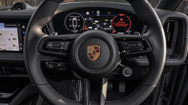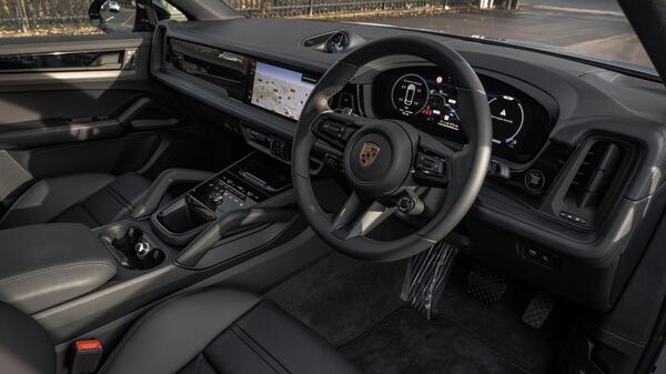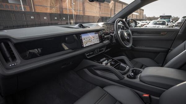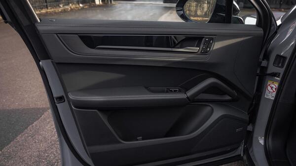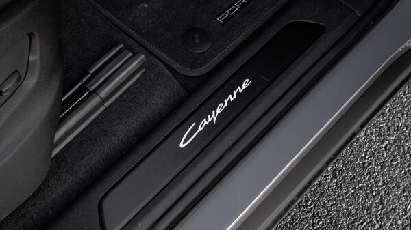Porsche Cayenne 3.0 V6 E-Hybrid 25.9kWh Black Edition Panoramic Sunroof на 21-дюймовых легкосплавных дисках RS Spyder Design с расширителями колесных арок в цвет кузова, тонированные стекла, аудиосистема BOSE Surround Sound, навигационная система повышенной комфортности, отсек для смартфона с беспроводной зарядкой до 15 Вт, адаптивный круиз-контроль, система контроля внимания водителя, система помощи при смене полосы движения, система помощи при парковке ParkAssist с круговым обзором, система помощи при парковке с автоматическим управлением, система кругового обзора с активной поддержкой парковки, распознавание дорожных знаков, электрическая регулировка рулевой колонки, спортивный руль GT с подогревом, пакет памяти для водителя и переднего пассажира, подогрев передних сидений, доводчики дверей, двухзонный автоматический климат-контроль с предварительной настройкой на парковку.