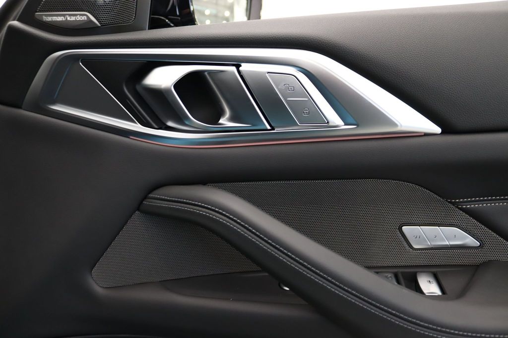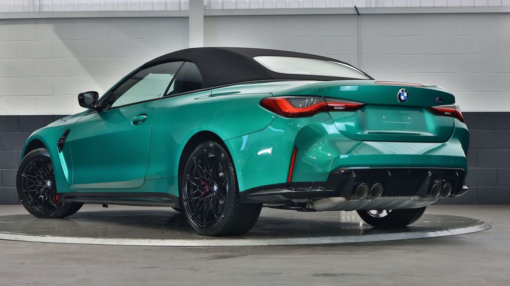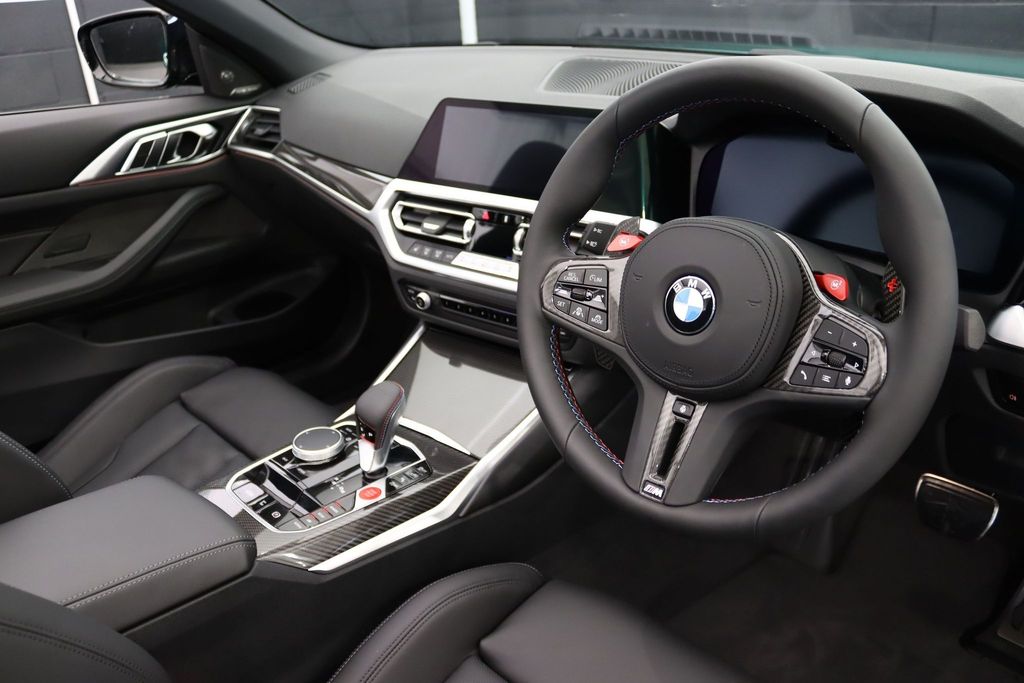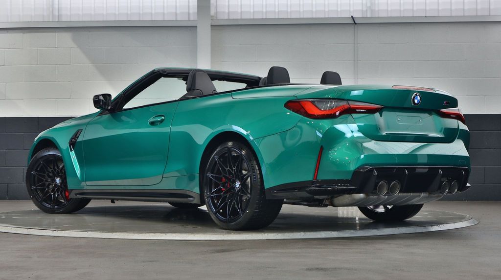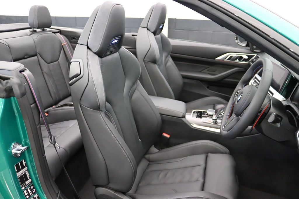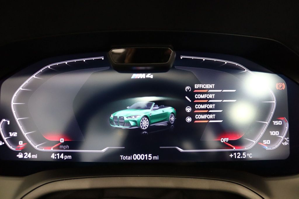 BMW M4 Competition Convertible 3.0 на 19-дюймовых передних и 20-дюймовых задних дисках, двуспицевых, стиль 826 - Forged, цвета Jet Black с разноразмерными шинами. Звуковая система объемного звучания Harman Kardon. Профессиональный помощник вождения. Парковочный ассистент плюс. Круиз-контроль с функцией ограничения скорости. Обогрев руля. Подогрев, поясничная поддержка передних сидений.