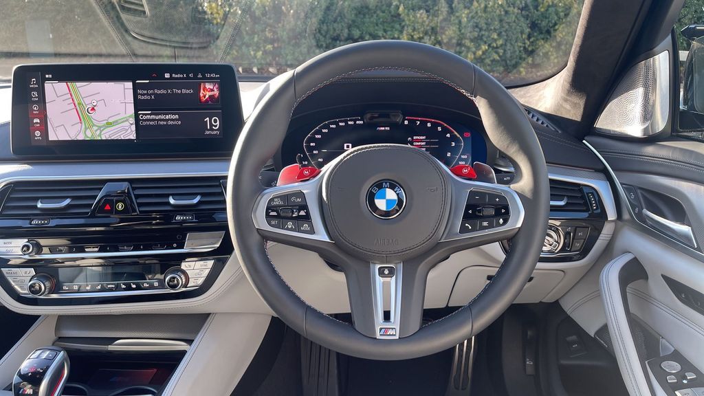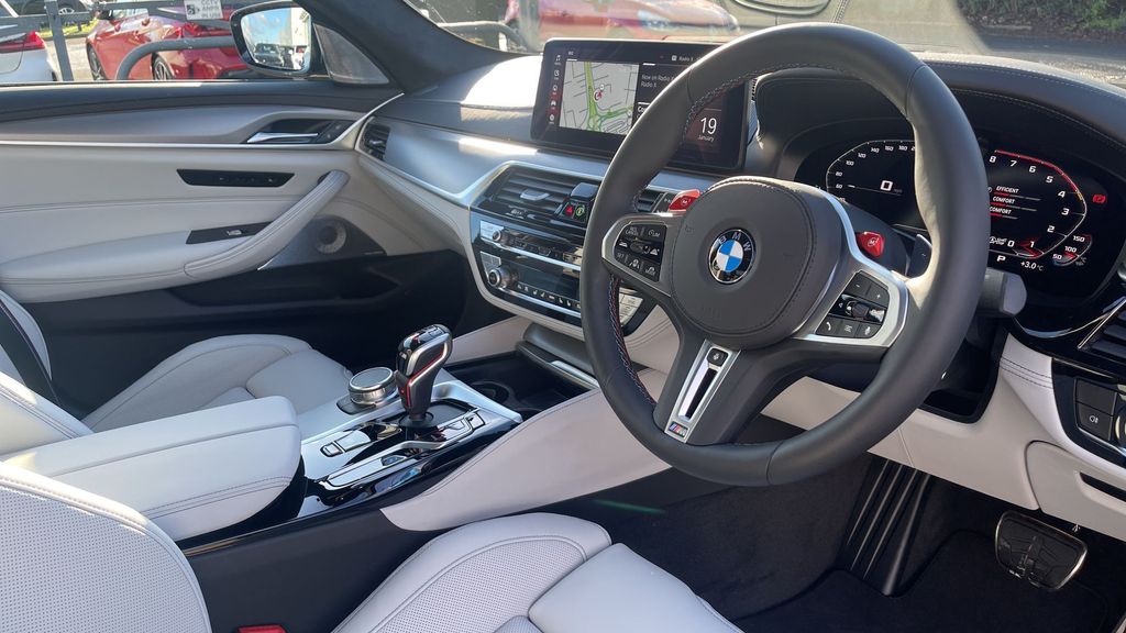 BMW M5 V8 Competition 4.4 на 20-дюймовых дисках — M Y-Spoke Style 789 — двухцветные. Звуковая система объемного звучания Harman Kardon. Парковочный ассистент плюс. Красная кнопка Старт-Стоп. Обогрев передних сидений.
