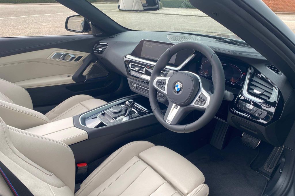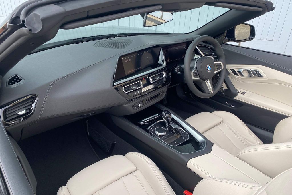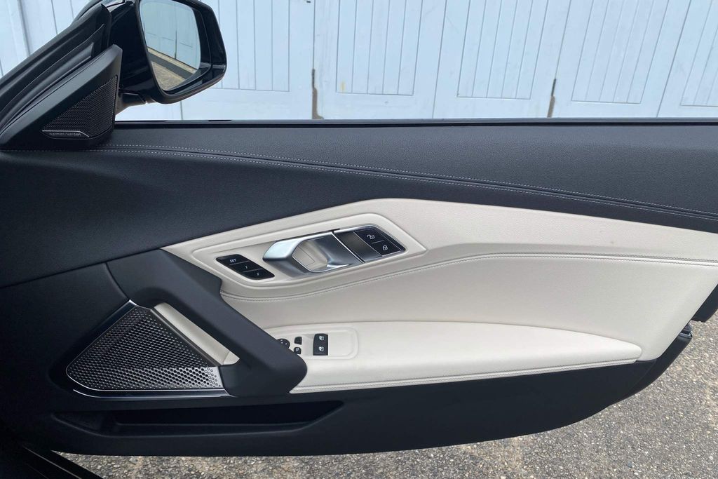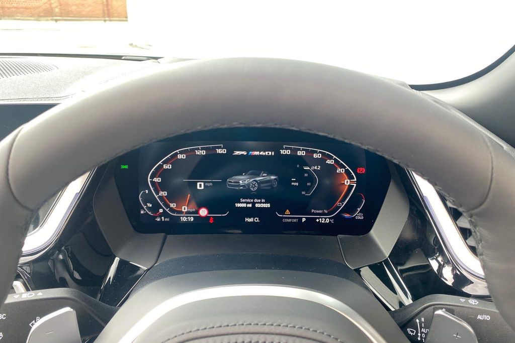 BMW Z4 M40i sDrive 3.0 на 19-дюймовых дисках с V-образными спицами. Аудиосистема Harman Kardon. Ассистент парковки. Камера заднего вида. Ассистент заднего хода. Круиз-контроль. Кнопка Start-Stop с запуском двигателя без ключа Comfort Go. Рулевое колесо с лепестками переключения передач. Подогрев передних сидений.