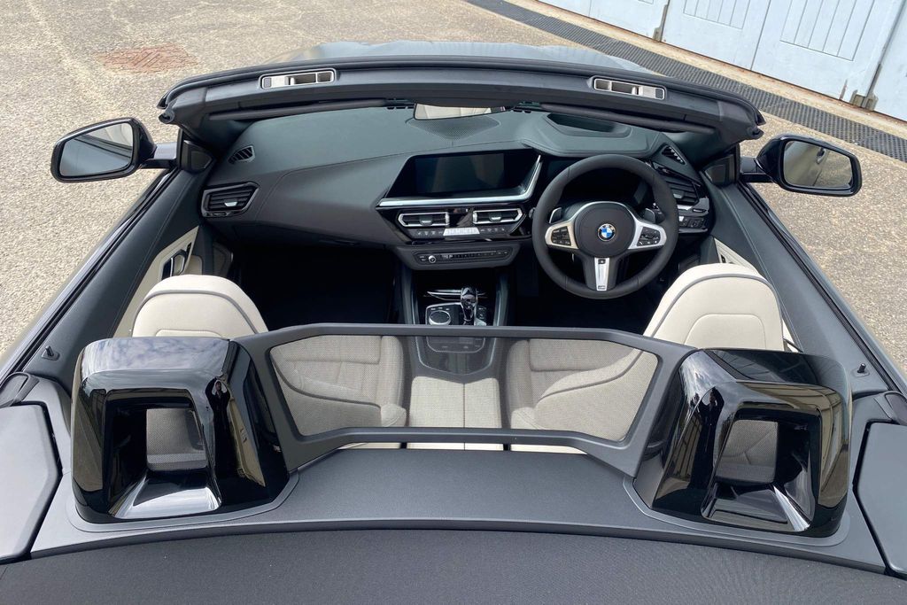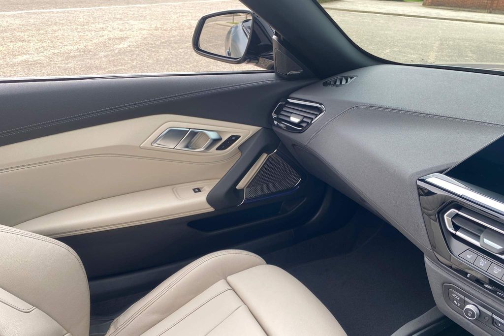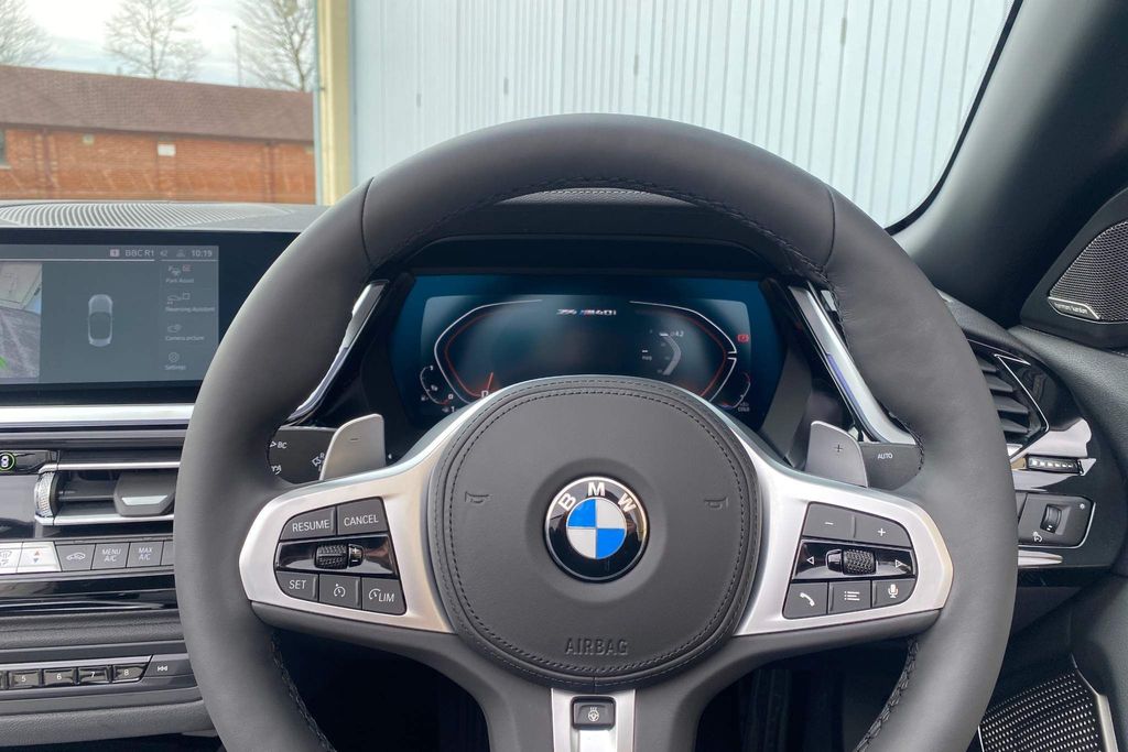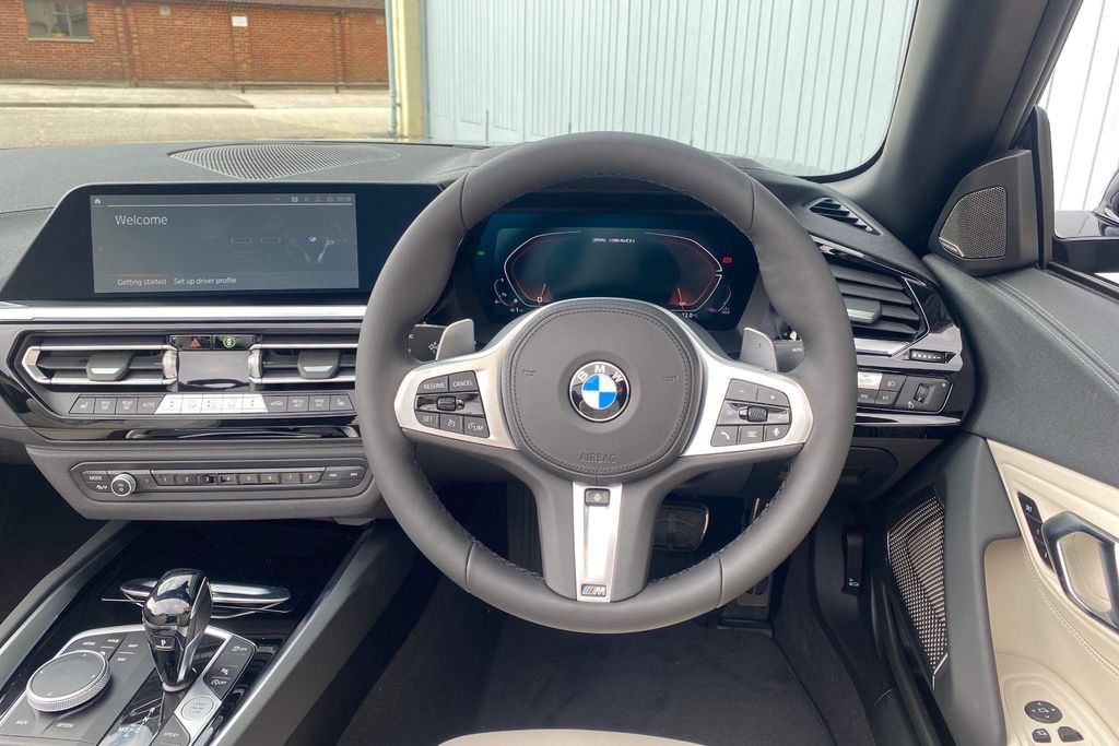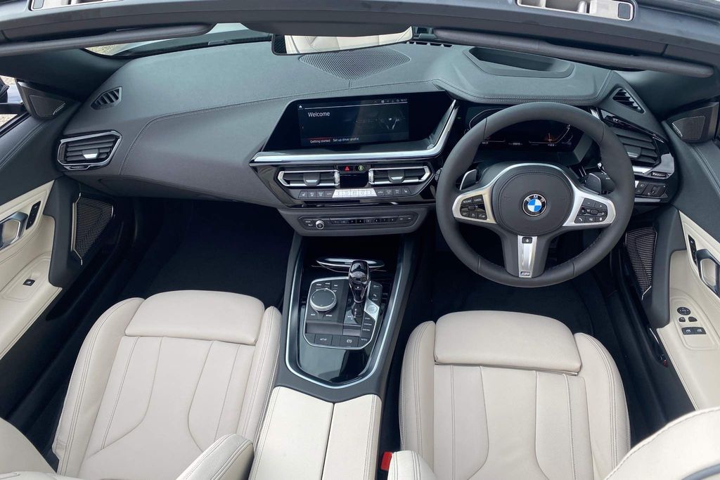 BMW Z4 M40i sDrive 3.0 на 19-дюймовых дисках с V-образными спицами. Аудиосистема Harman Kardon. Ассистент парковки. Камера заднего вида. Ассистент заднего хода. Круиз-контроль. Кнопка Start-Stop с запуском двигателя без ключа Comfort Go. Рулевое колесо с лепестками переключения передач. Подогрев передних сидений.